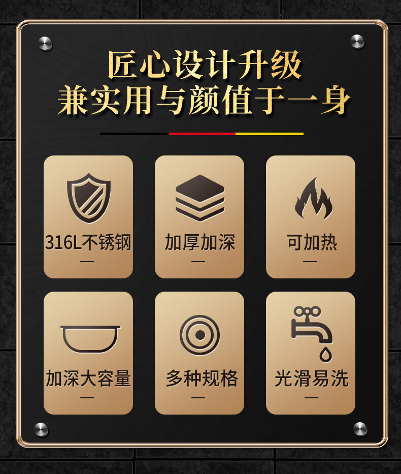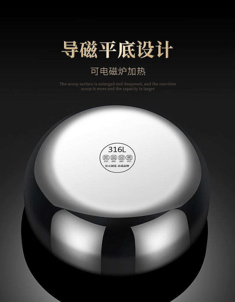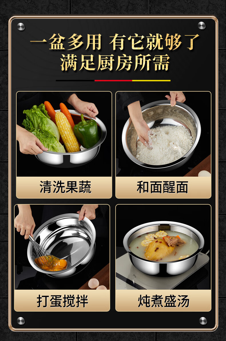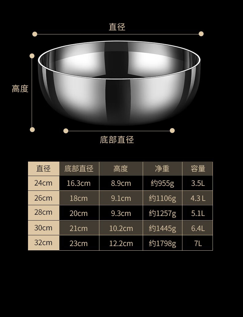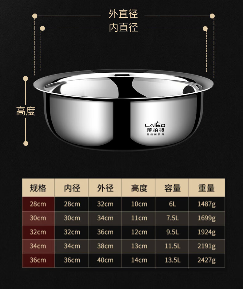 Laberton 316 stainless steel basin and basin with lid food grade household thickening dough kneading vegetable basin washing bottle basin inner diameter 36cm basin + tempered glass lid 13.5L