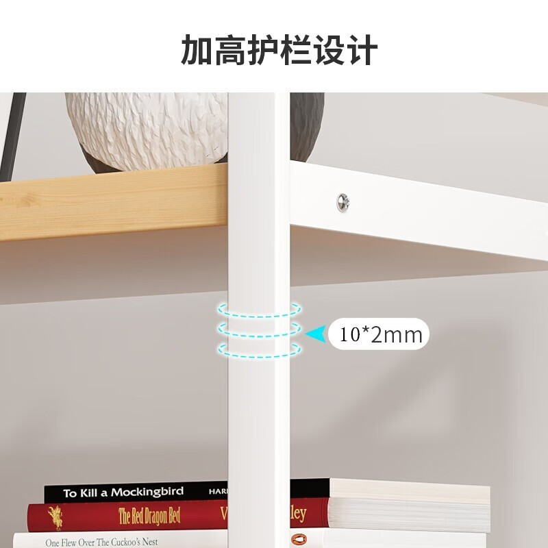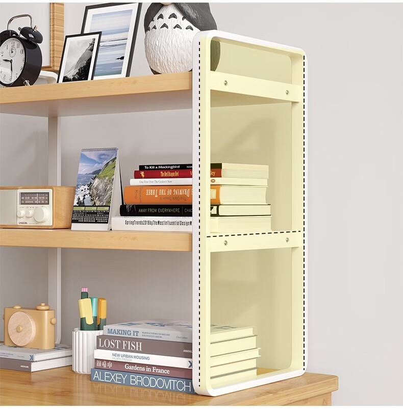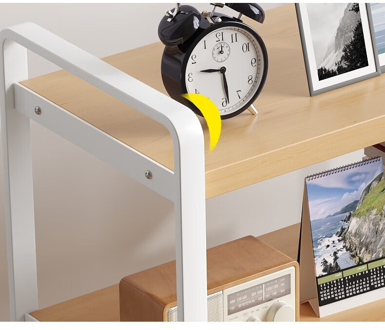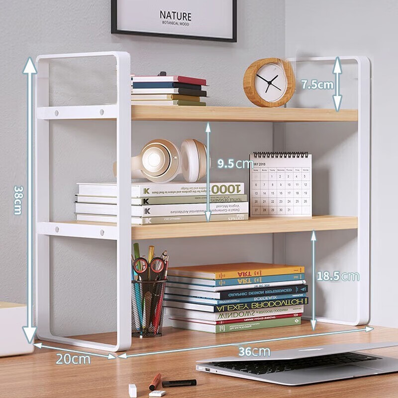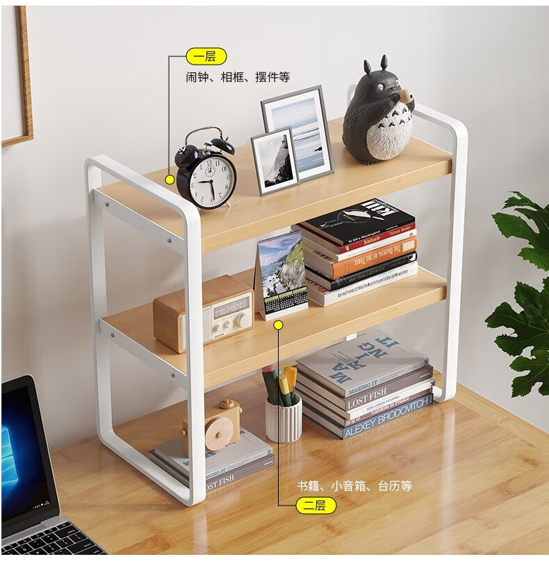 Yilande desktop simple small bookshelf wrought iron storage rack home bay window desk multi-layer computer desk shelf table storage rack three-layer Nordic maple color-white shelf