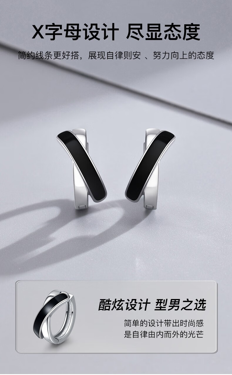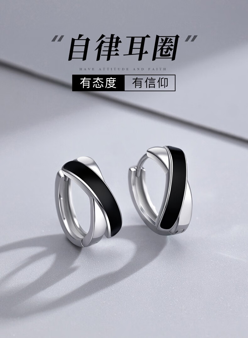 BJYL Men's Earrings Men's Trendy Light Luxury Ins Earrings Men's Niche Design Simple Earrings for Boyfriend's Birthday Gift Single