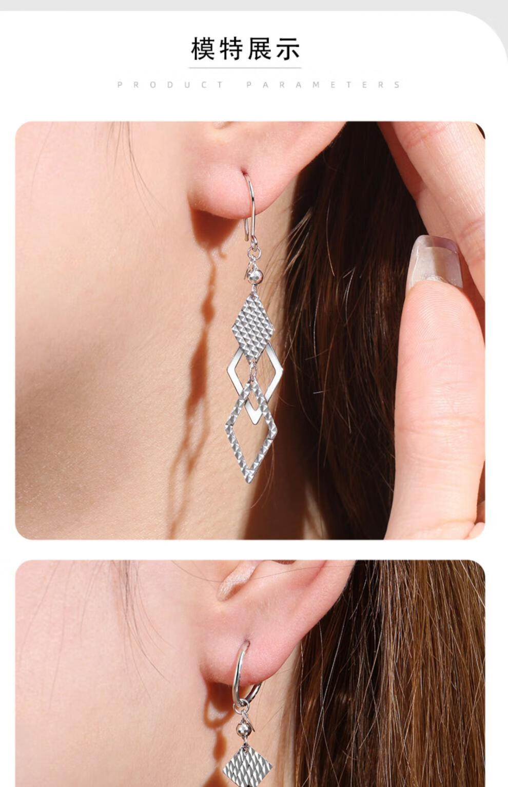 MiU Se Pt950 platinum earrings for women, long platinum earrings, diamond-shaped ear hooks, geometric pattern earrings for girlfriends, diamond-shaped ear hooks (two pieces), about 2.3-2.5 grams
