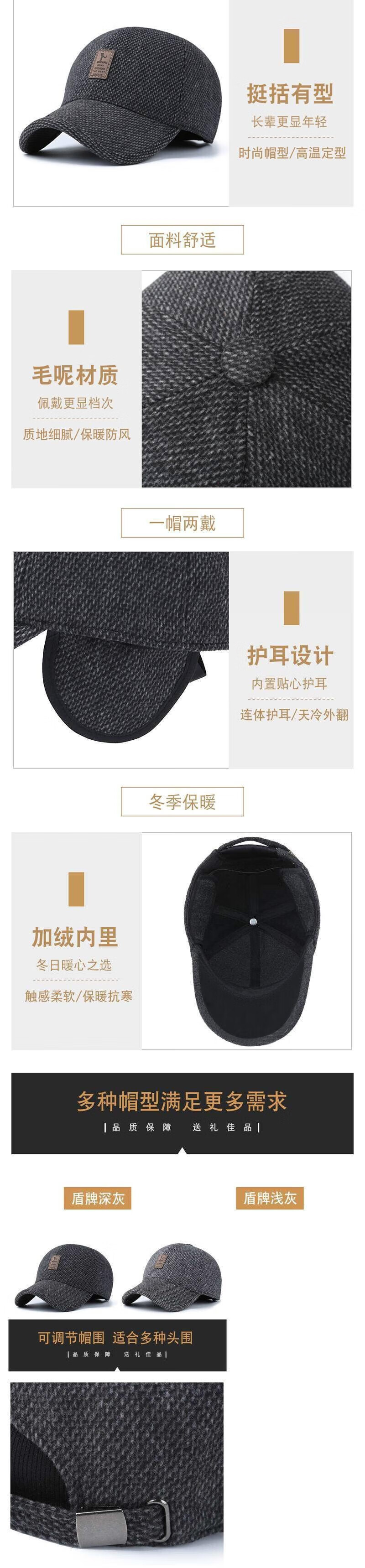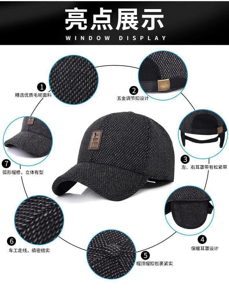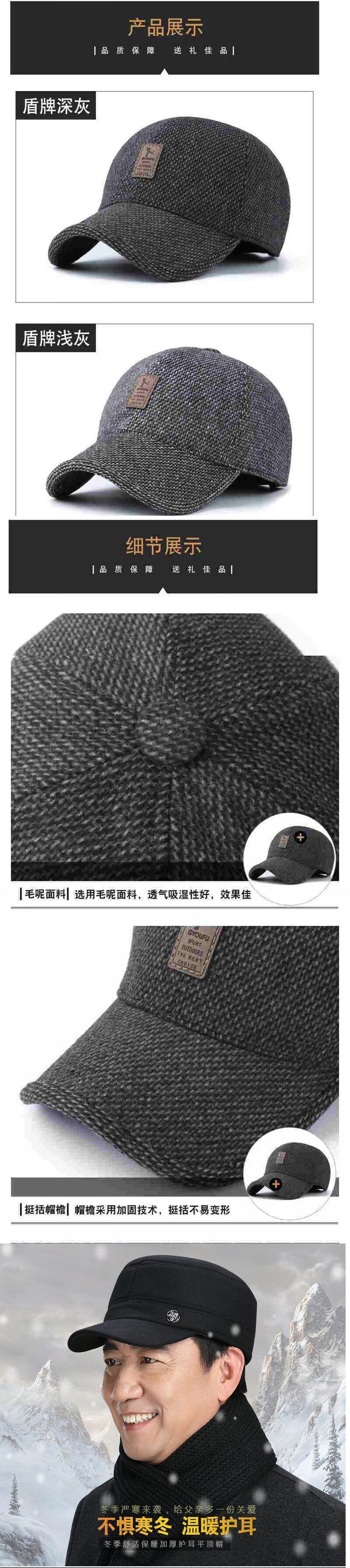 Jiaxuan autumn and winter men's cotton hat outdoor sports dad baseball cap casual warm ear protection cap middle-aged and elderly peaked cap elderly cap dark gray