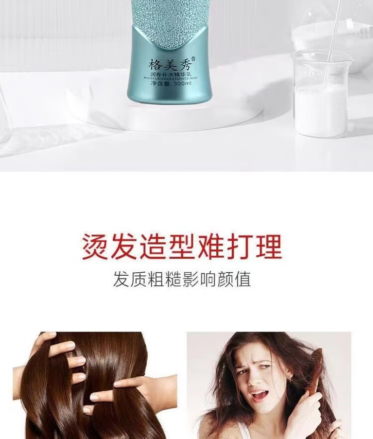 Gemeixiu Official Moisturizing and Hydrating Essence Milk Elastin Leave-in Hair Care Moisturizing Curl Soft Styling Invisible Hair Mask Moisturizing and Hydrating Essence Milk (one bottle) 300mL