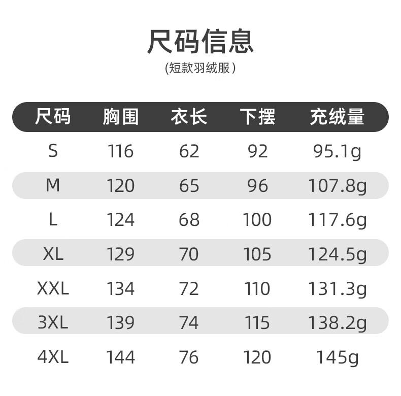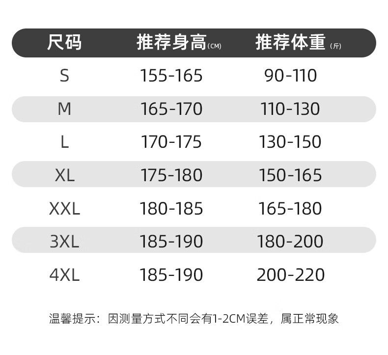 China (cm) 165 / 88-90 170 / 96-98 175 / 108-110 180 / 118-122 185 / 126-130