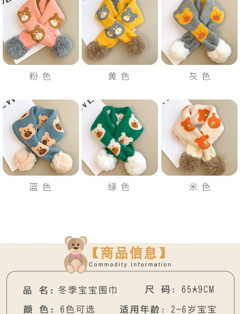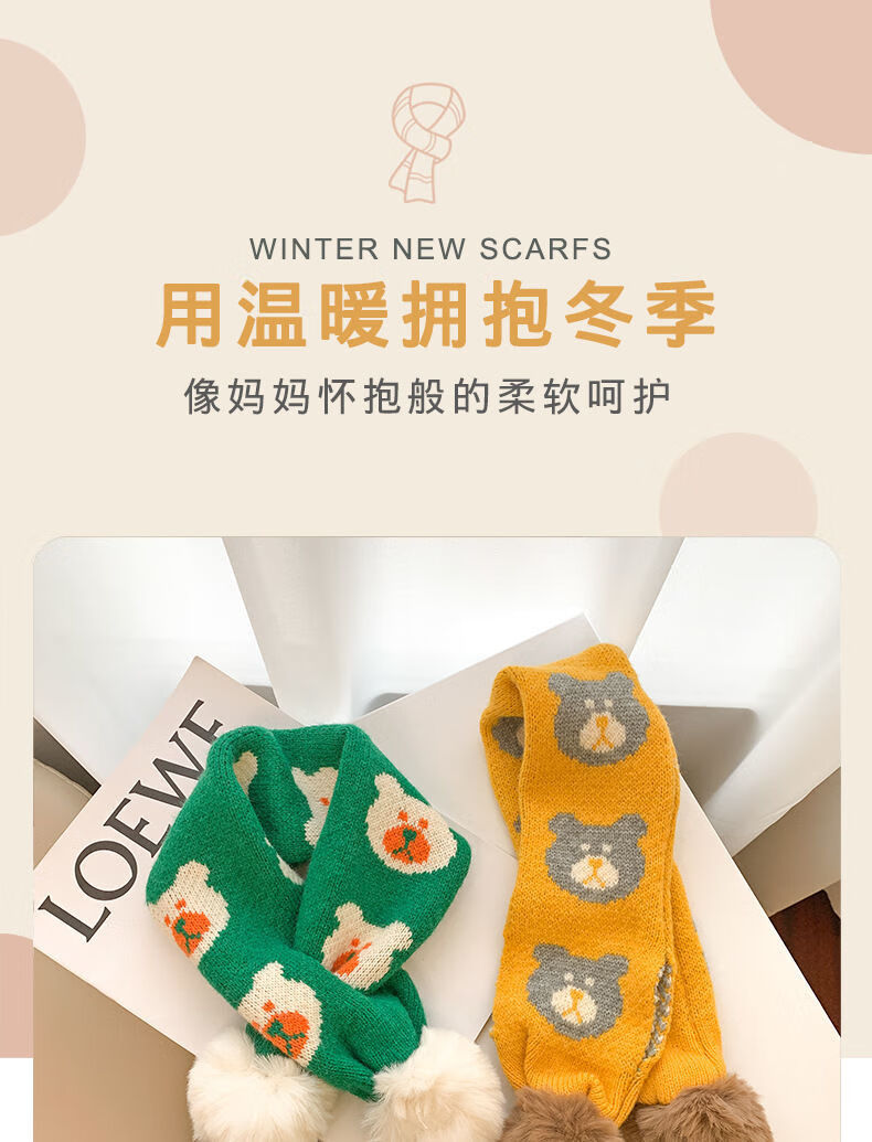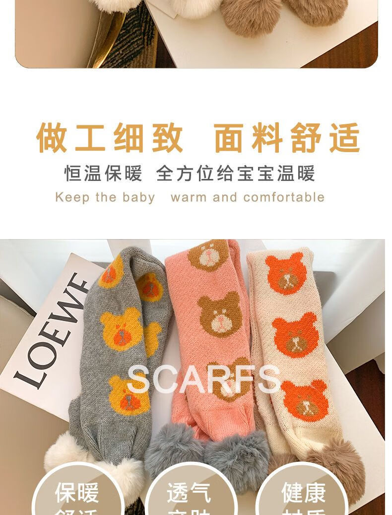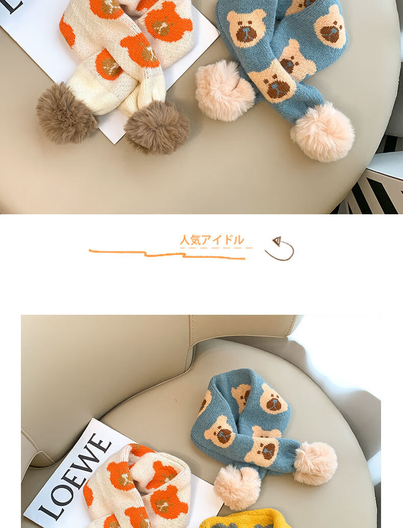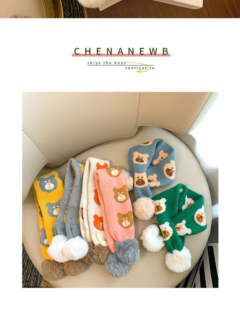 SKONWAT winter baby cute bear scarf, thickened, warm and cold-proof, men's and women's scarf, autumn and winter plush, versatile and trendy blue bear