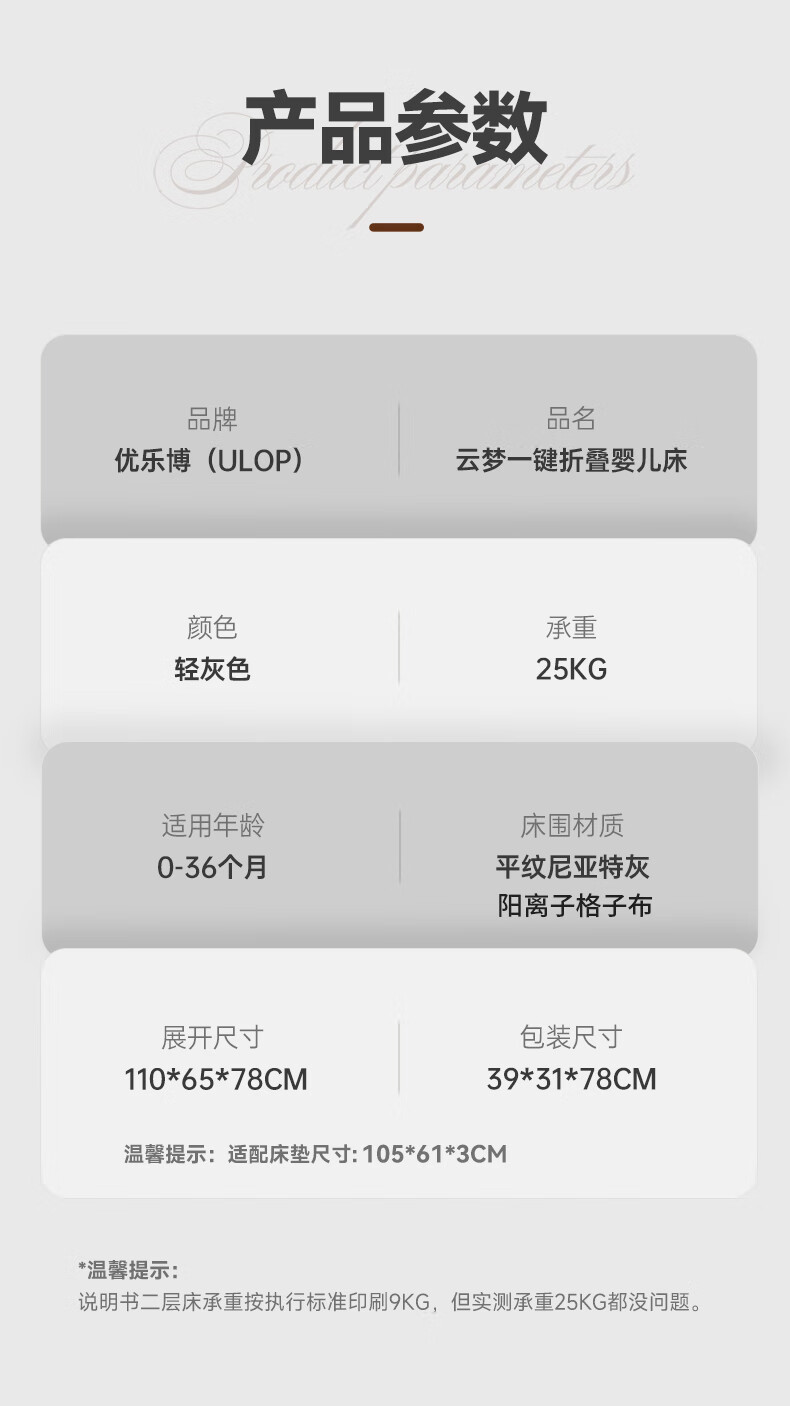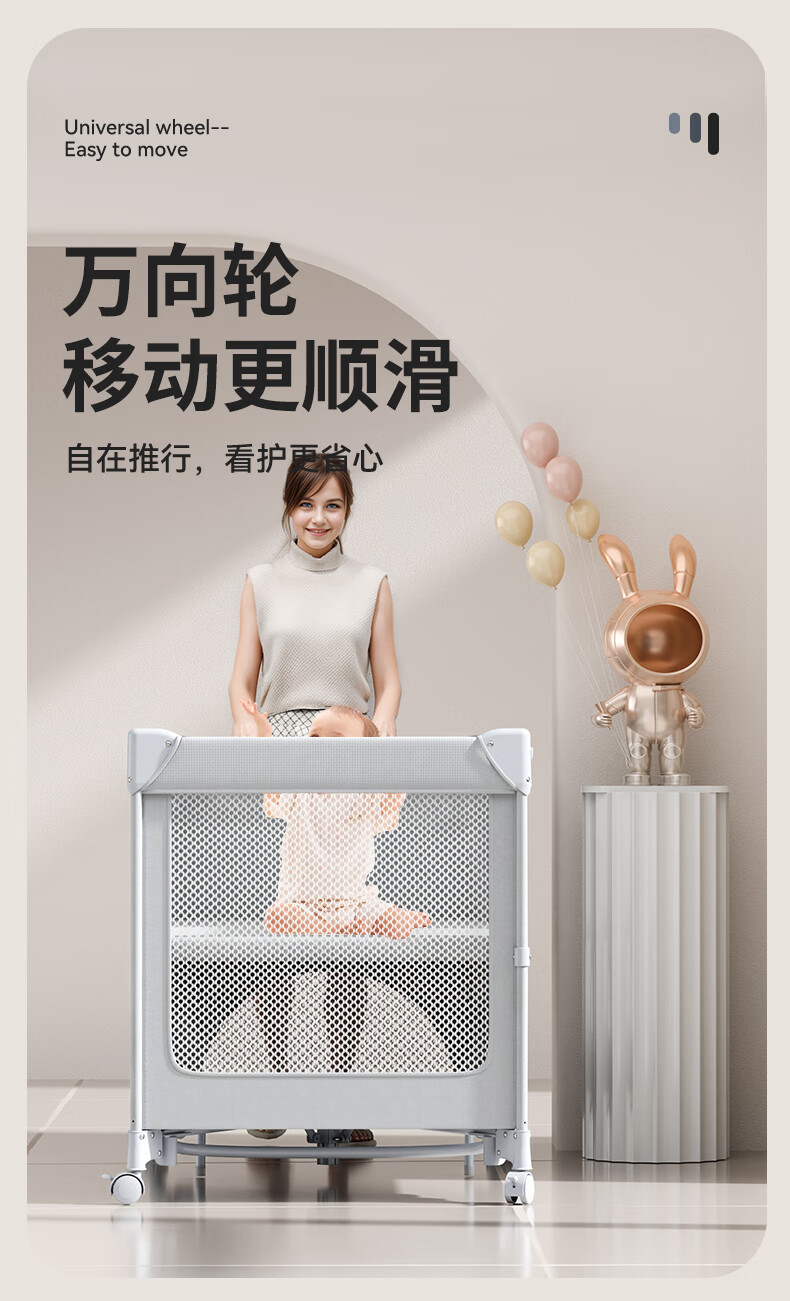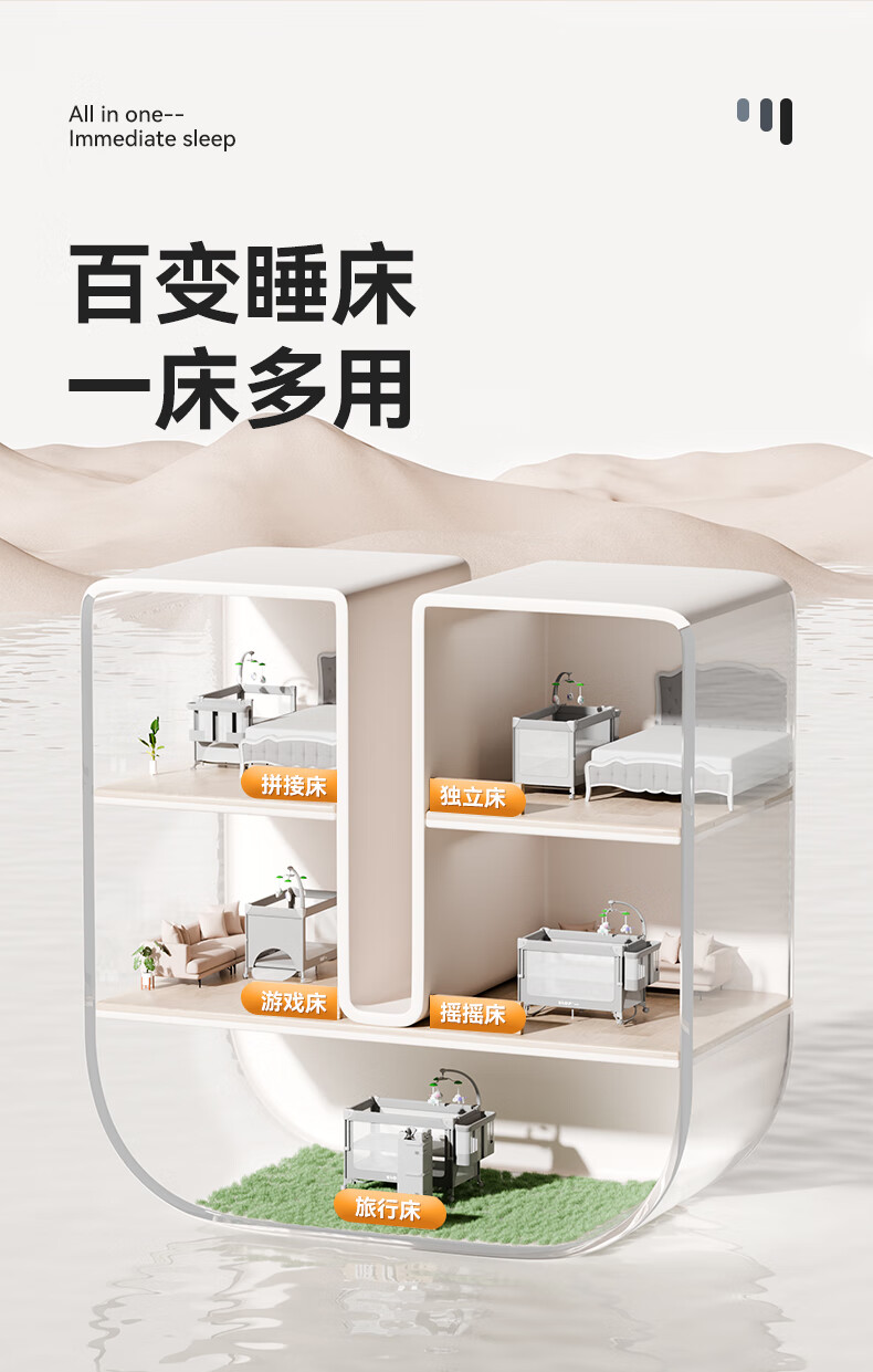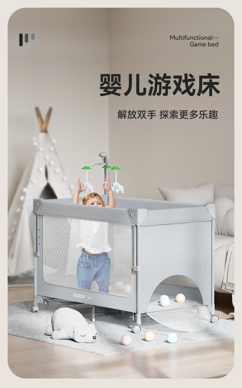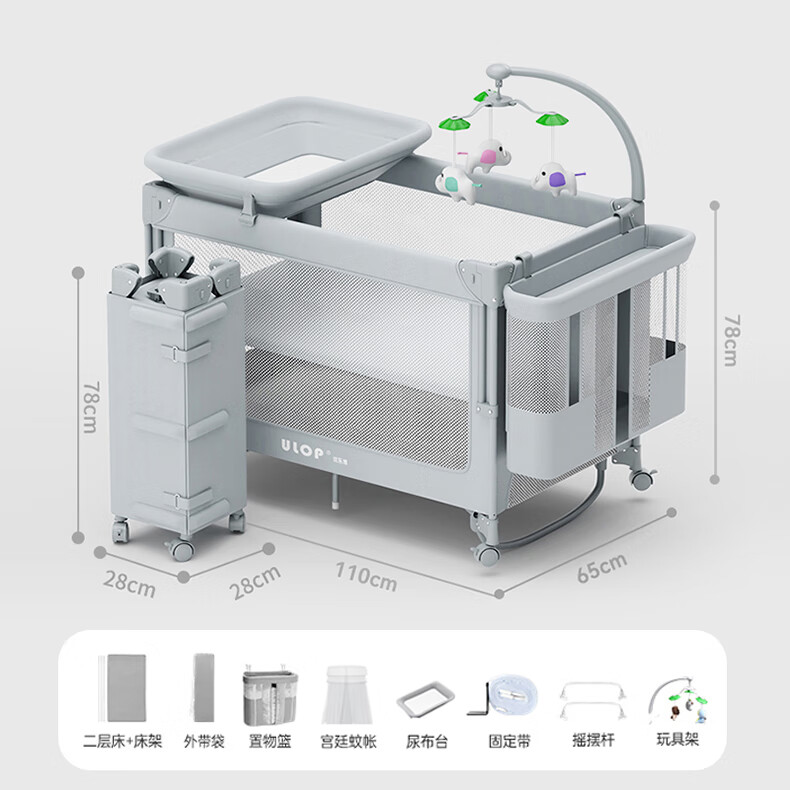 ULOP crib, removable splicing bed, multi-functional folding crib, newborn 0-3 year old baby cradle, cradle, installation-free, one-click folding, mosquito net with diaper table, Yunmeng, sleep-inducing artifact, post pictures, send spine-protecting coconut palm mattress