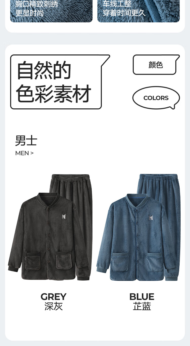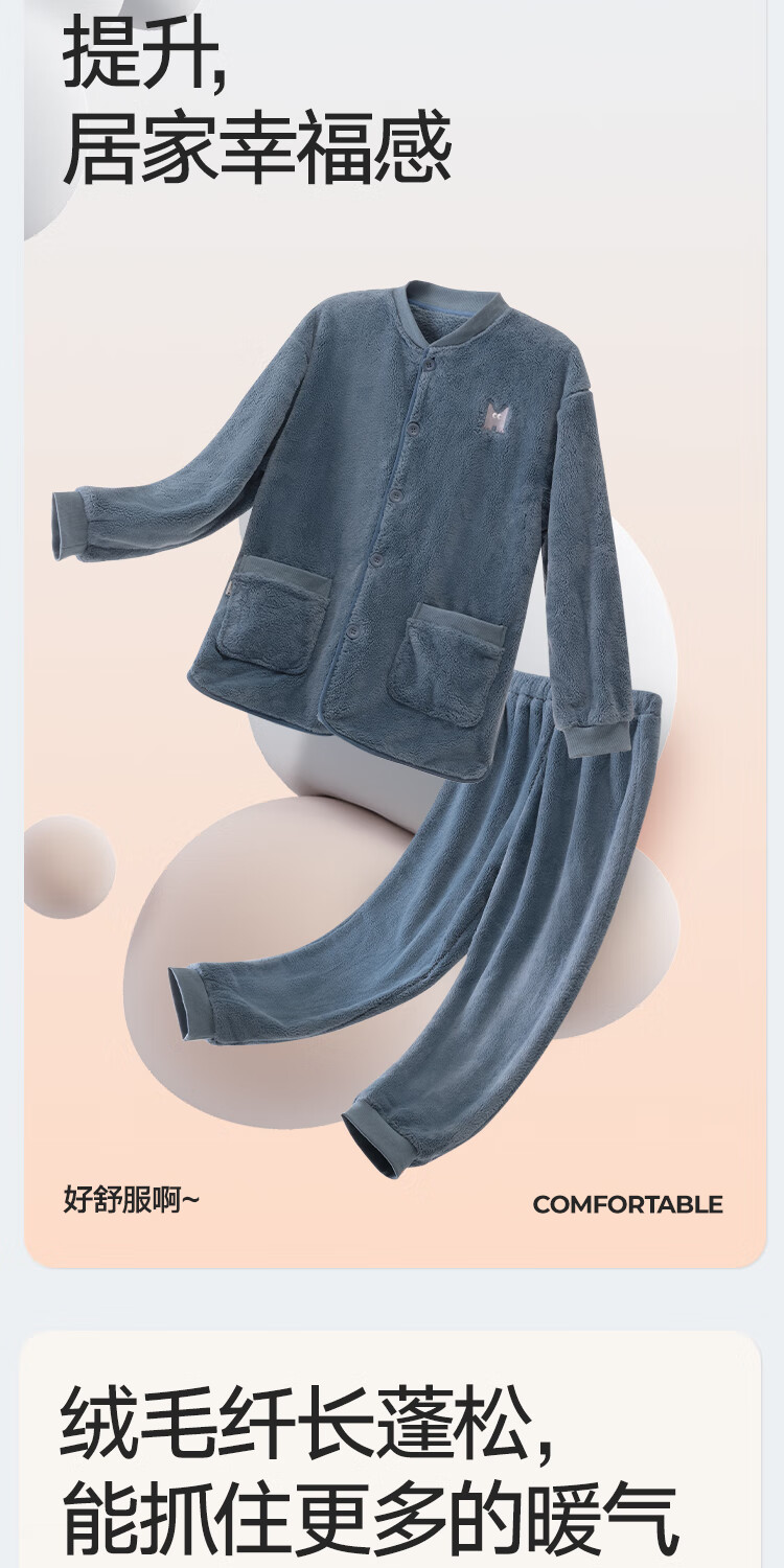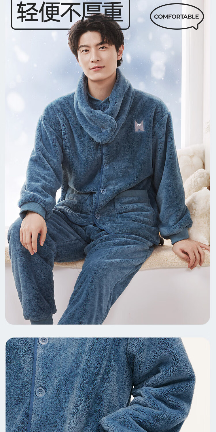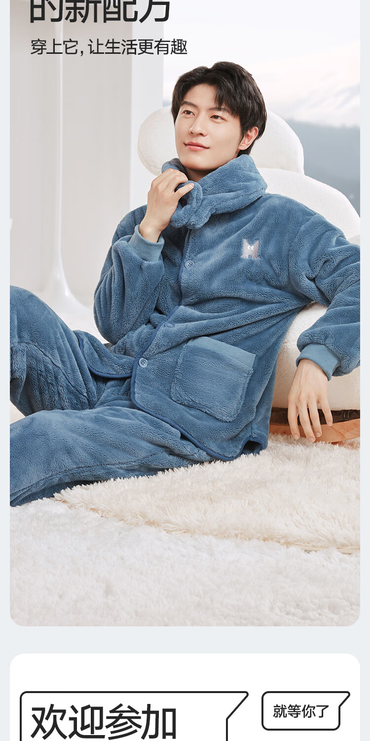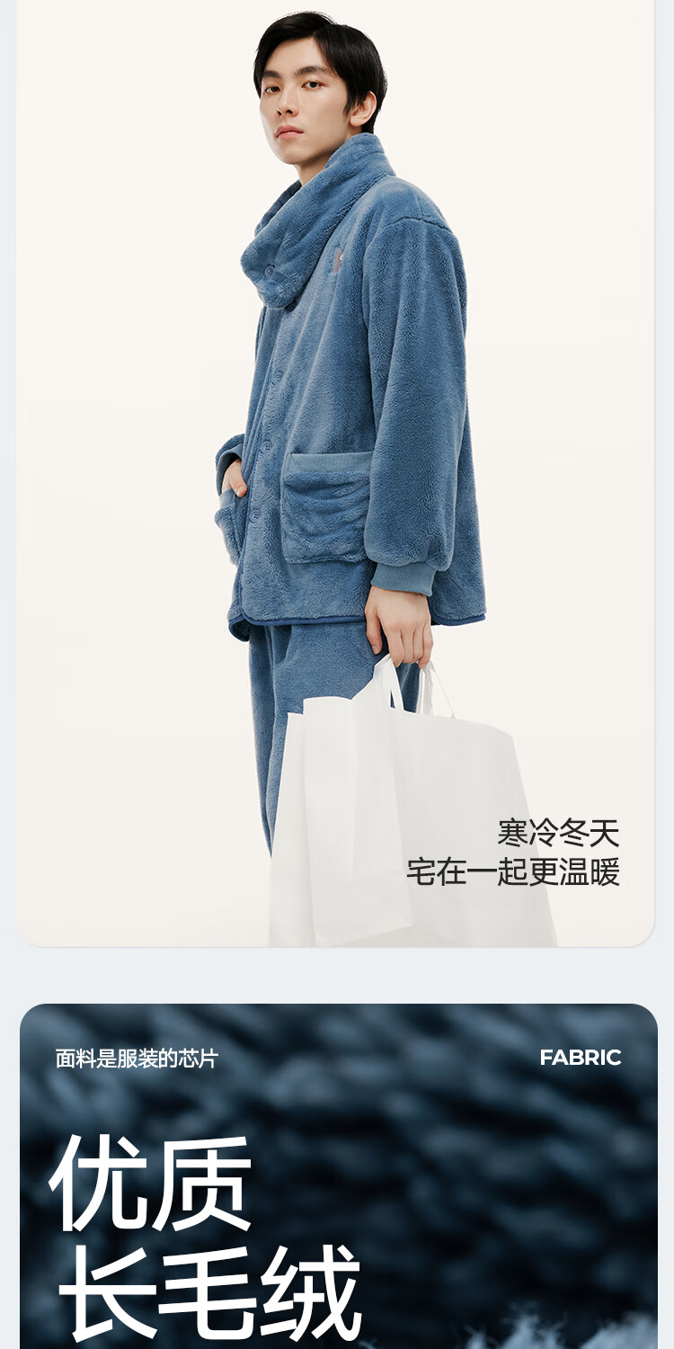 Heilan House (HLA) men's pajamas, men's autumn and winter velvet thickened couple's style, warm and windproof, loose belted scarf home wear suit for women, men - dark gray 2XL