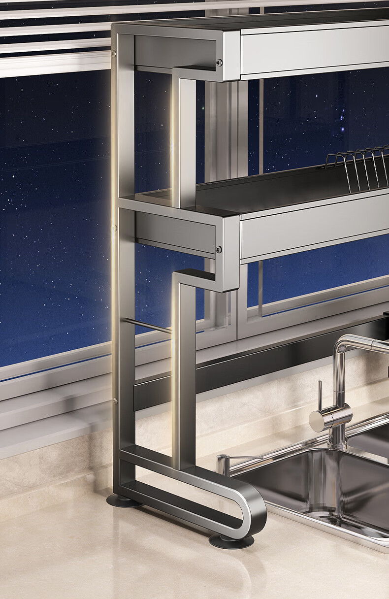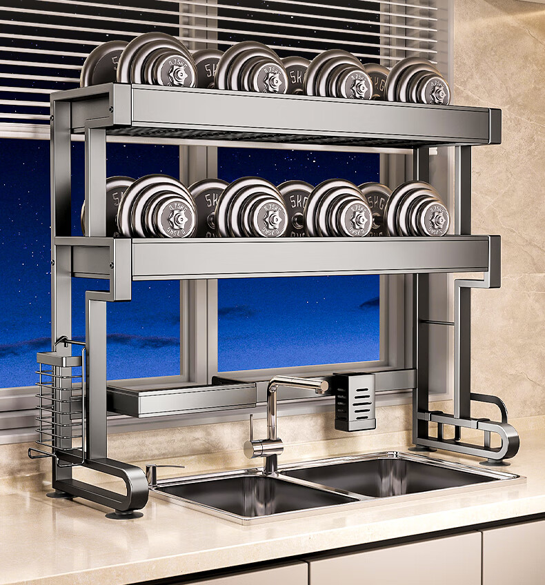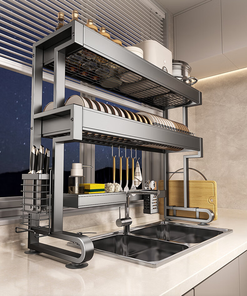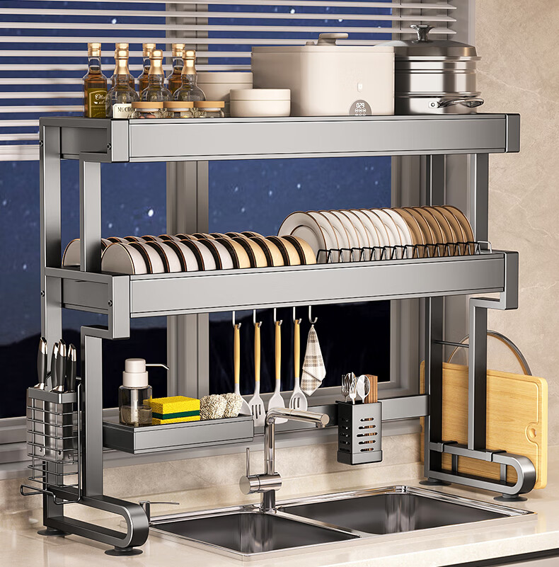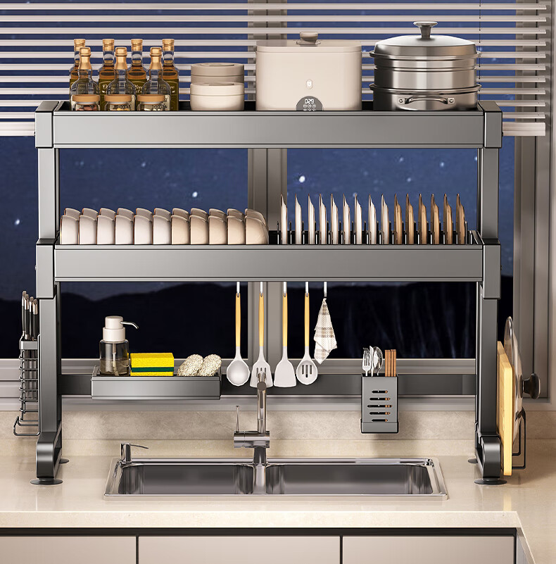 Four Seasons Muge 304 Stainless Steel Kitchen Sink Rack Dishes Utensils Dish Rack Drain Rack Retractable Pool Storage Rack Yahei Double Layer 86cm Long Set
