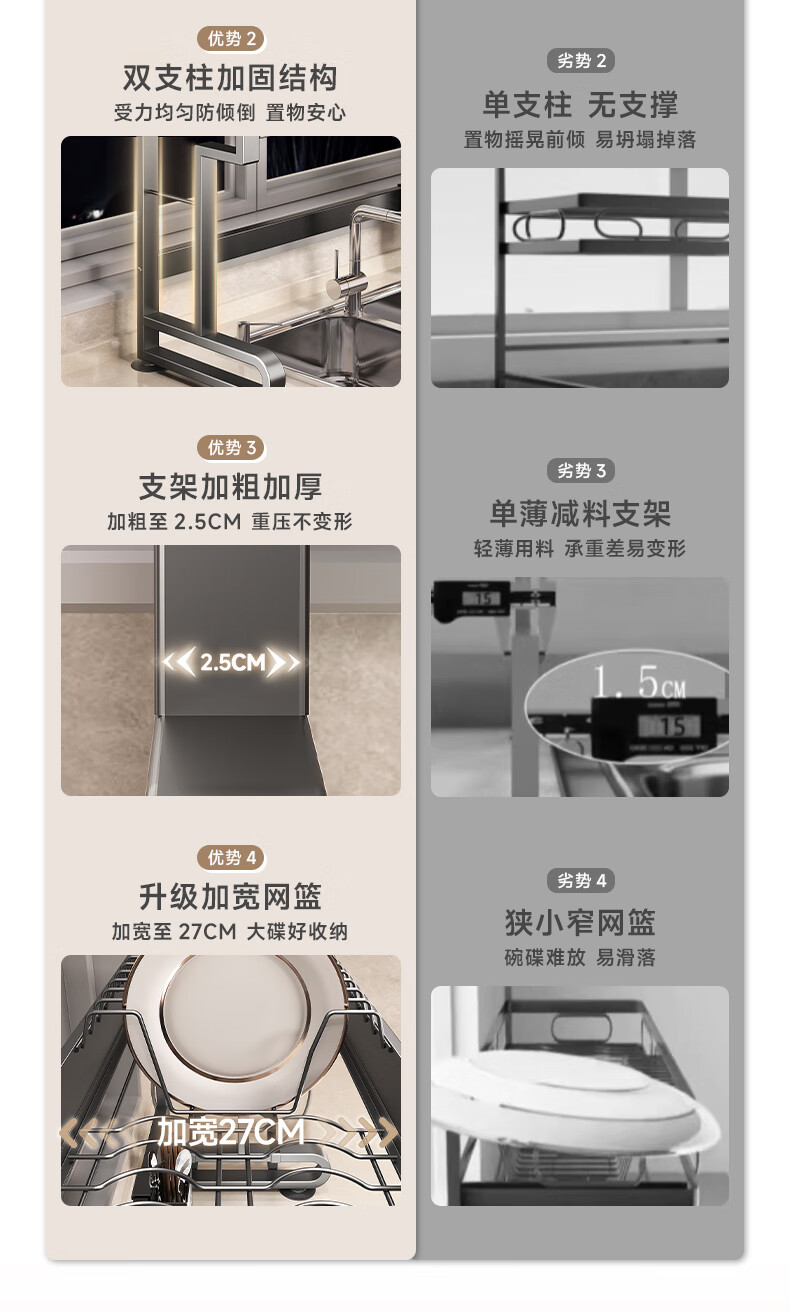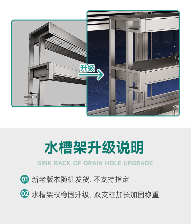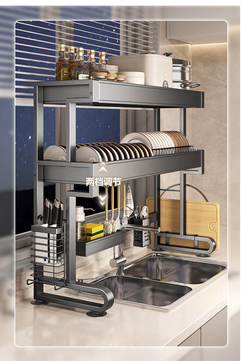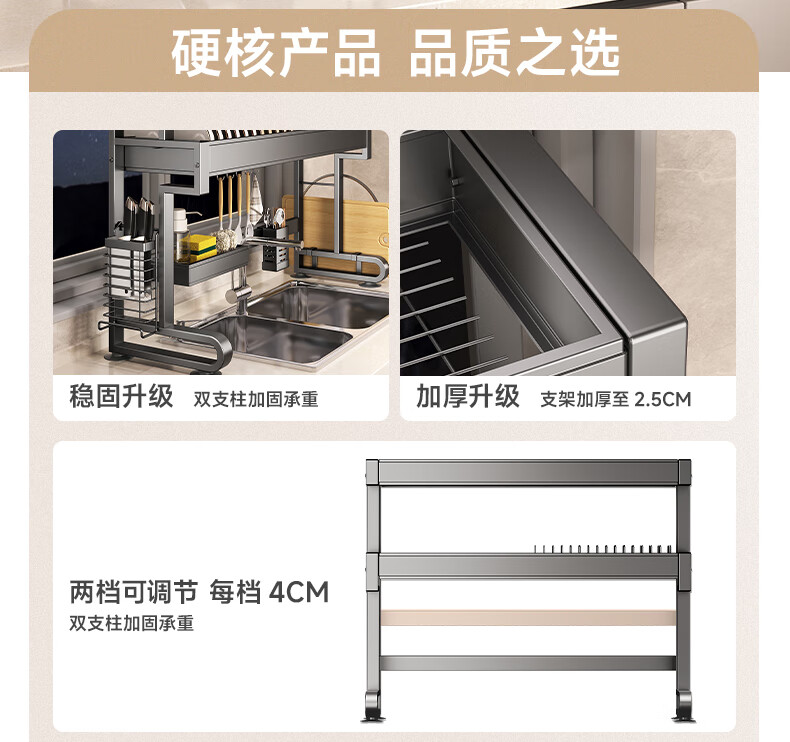 Four Seasons Muge 304 Stainless Steel Kitchen Sink Rack Dishes Utensils Dish Rack Drain Rack Retractable Pool Storage Rack Yahei Double Layer 86cm Long Set