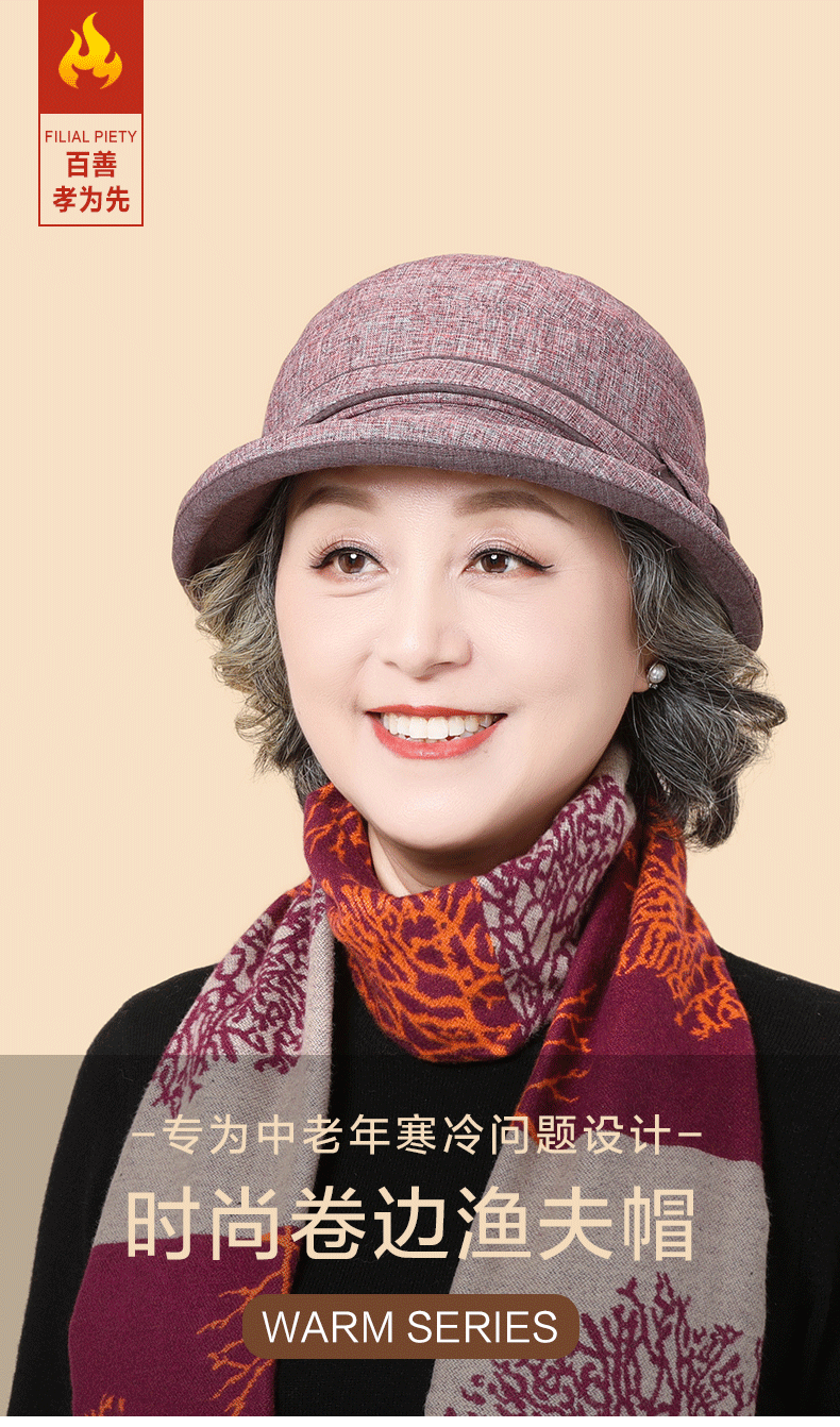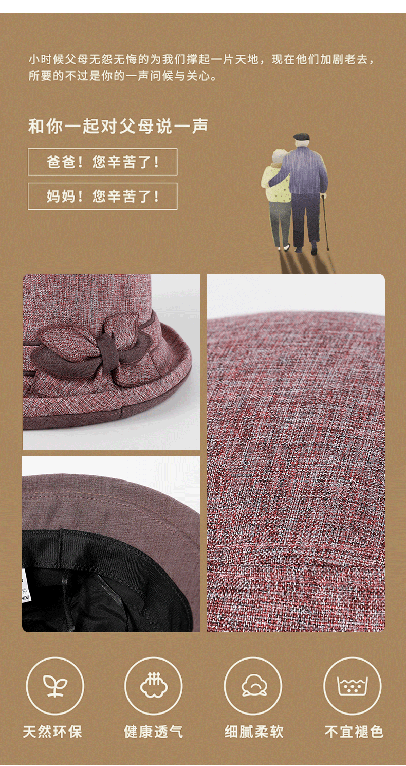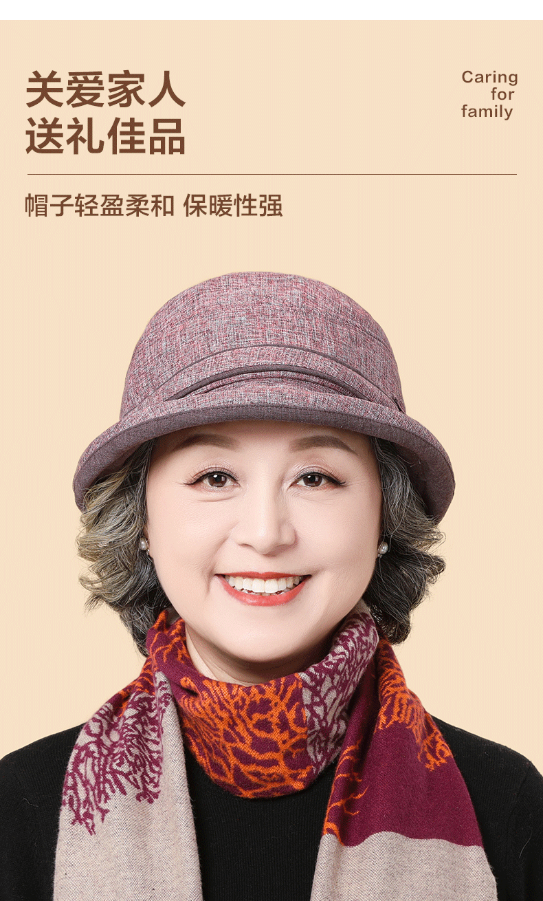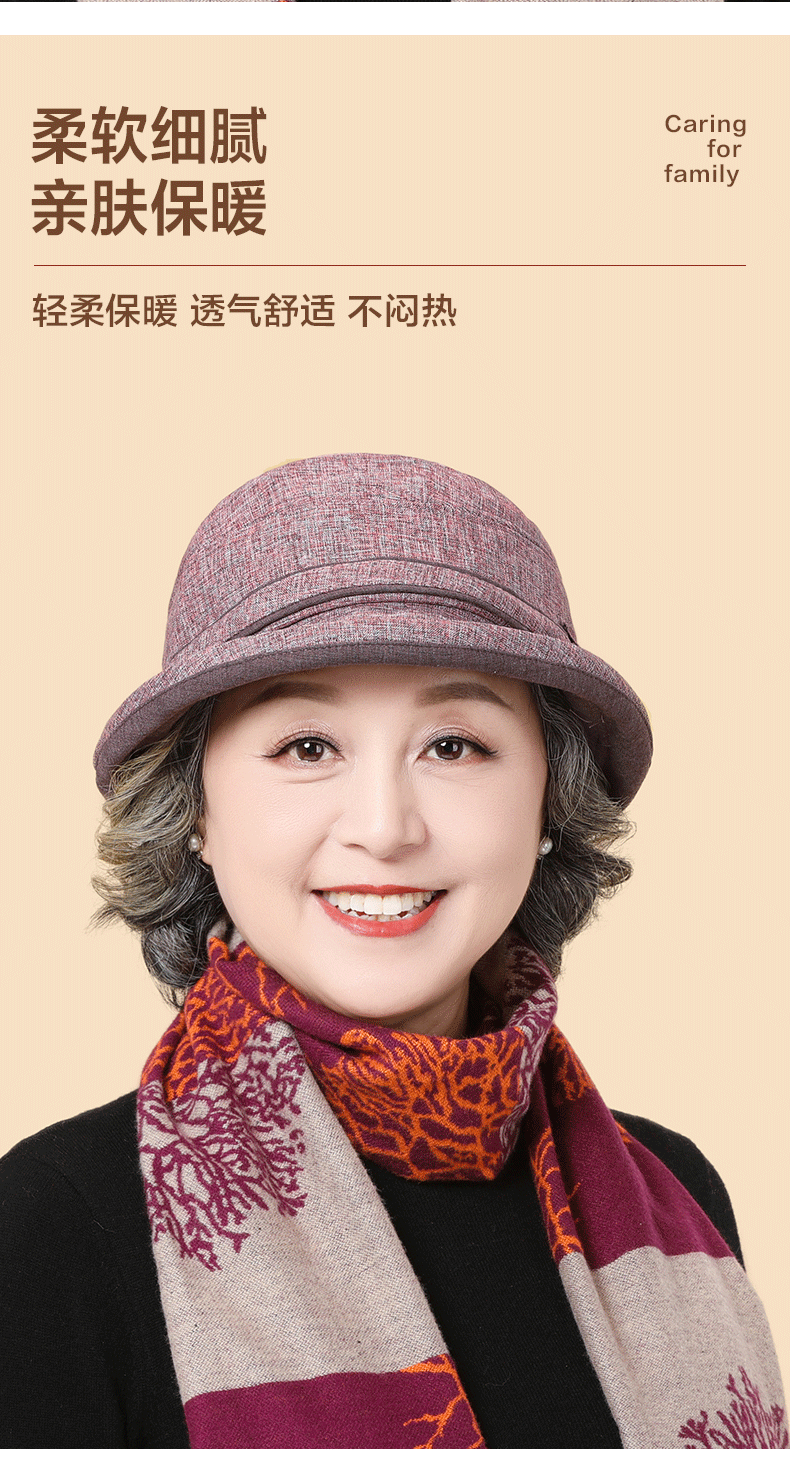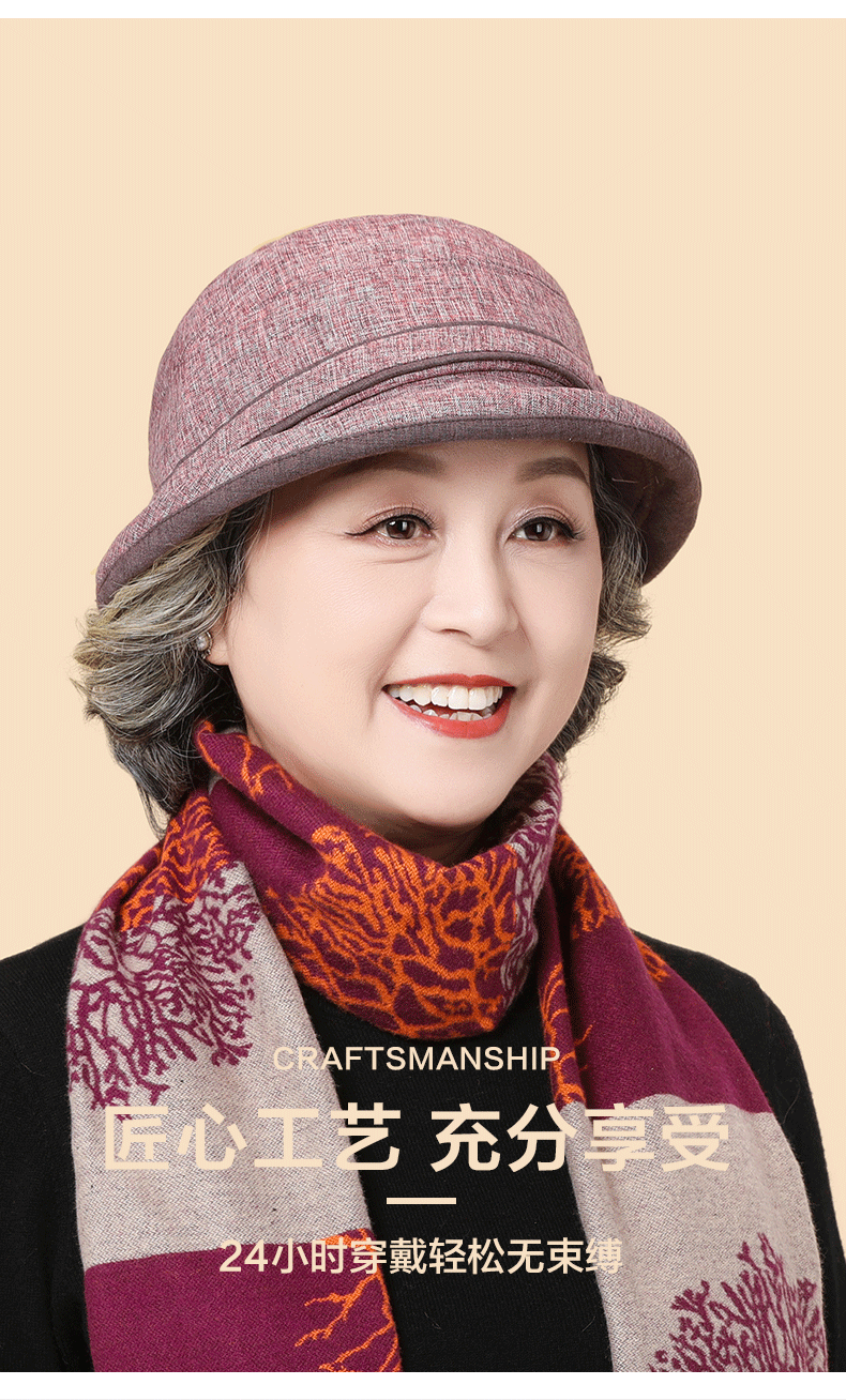 SOMUBAY (SOMUBAY) mother's hat women's spring and autumn casual fisherman's hat autumn and winter thin section middle-aged and elderly grandmothers and mothers-in-law spring and summer cloth basin hat leather pink one size adjustable (56-60CM)