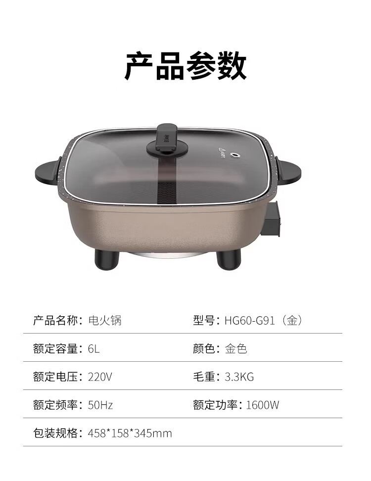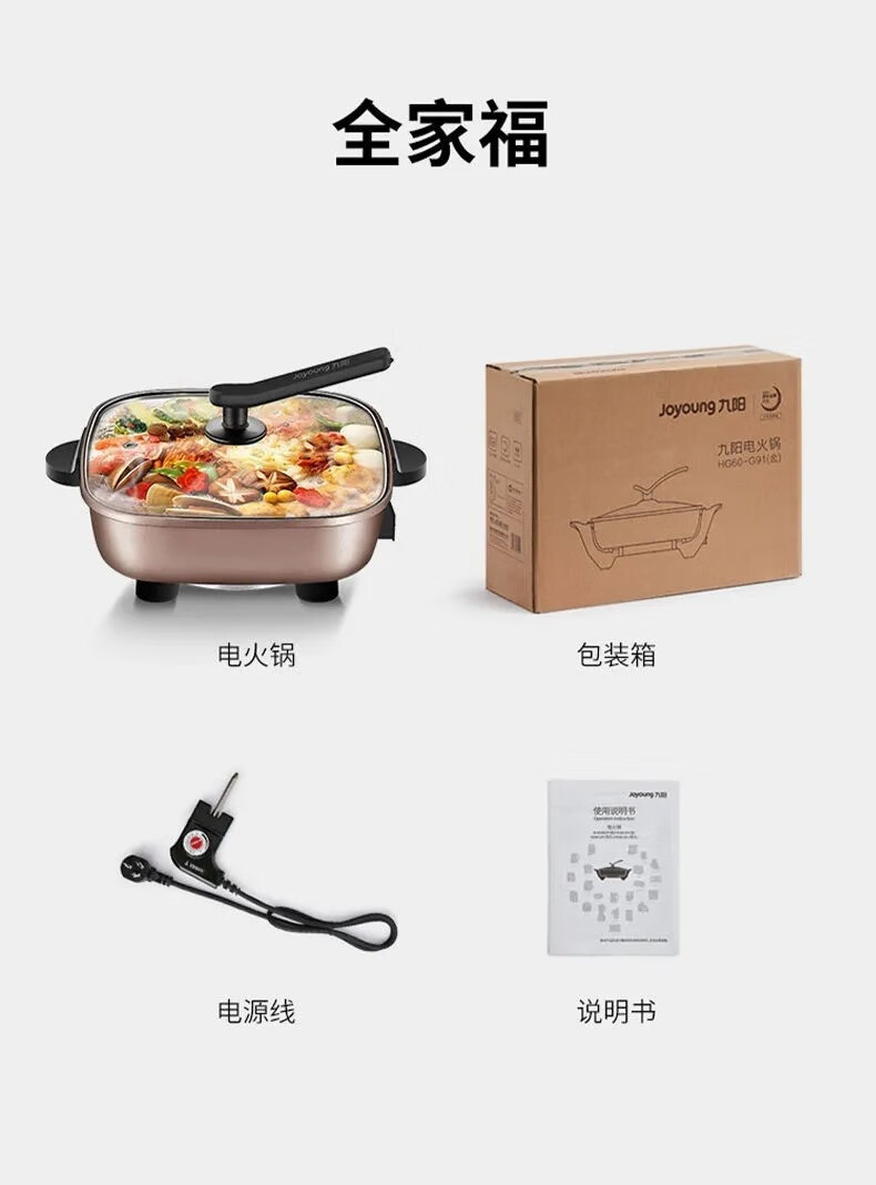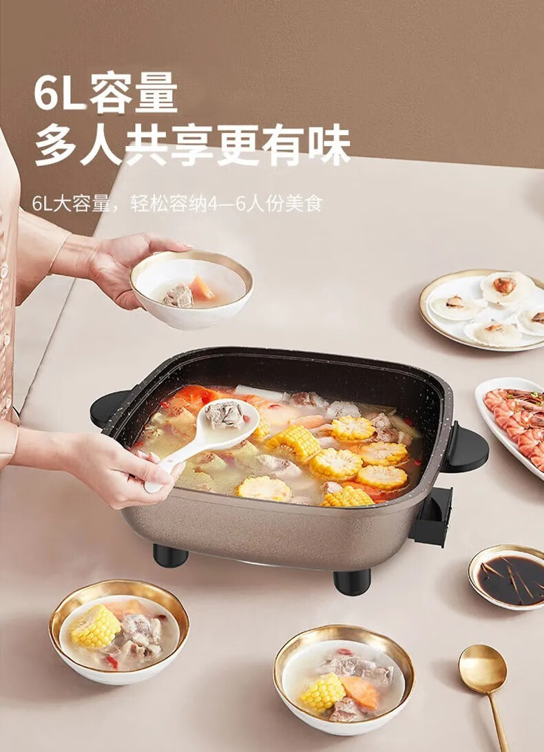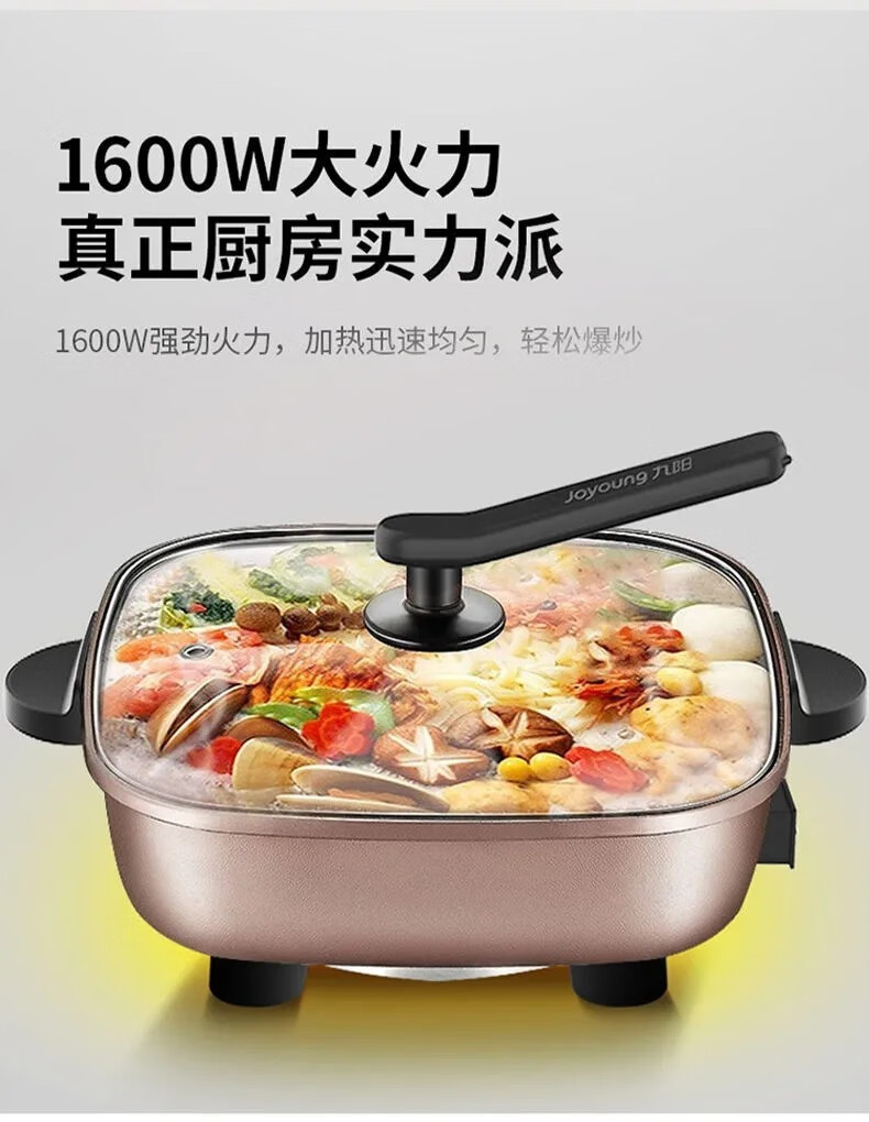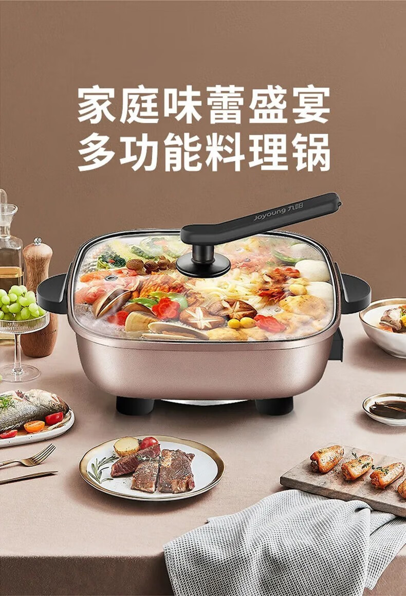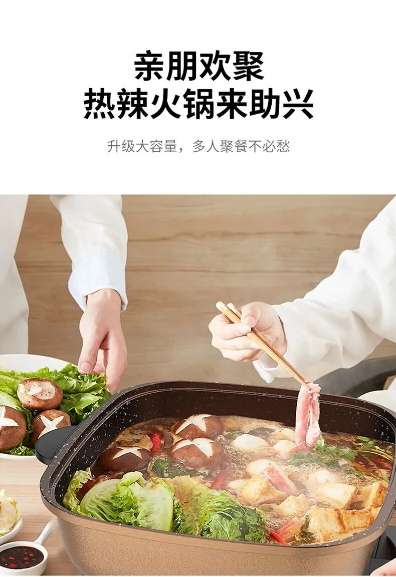 Joyoung large-capacity household all-in-one electric hot pot, electric wok, electric cooking pot, frying and roasting multi-function pot, non-stick shabu-shabu roasting pot, medical stone, five liters, mandarin duck pot HG50-G512