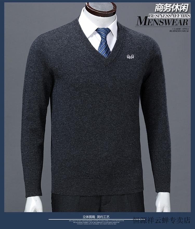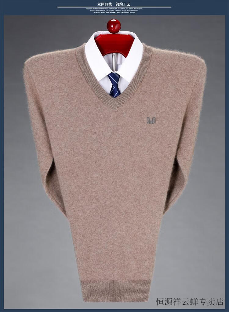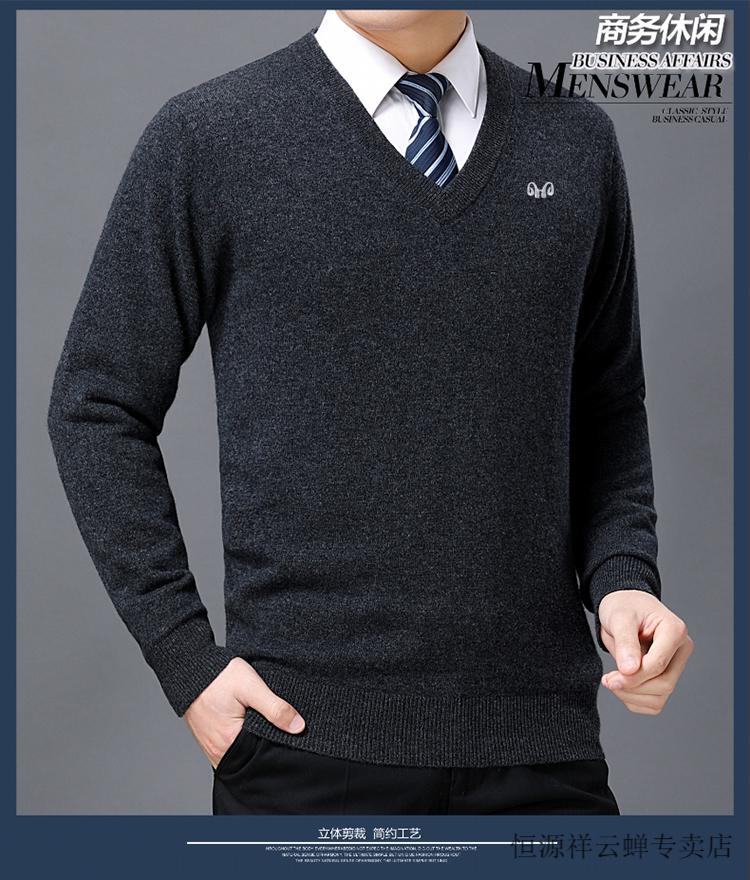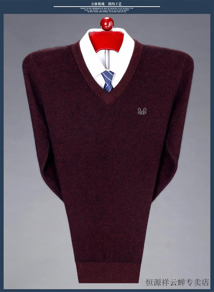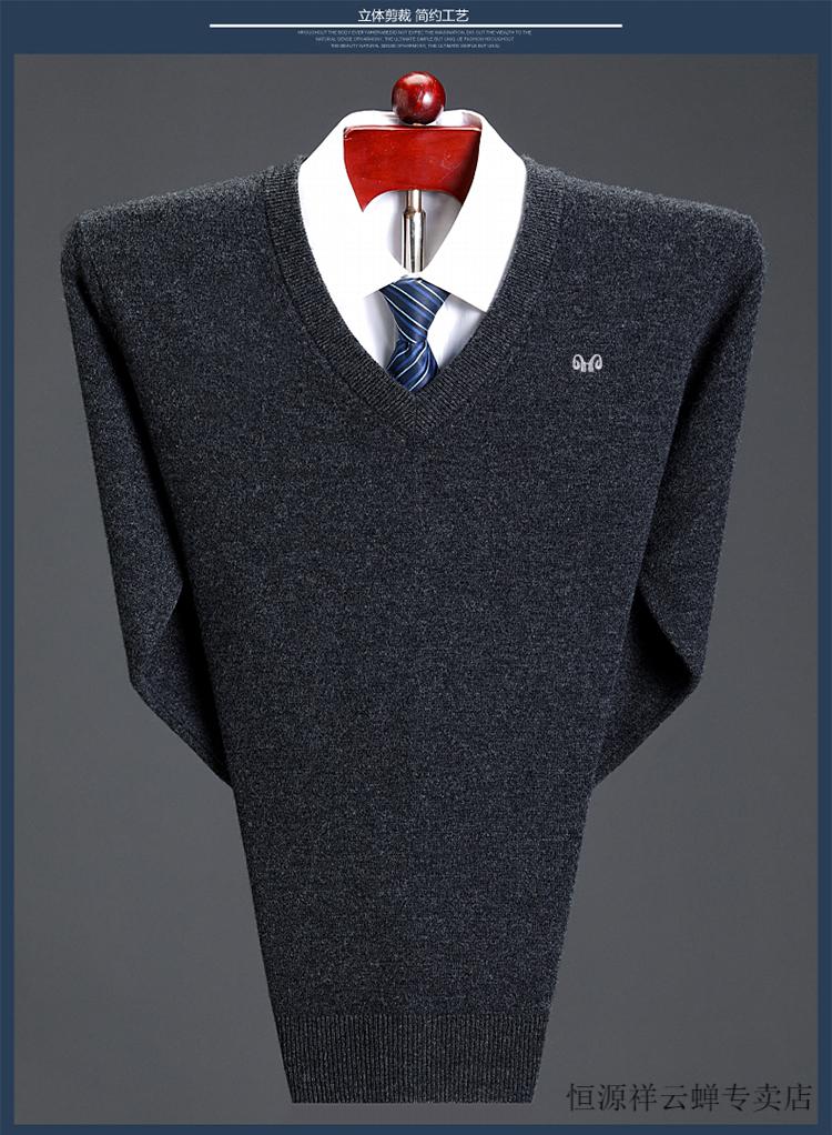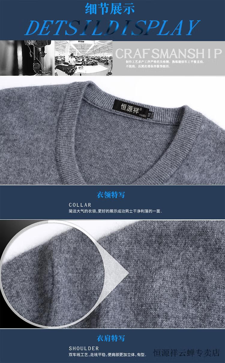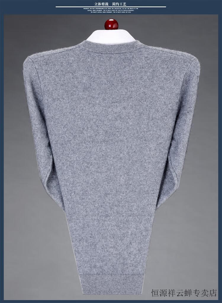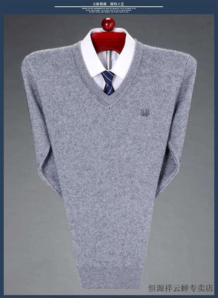 Hengyuanxiang 100% pure wool sweater men's winter V-neck thickened middle-aged and elderly men's sweetheart neck bottoming sweater dad's wear light gray L 170 120-135Jin Jin equals 0.5 kg