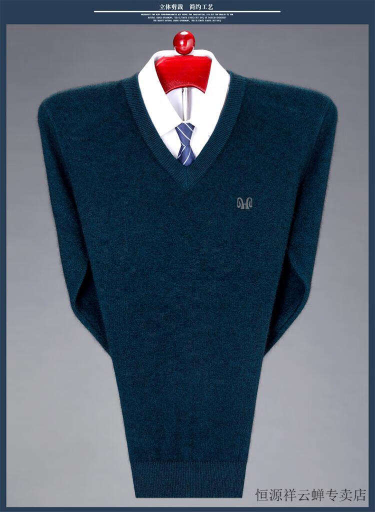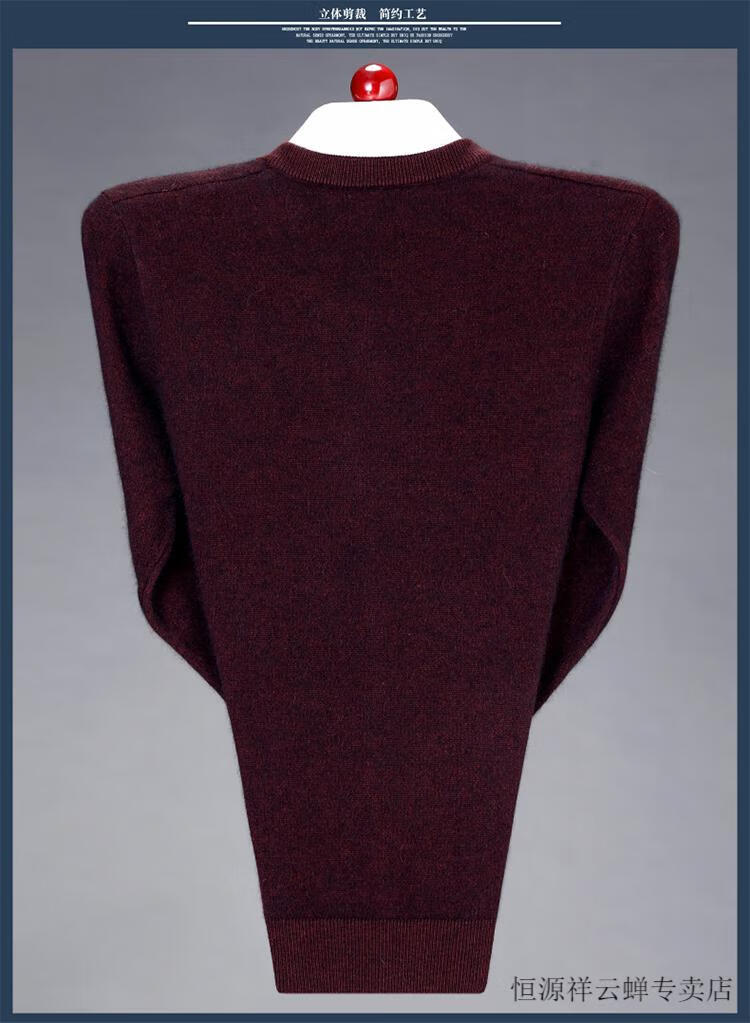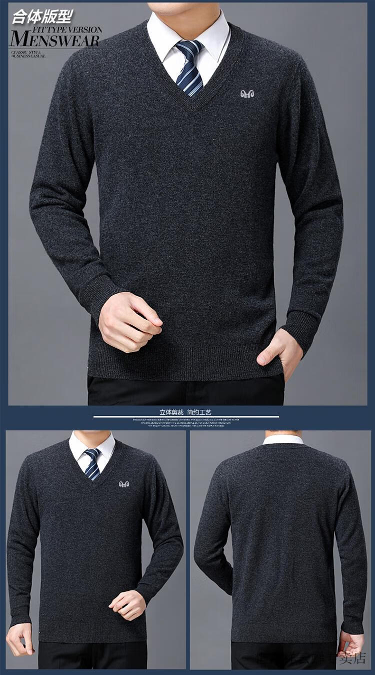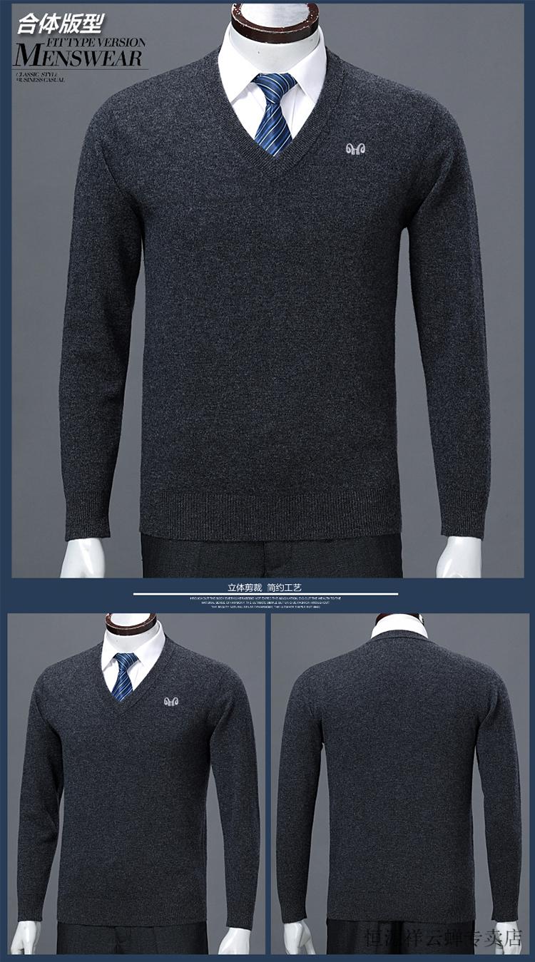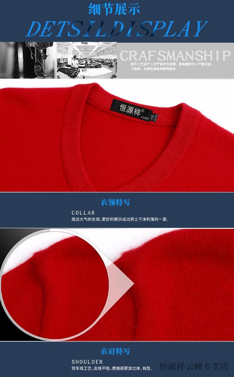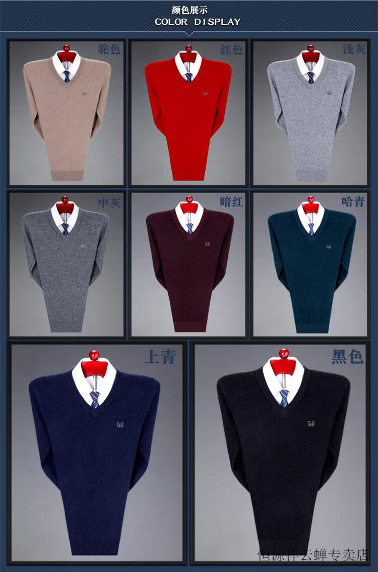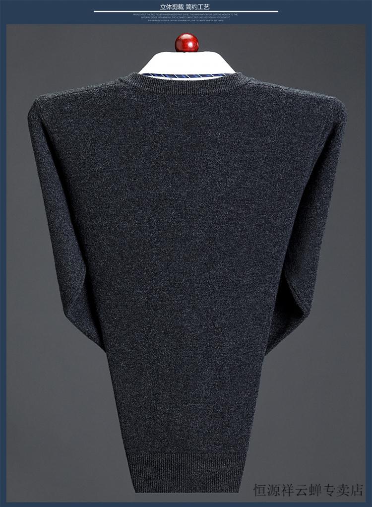 Hengyuanxiang 100% pure wool sweater men's winter V-neck thickened middle-aged and elderly men's sweetheart neck bottoming sweater dad's wear light gray L 170 120-135Jin Jin equals 0.5 kg