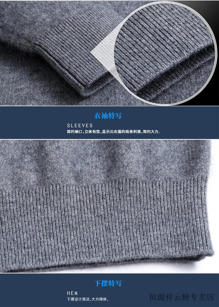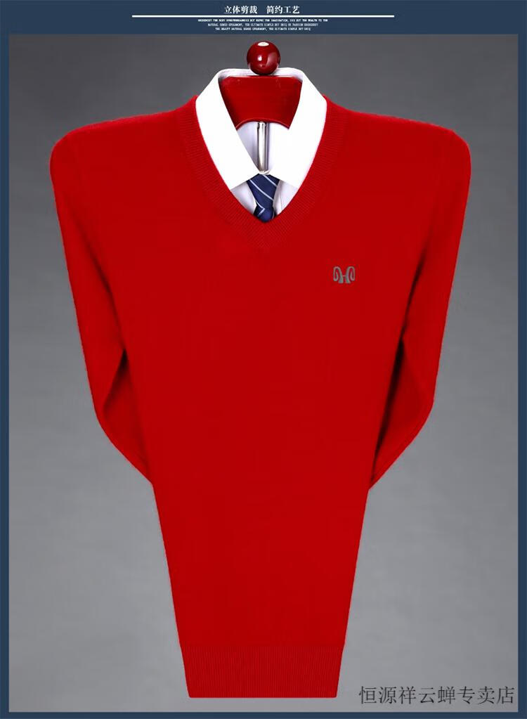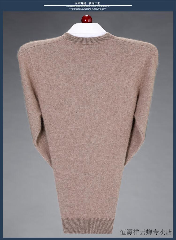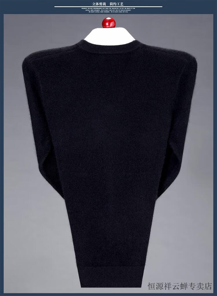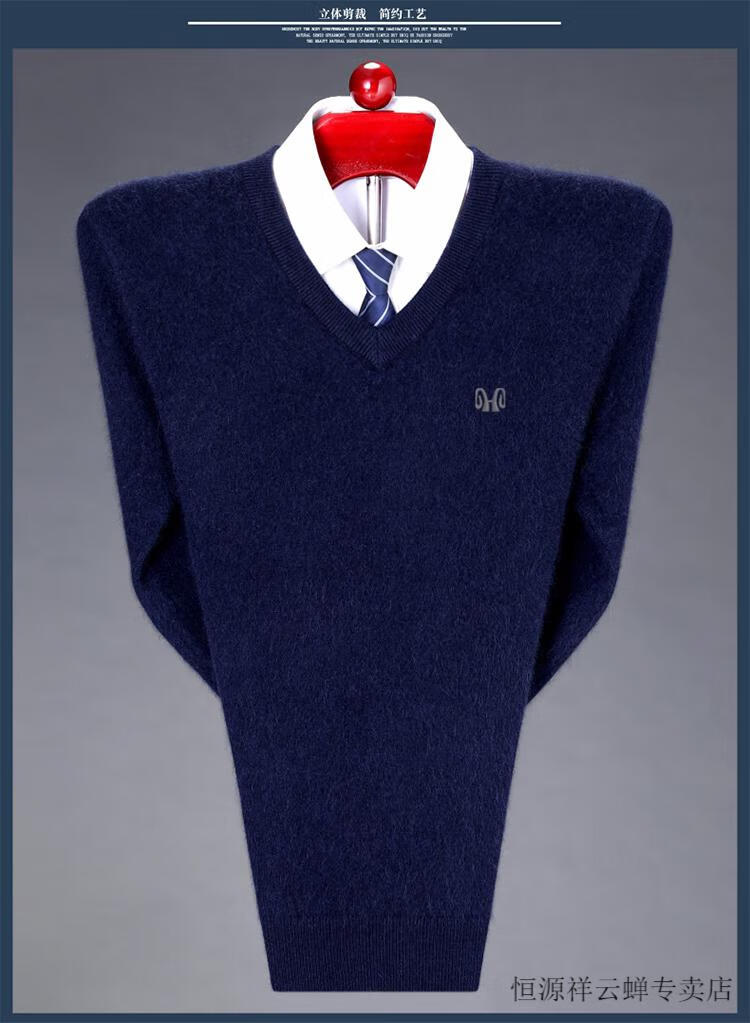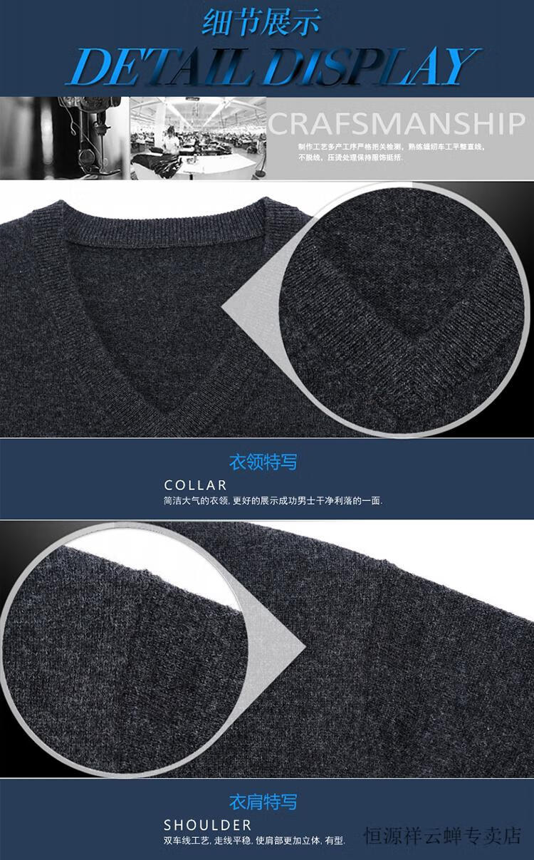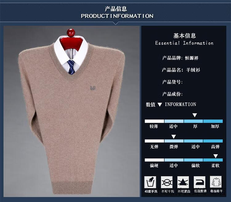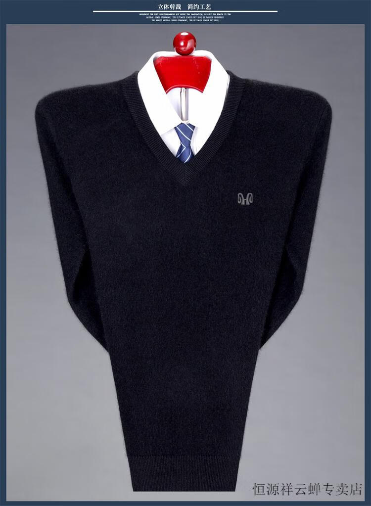 Hengyuanxiang 100% pure wool sweater men's winter V-neck thickened middle-aged and elderly men's sweetheart neck bottoming sweater dad's wear light gray L 170 120-135Jin Jin equals 0.5 kg