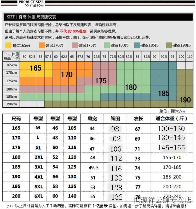 China (cm) 165 / 88-90 170 / 96-98 175 / 108-110 180 / 118-122 185 / 126-130