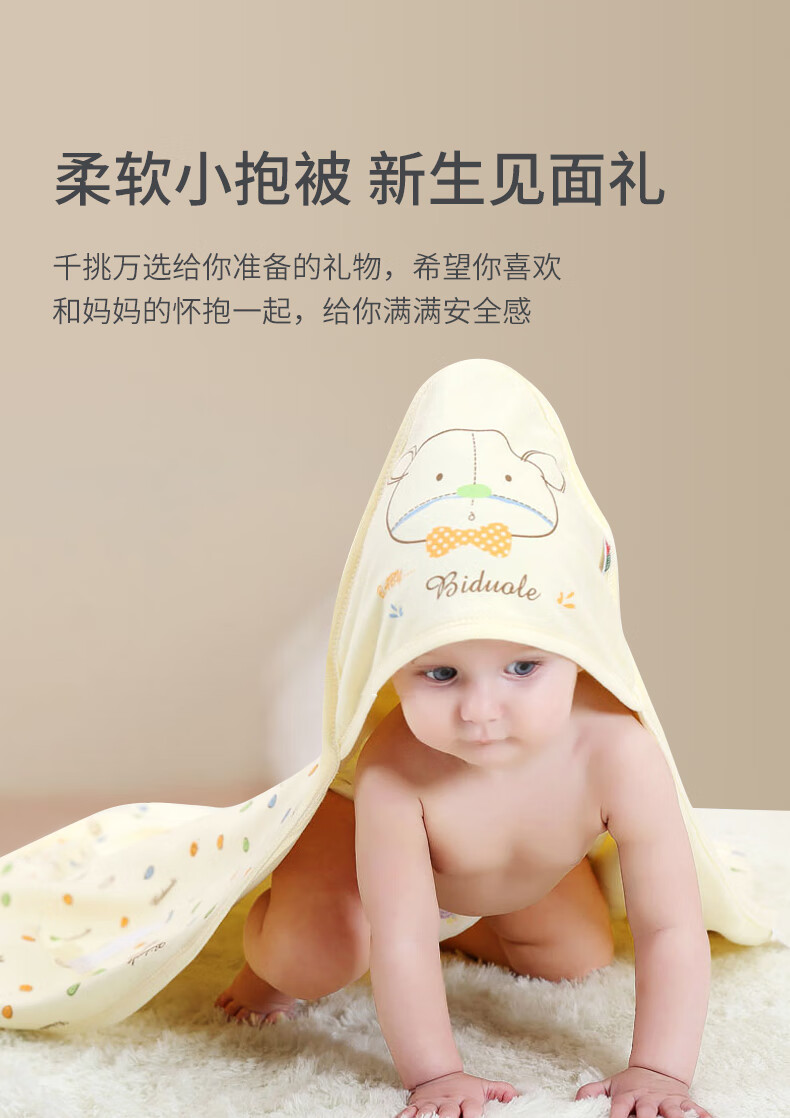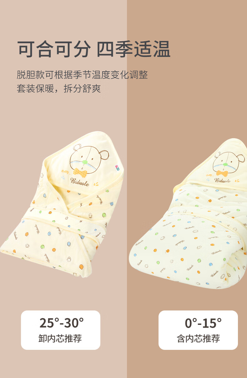 Biduole newborn baby quilt, autumn and winter pure cotton baby quilt, thickened removable quilt, spring and summer thin bag sheet, medium thick quilted - spring and autumn - yellow / about 15-25