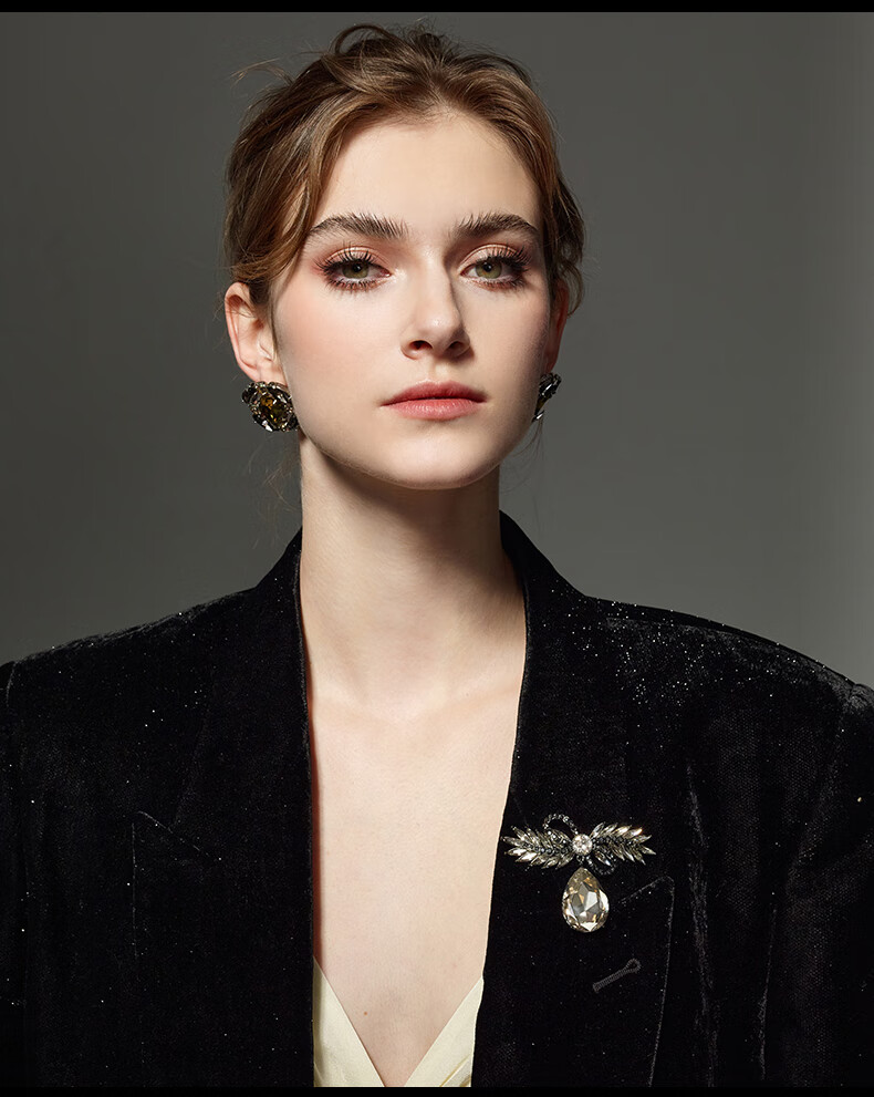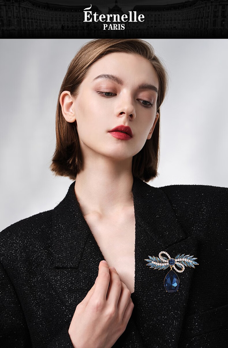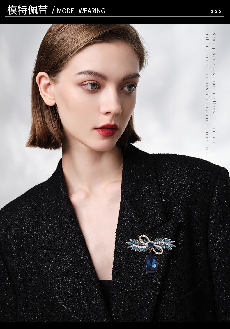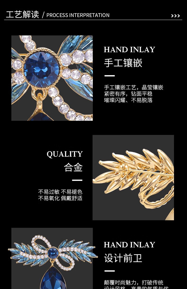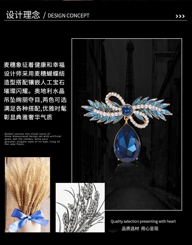 Eternelle French eternal wheat crystal brooch design niche light luxury corsage high-end jewelry gift elegant blue