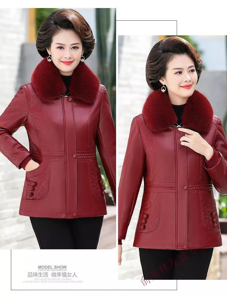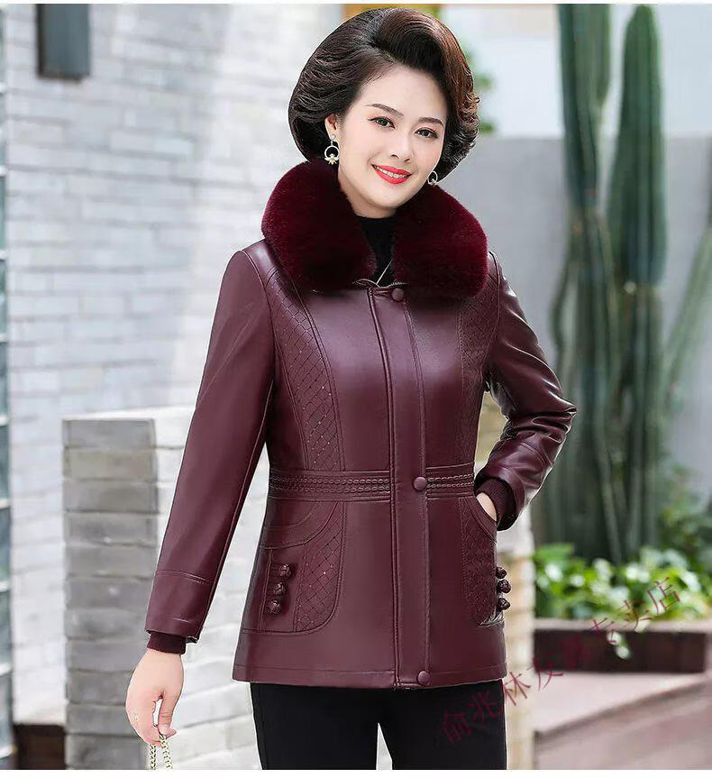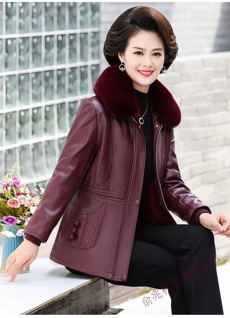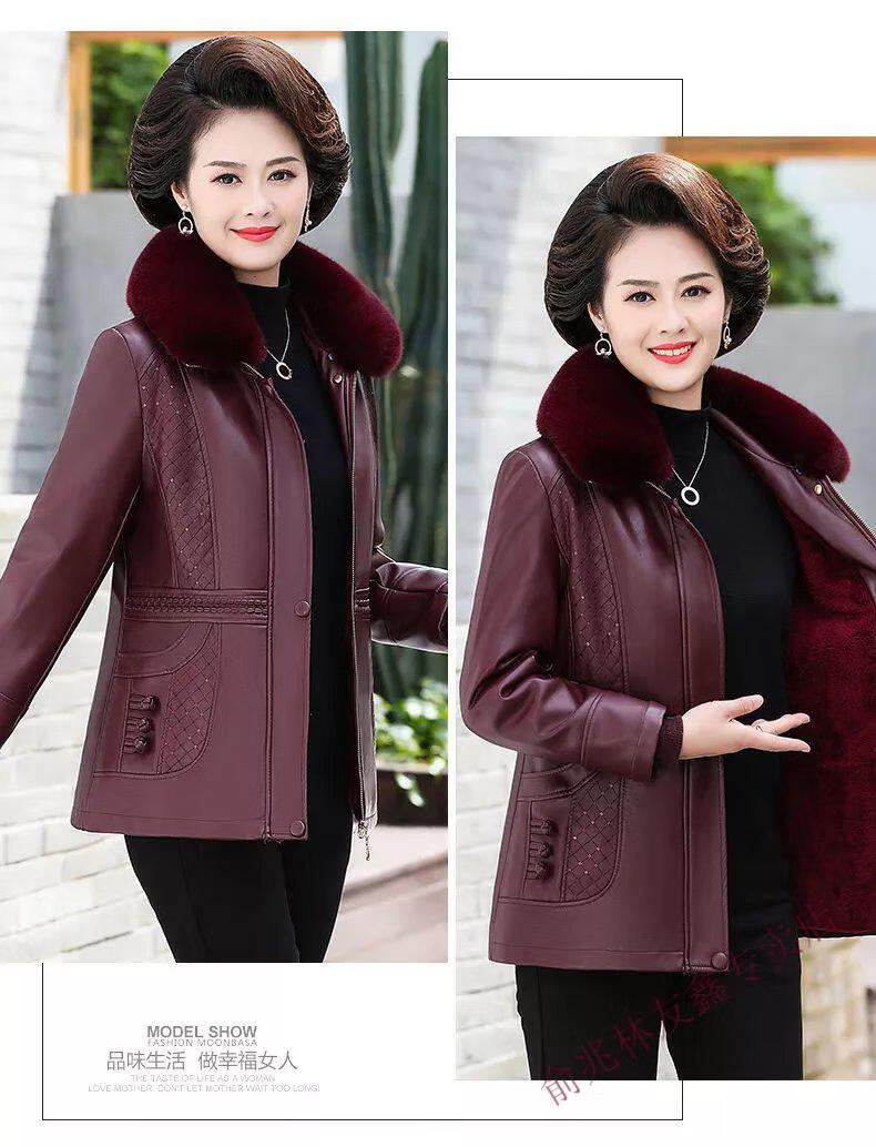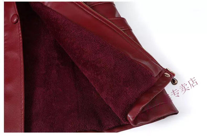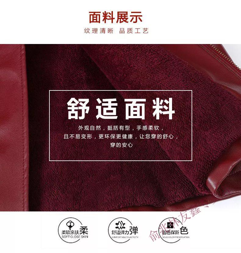 Yu Zhaolin (YUZHAOLIN) brand autumn and winter leather jacket large size loose mother's wear velvet thickened leather jacket middle-aged and elderly women's leather cotton coat velvet maroon 3XL 115-120Jin Jin equals 0.5 kg