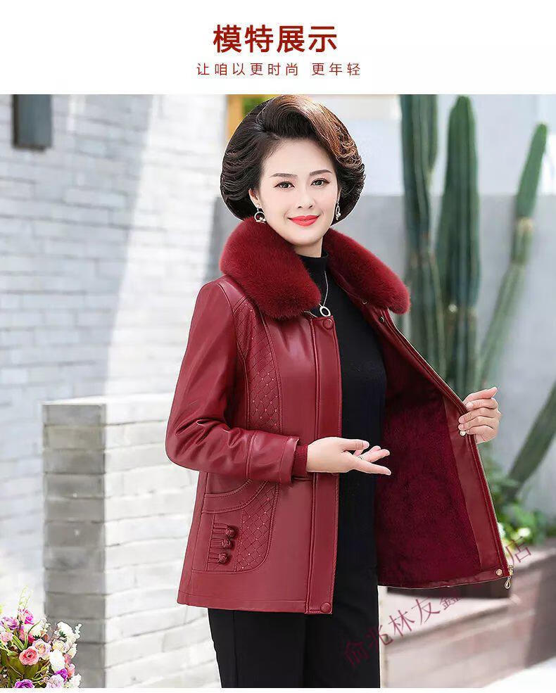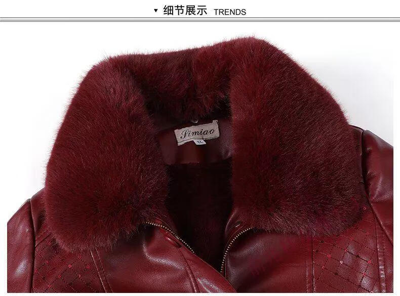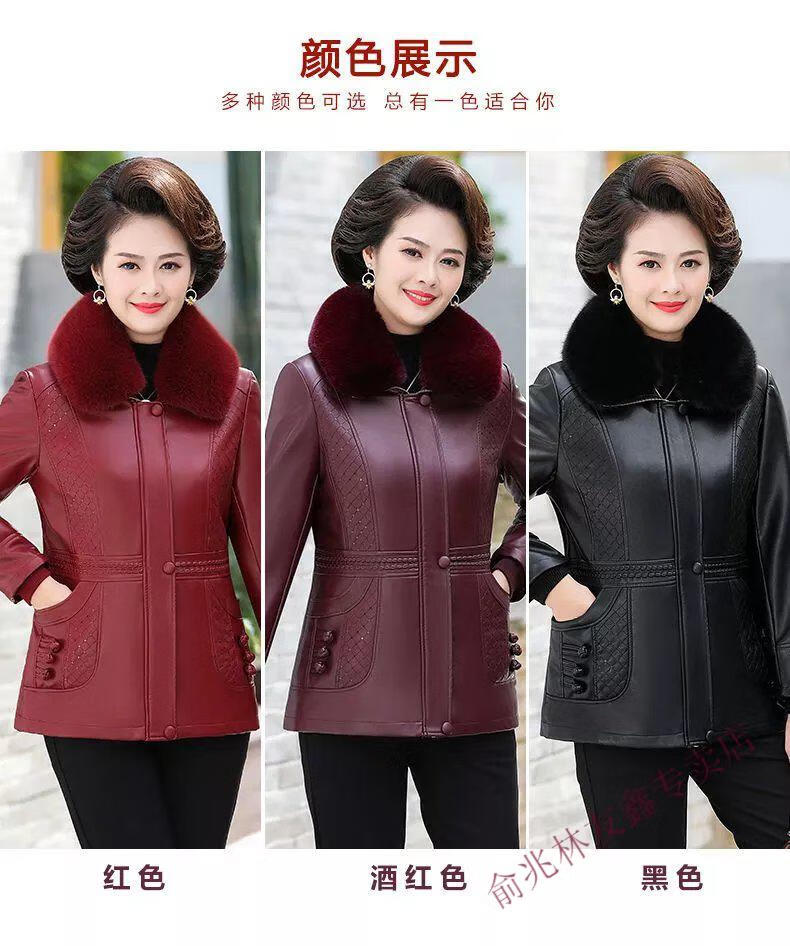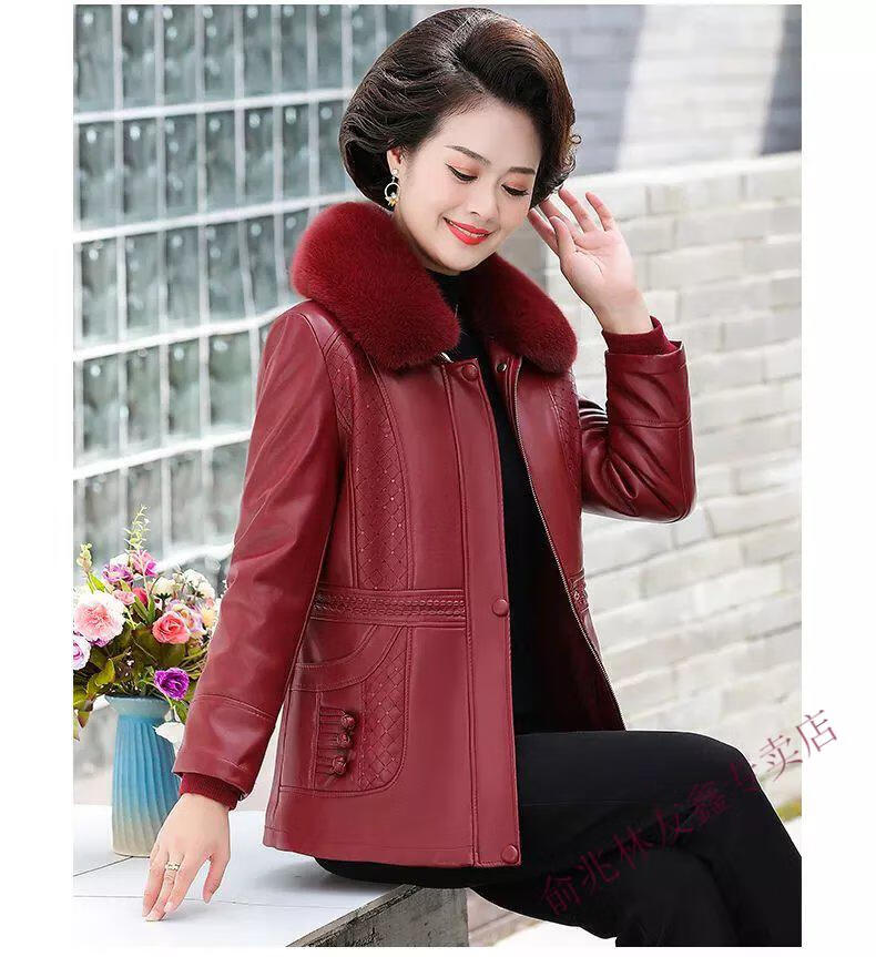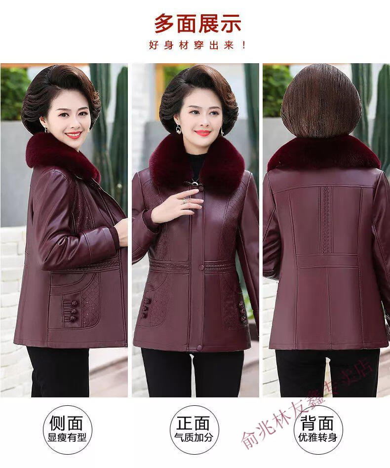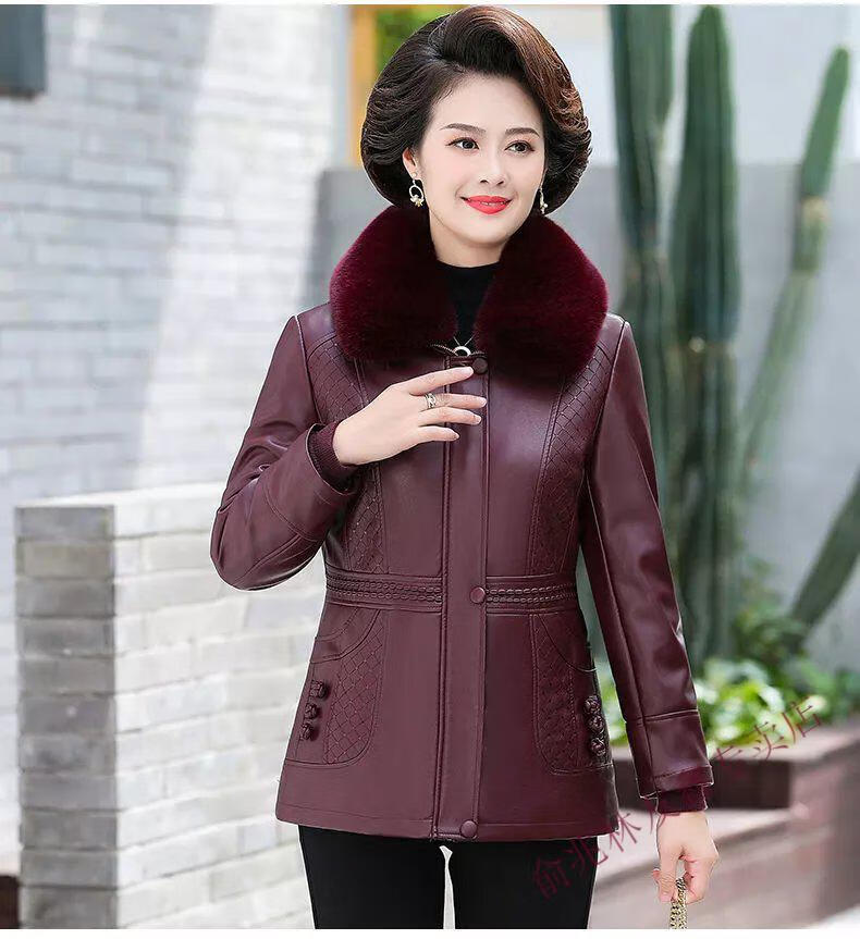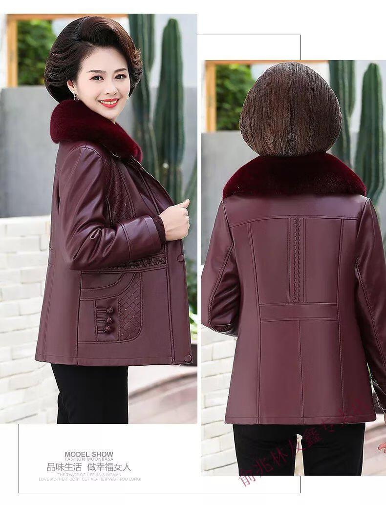 Yu Zhaolin (YUZHAOLIN) brand autumn and winter leather jacket large size loose mother's wear velvet thickened leather jacket middle-aged and elderly women's leather cotton coat velvet maroon 3XL 115-120Jin Jin equals 0.5 kg