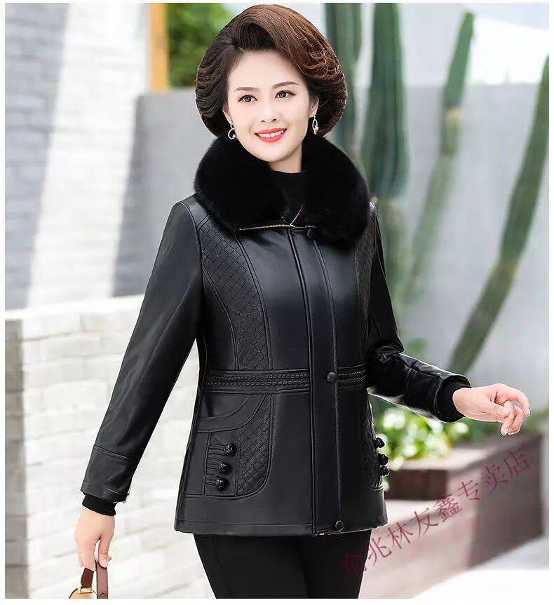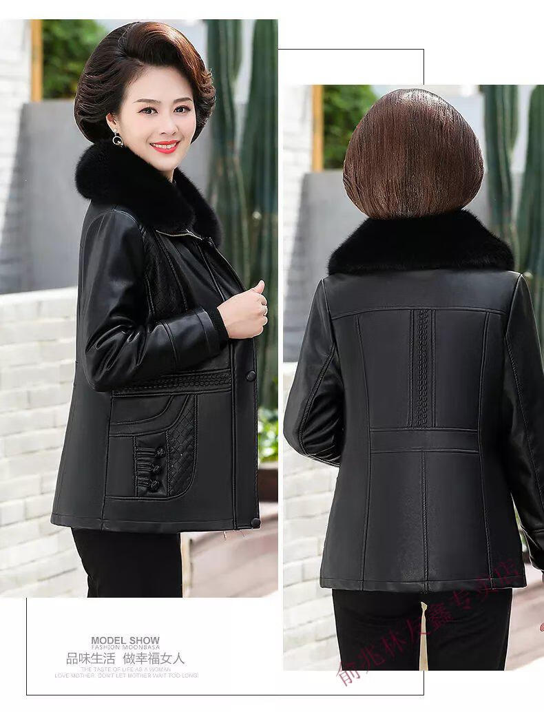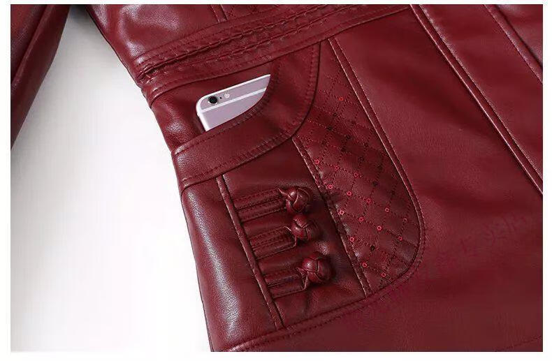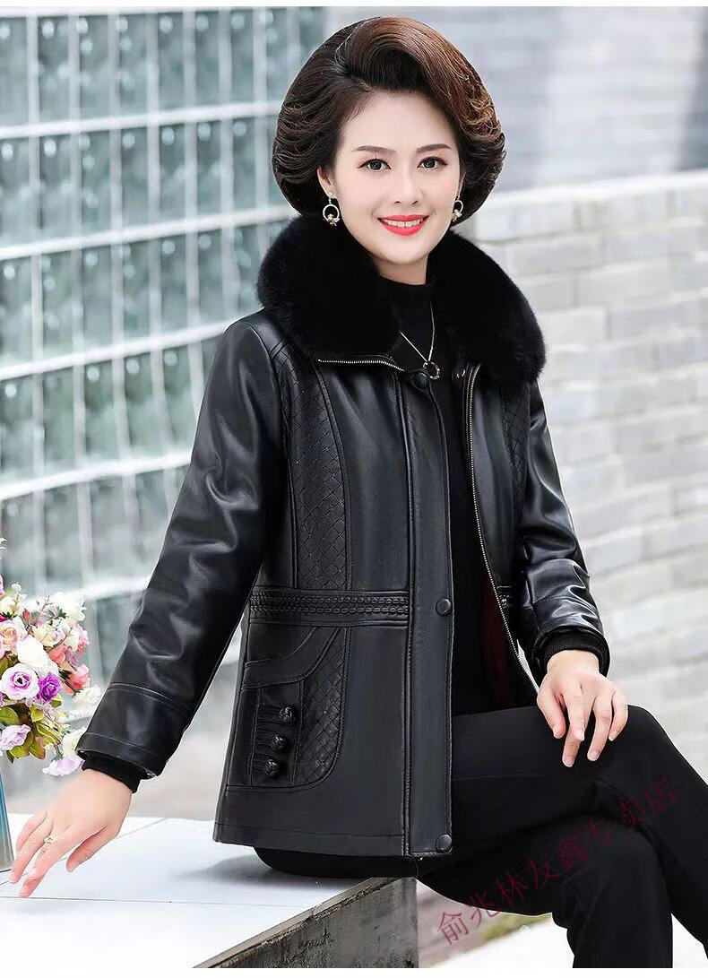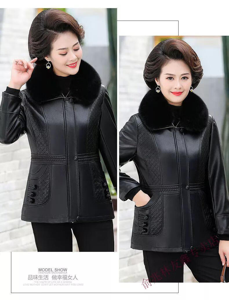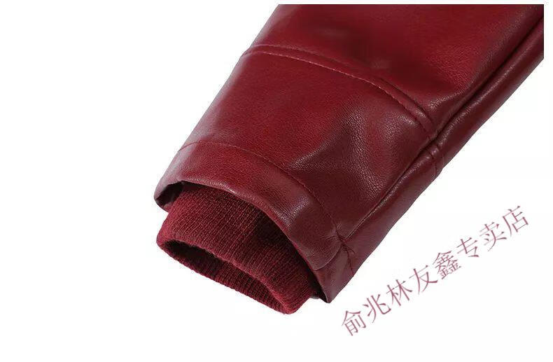 Yu Zhaolin (YUZHAOLIN) brand autumn and winter leather jacket large size loose mother's wear velvet thickened leather jacket middle-aged and elderly women's leather cotton coat velvet maroon 3XL 115-120Jin Jin equals 0.5 kg
