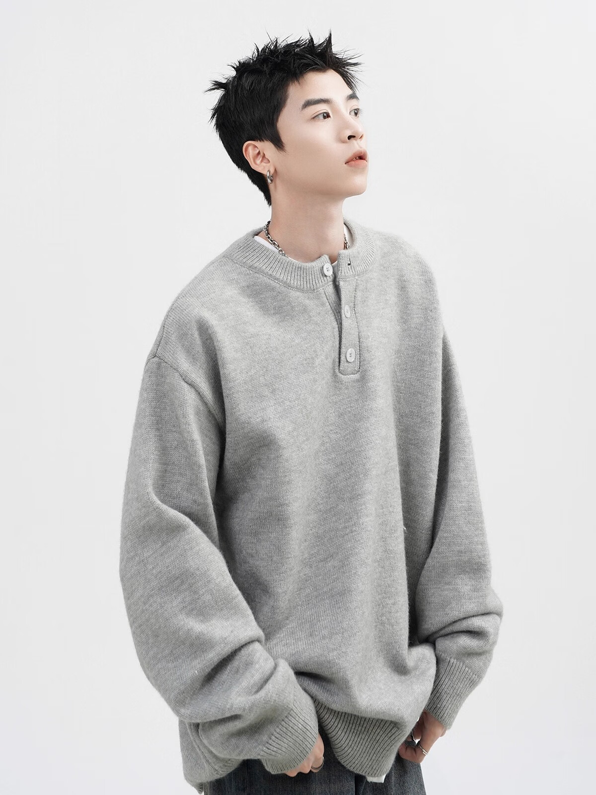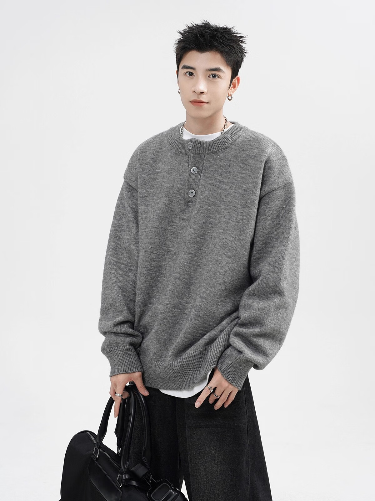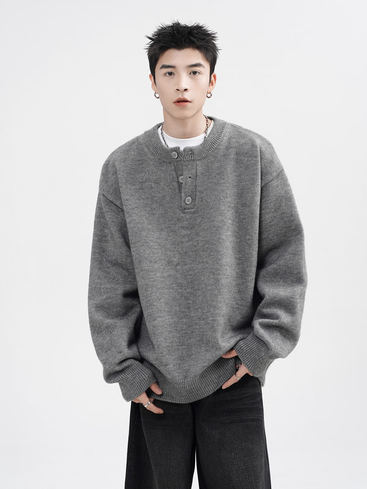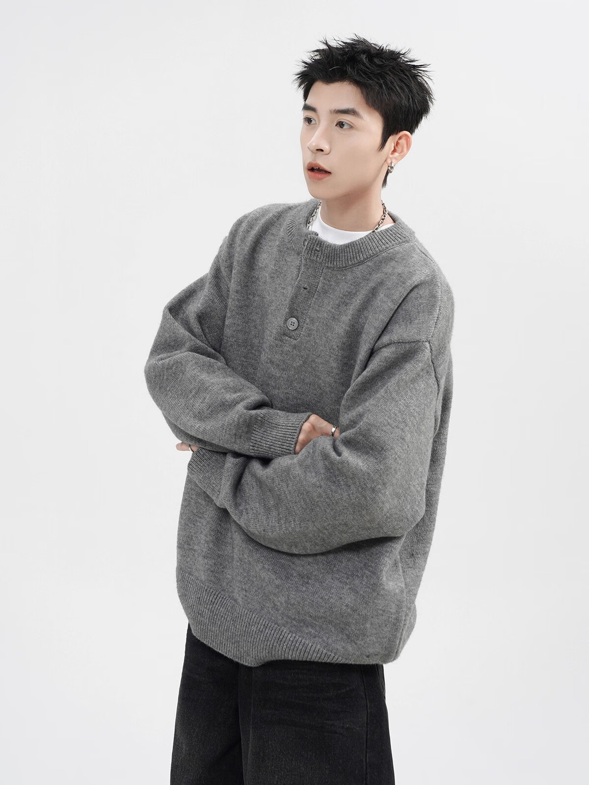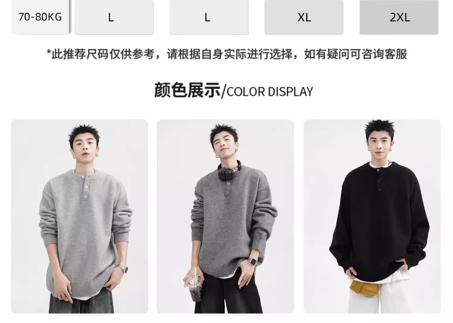 OEMG Henry collar sweater men's autumn new retro top versatile high-end casual sweater jacket dark gray XL recommended 110-130Jin Jin equals 0.5 kg