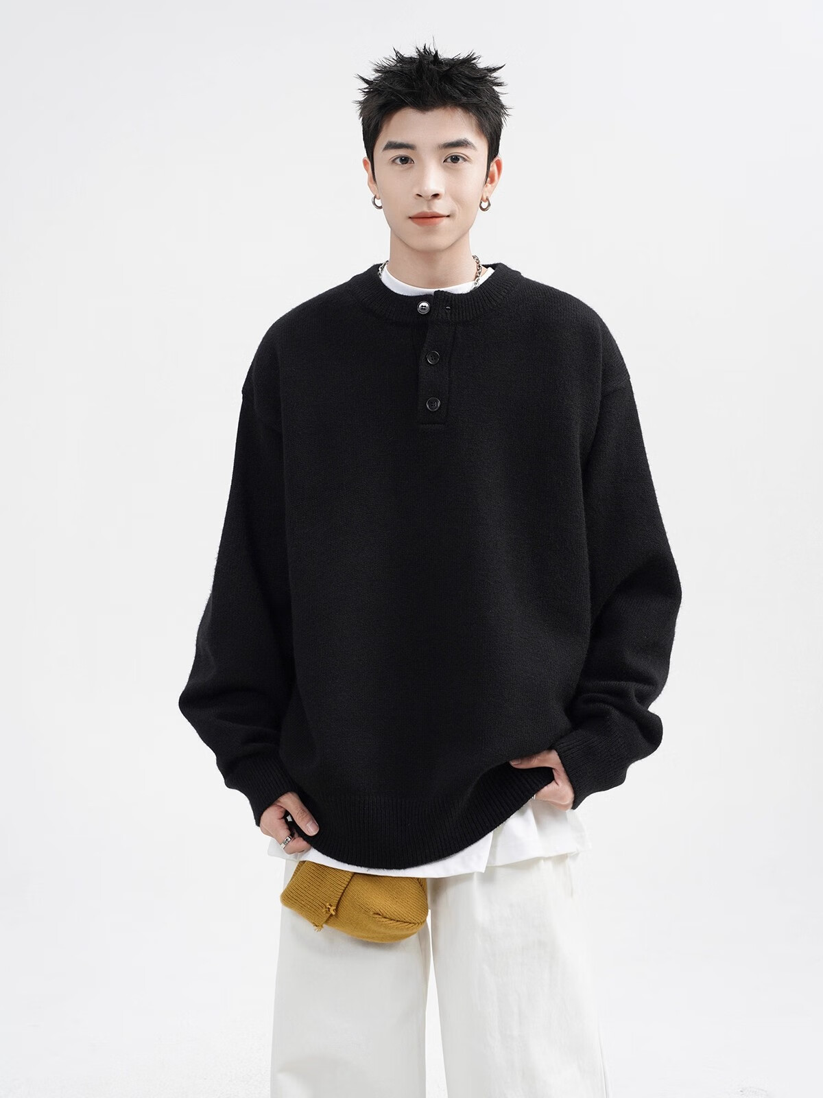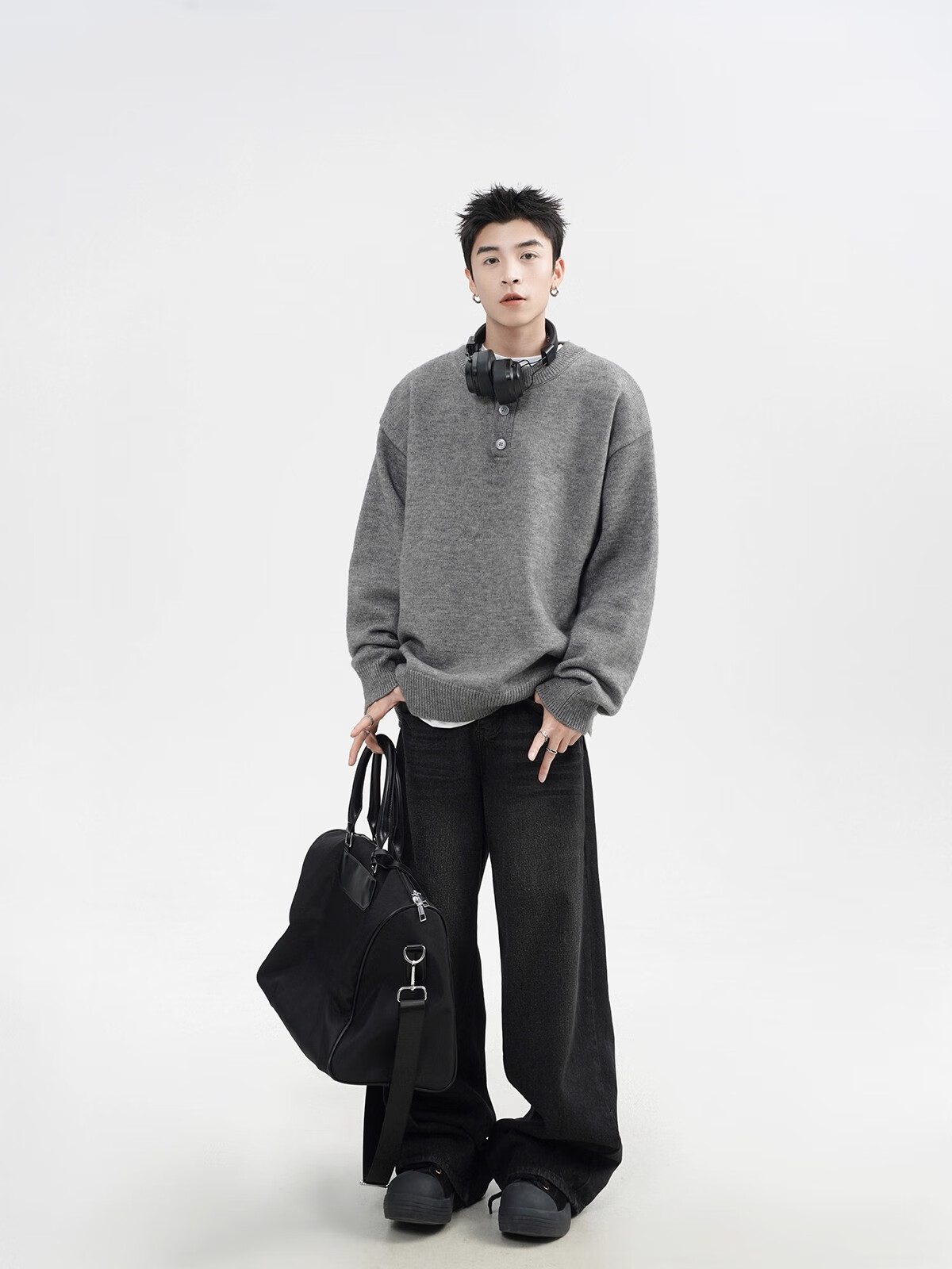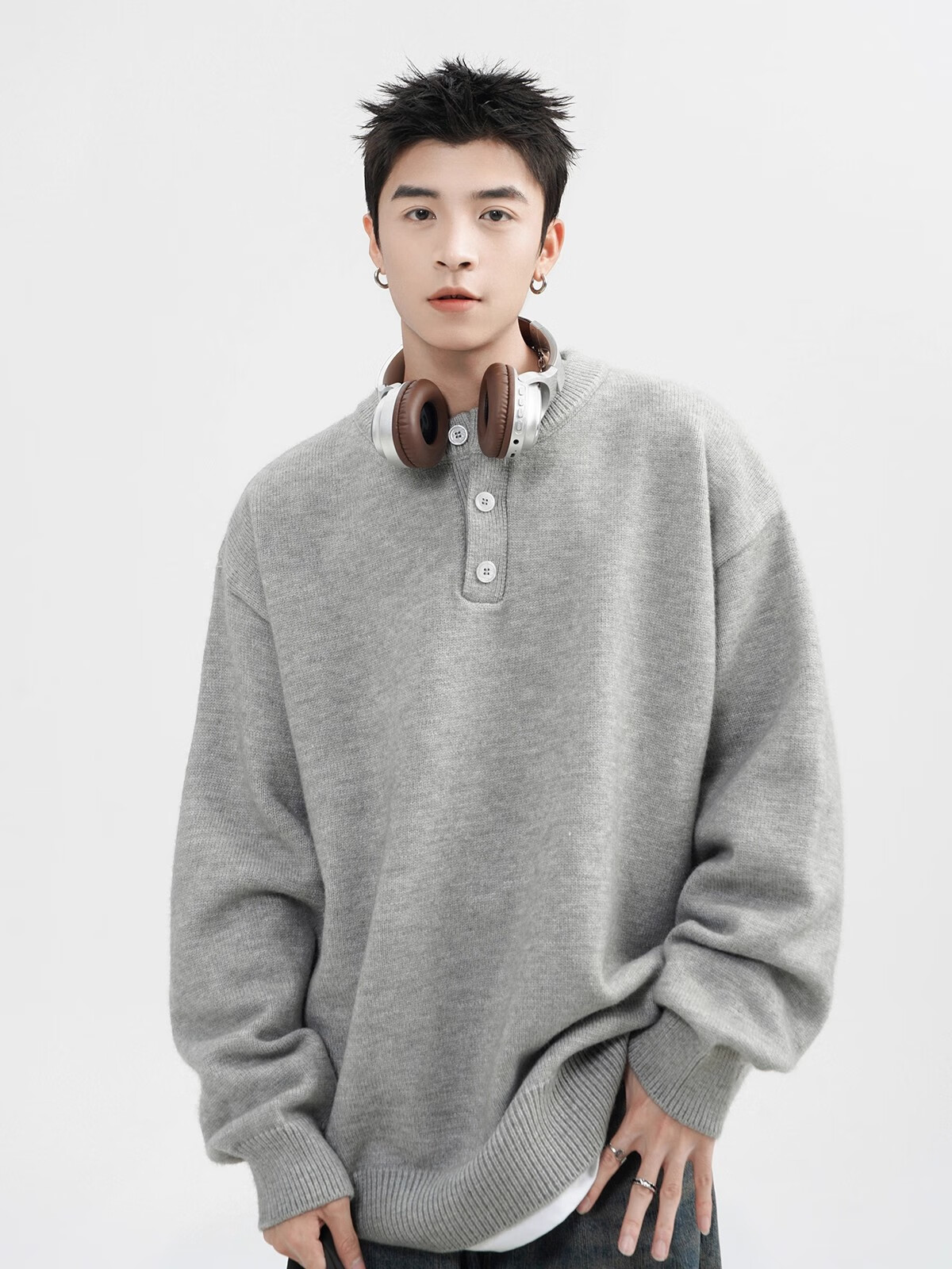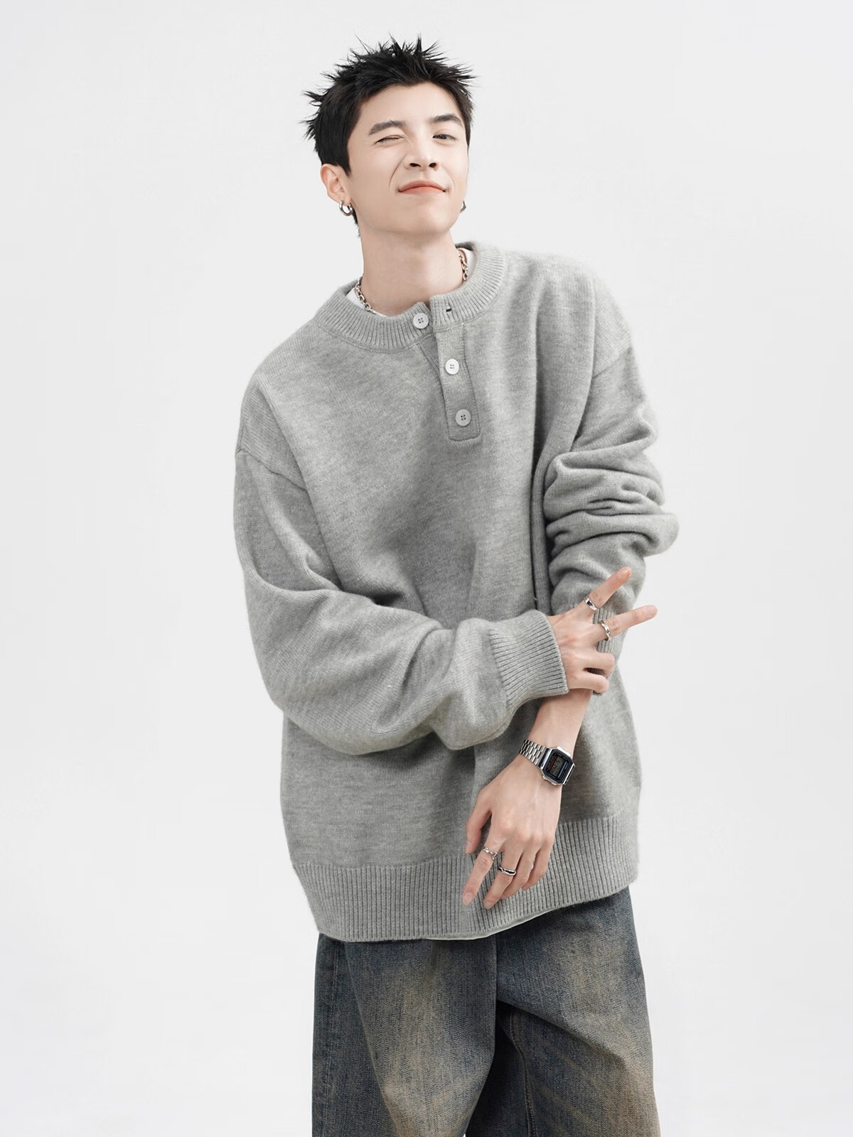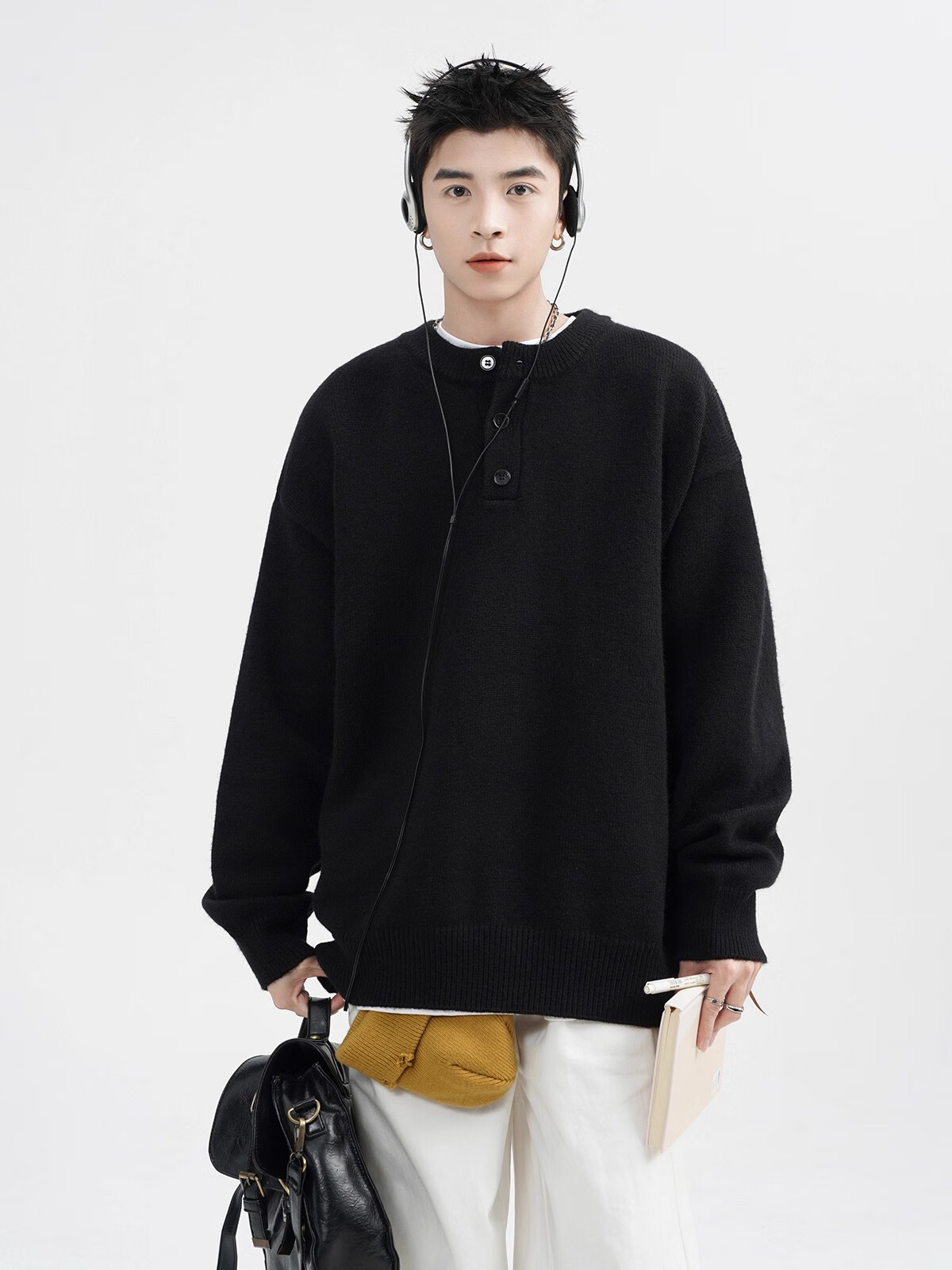 OEMG Henry collar sweater men's autumn new retro top versatile high-end casual sweater jacket dark gray XL recommended 110-130Jin Jin equals 0.5 kg
