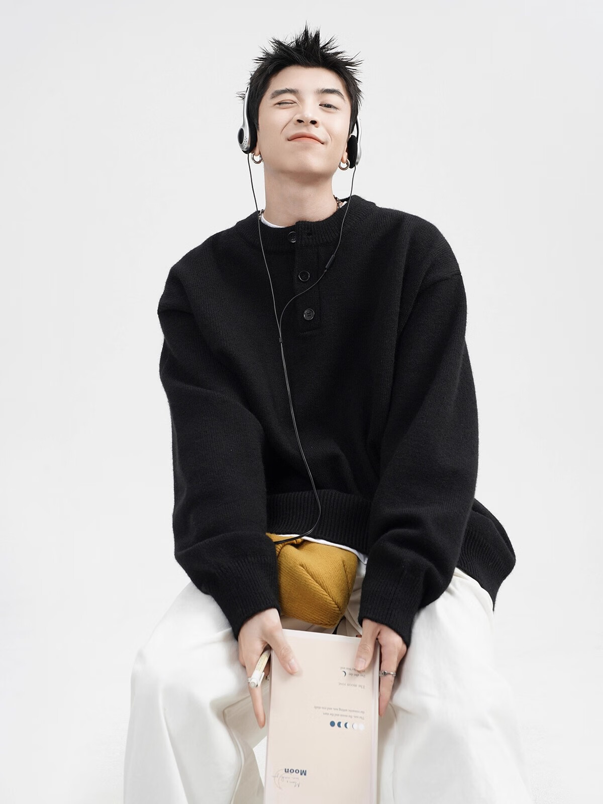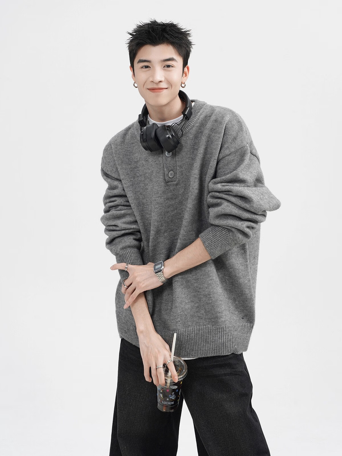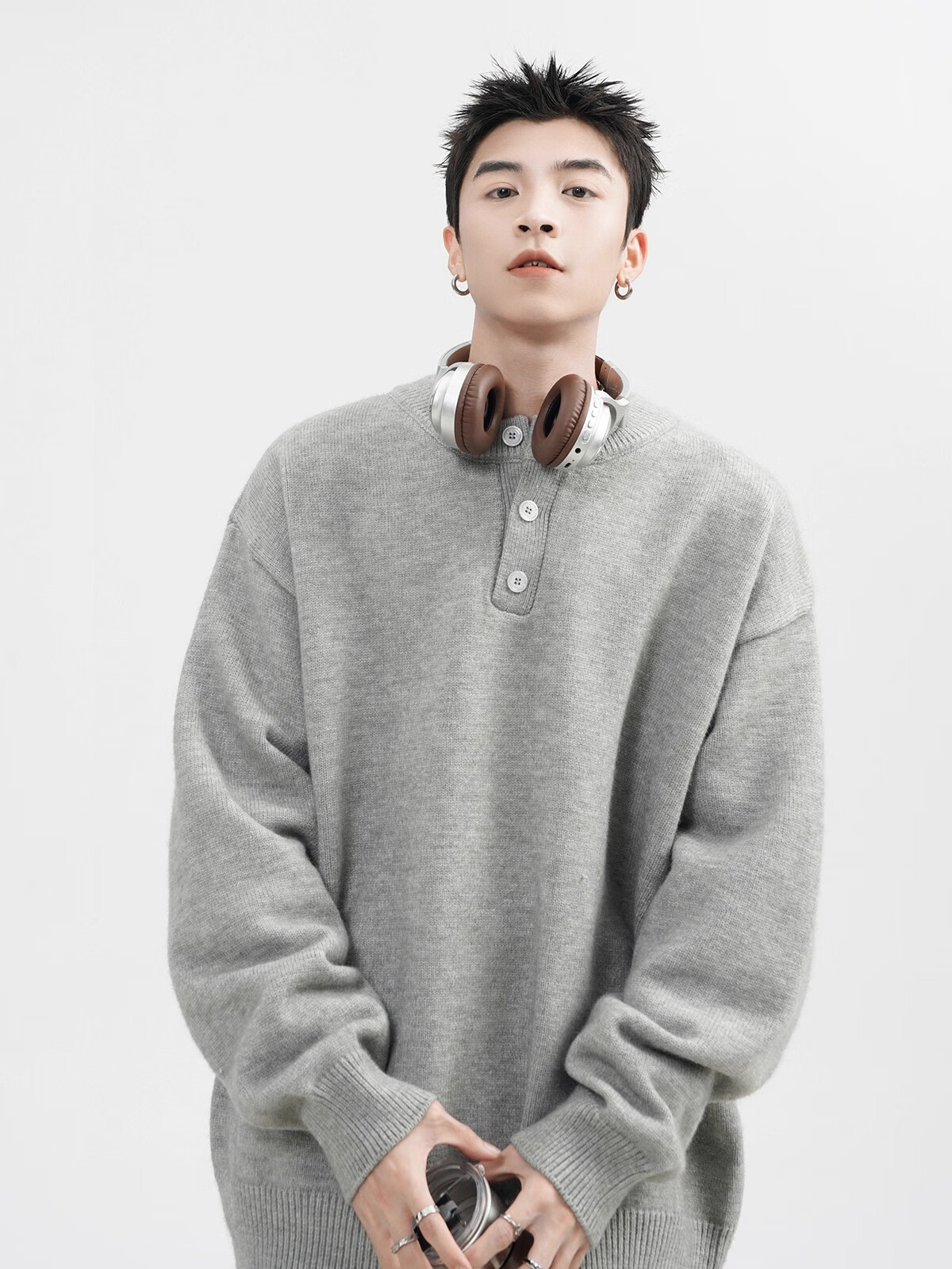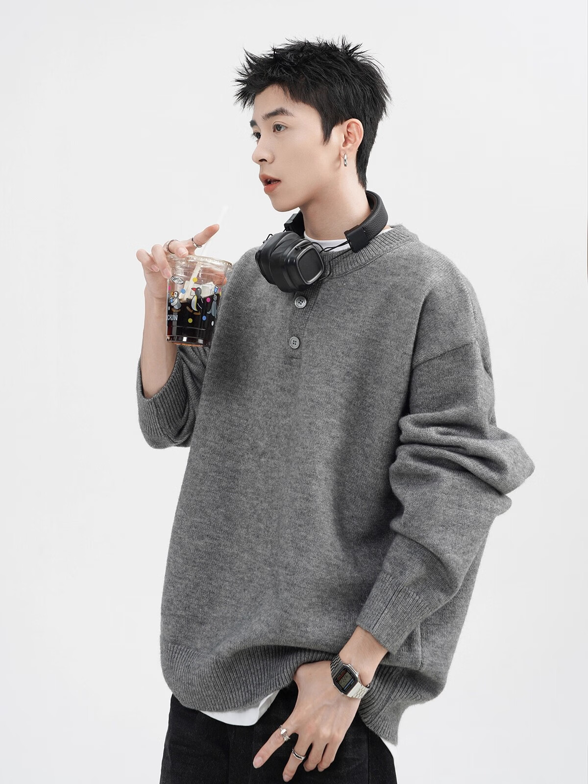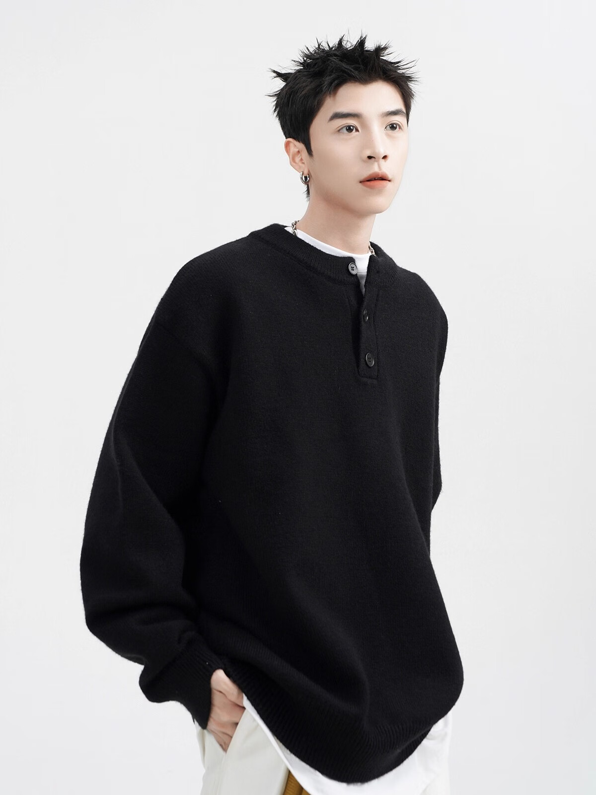 OEMG Henry collar sweater men's autumn new retro top versatile high-end casual sweater jacket dark gray XL recommended 110-130Jin Jin equals 0.5 kg