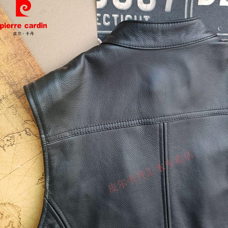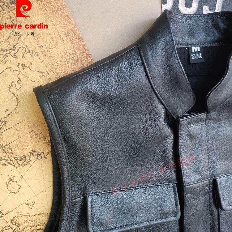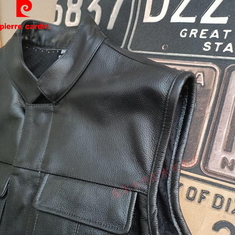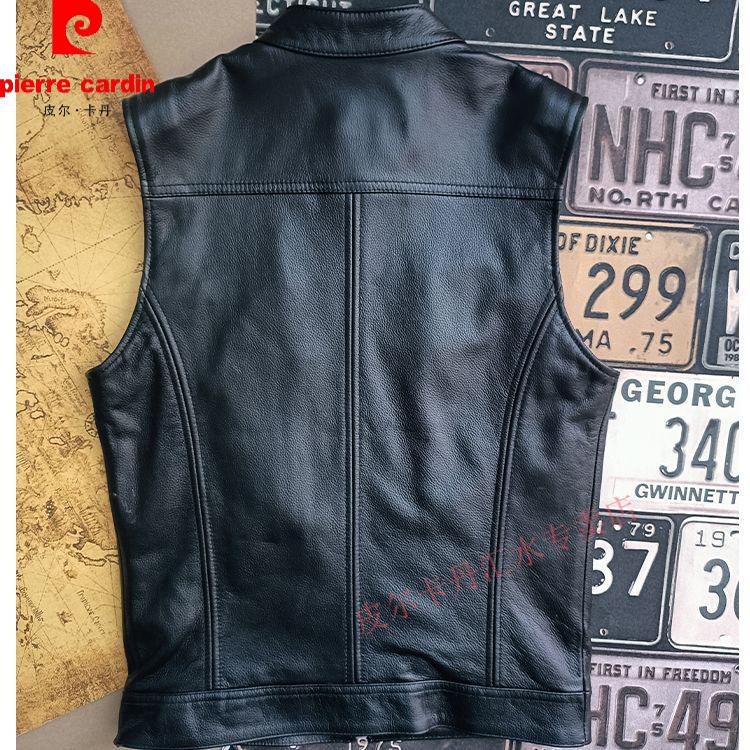 Pierre Cardin (Pierre Cardin) Spring and Autumn Leather Vest Fashion Trendy Handsome Motorcycle Cycling Suit Leather Vest Sleeveless Waistcoat Top Men Black M 90-110Jin Jin is equal to 0.5 kg