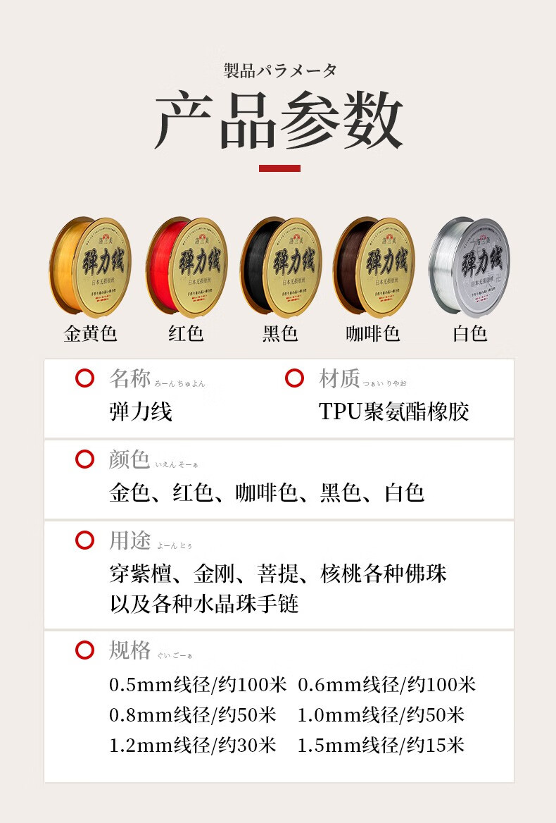 LUOLANMEI Wenwan High-end Beef Tendon Elastic Beaded Rope Elastic Line Crystal Transparent Wear-Resistant Bracelet Rope Special Bracelet Beads Golden Yellow 1.0mm/About 50 Meters