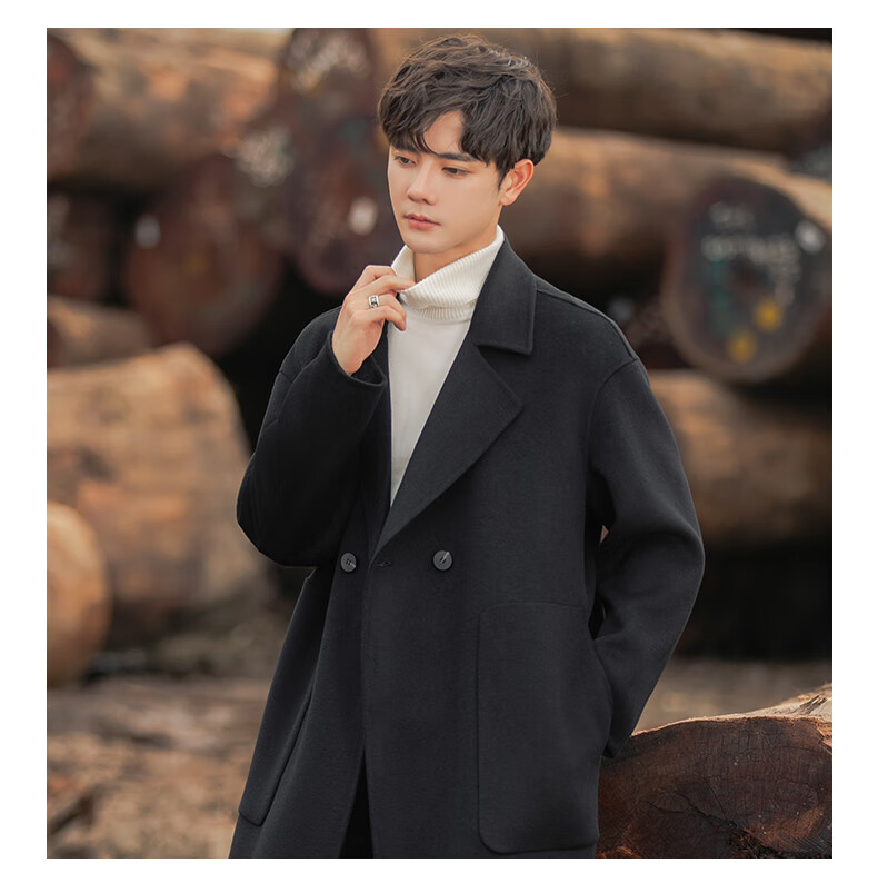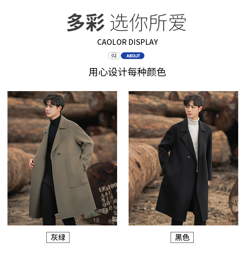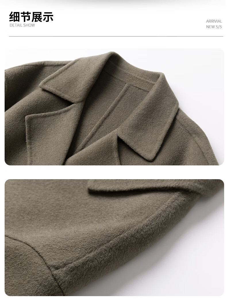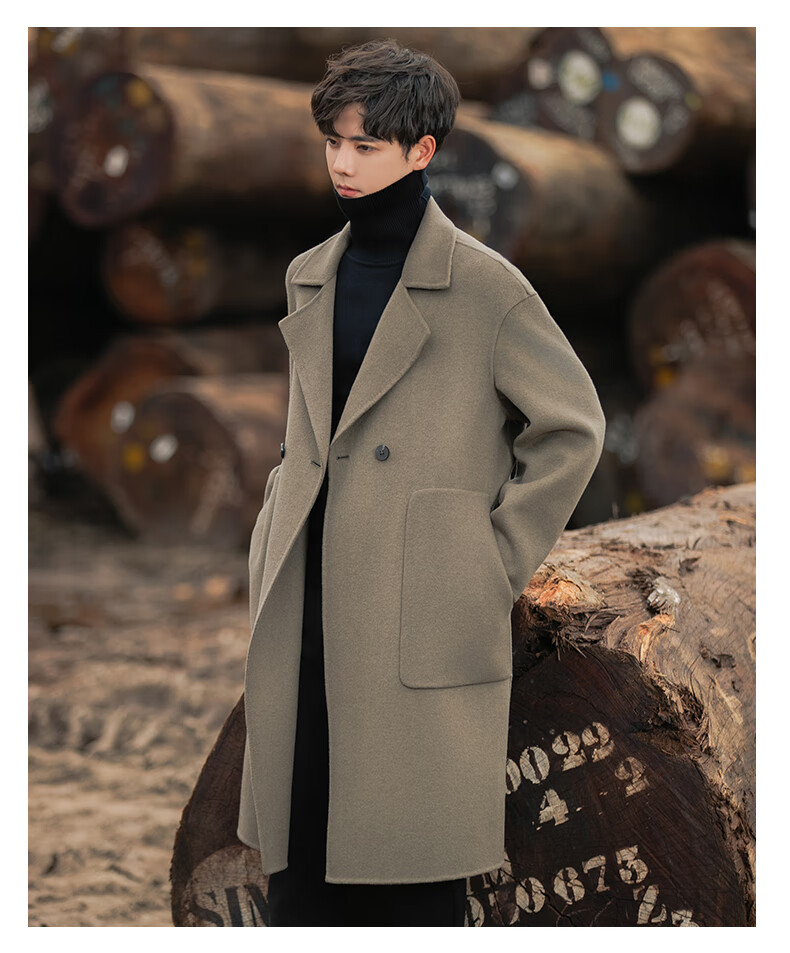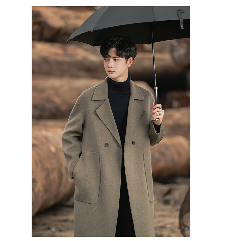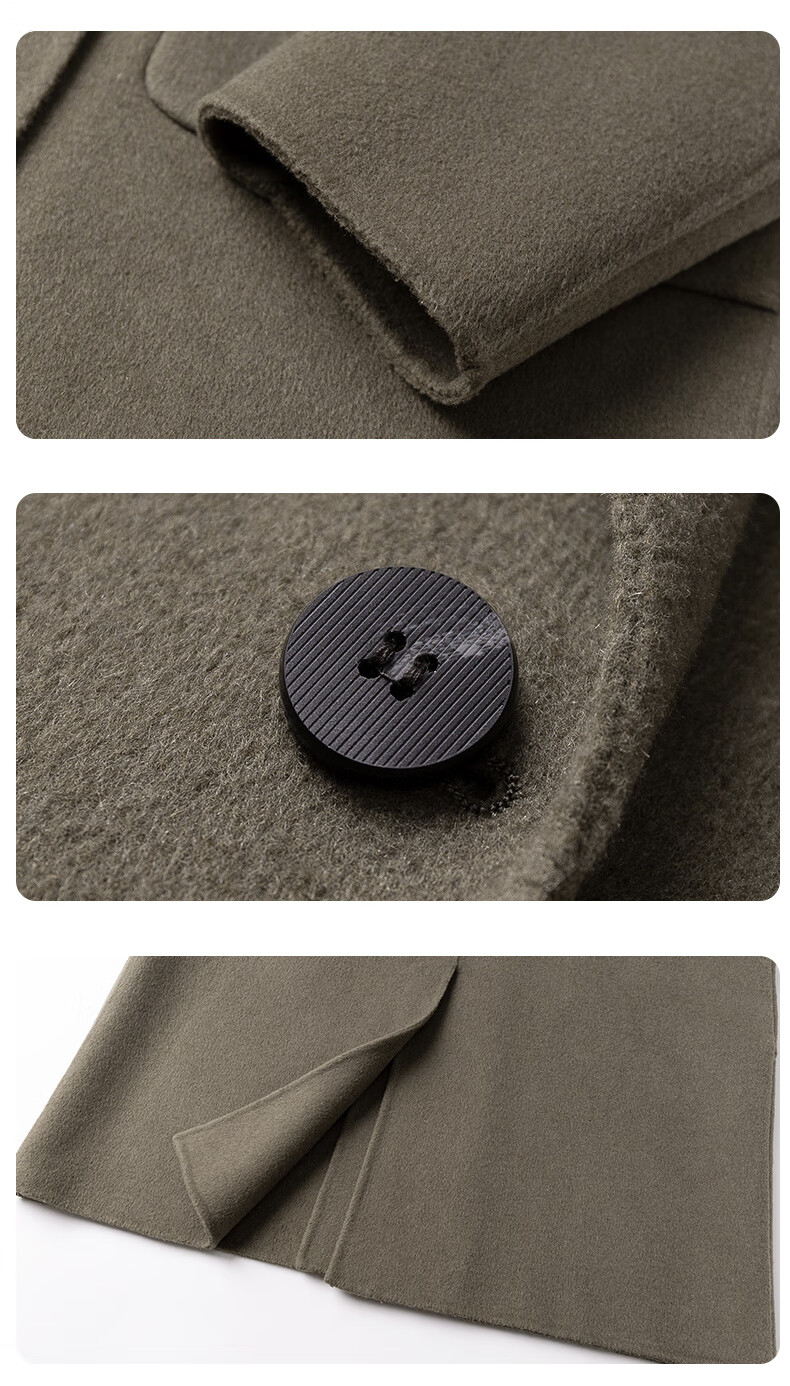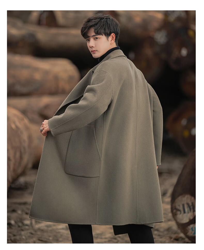 ROMON Light Luxury Spring and Autumn Wool Double-sided Wool Coat Men's Mid-Length Thickened Over-the-Knee Windbreaker High-Quality Jacket Men Gray Green (70% Sheep Wool) S Recommended (110Jin Jin is equal to less than 0.5 kg)