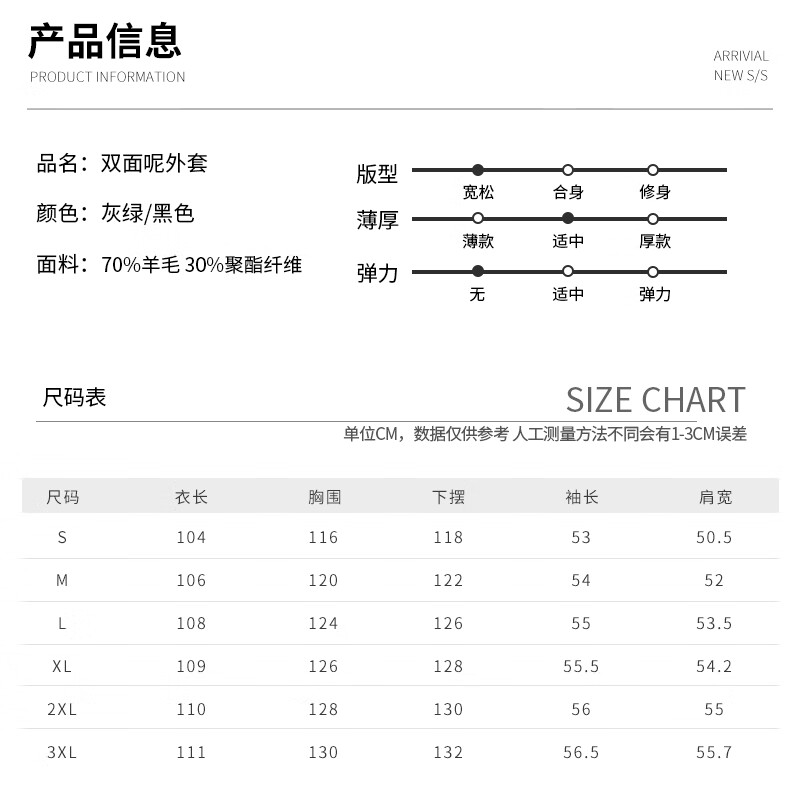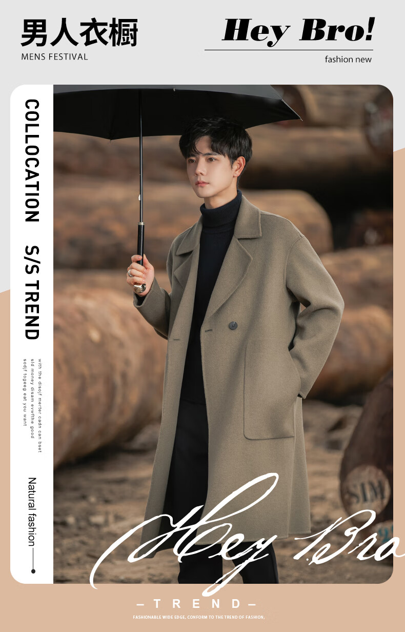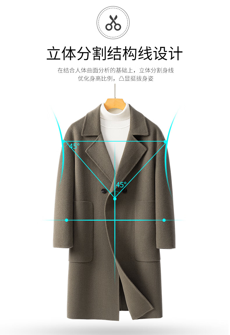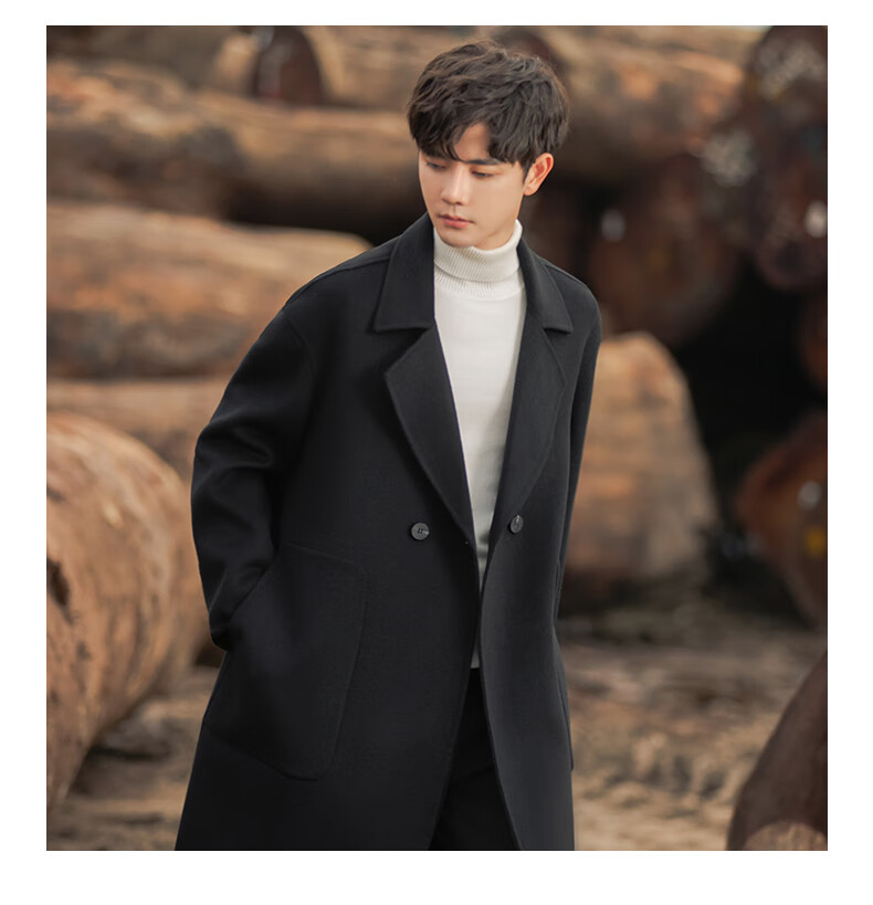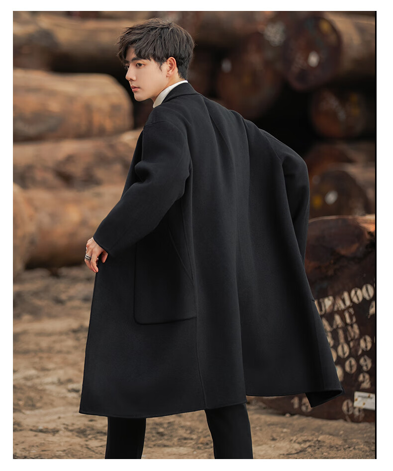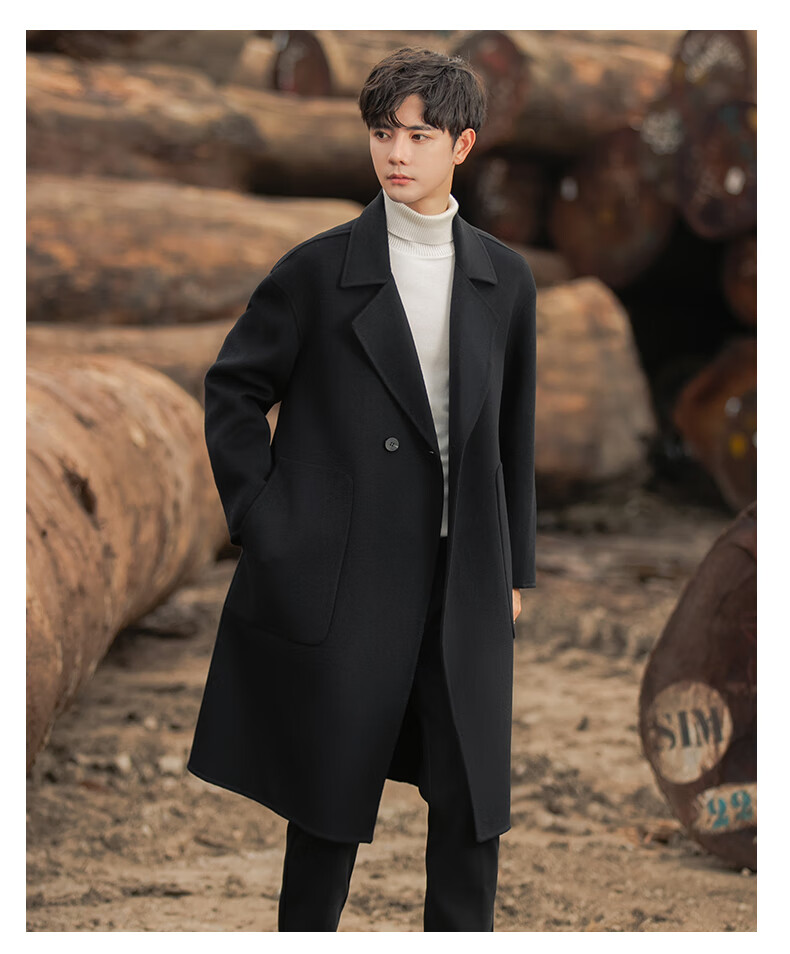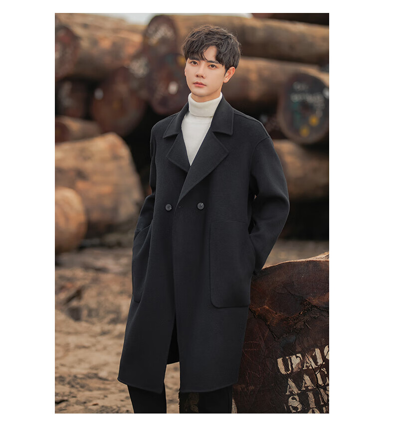 ROMON Light Luxury Spring and Autumn Wool Double-sided Wool Coat Men's Mid-Length Thickened Over-the-Knee Windbreaker High-Quality Jacket Men Gray Green (70% Sheep Wool) S Recommended (110Jin Jin is equal to less than 0.5 kg)