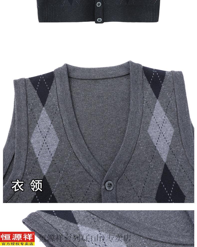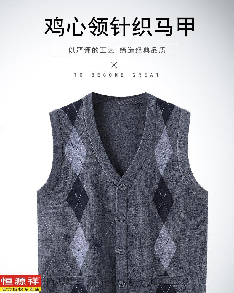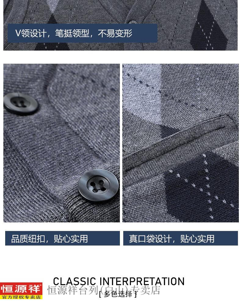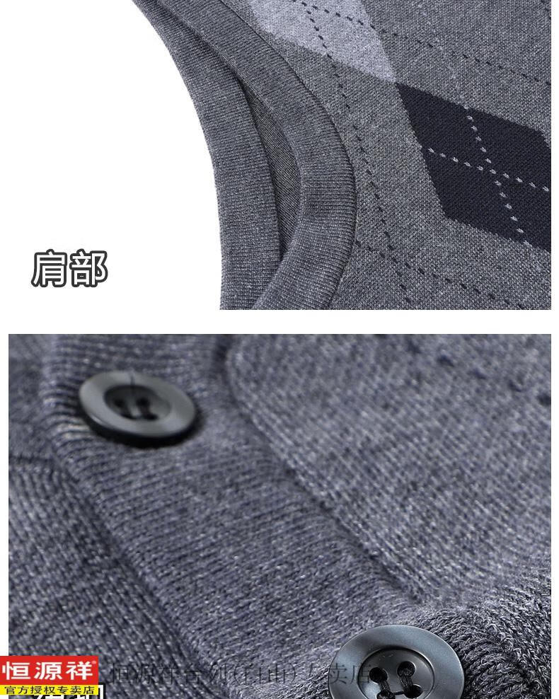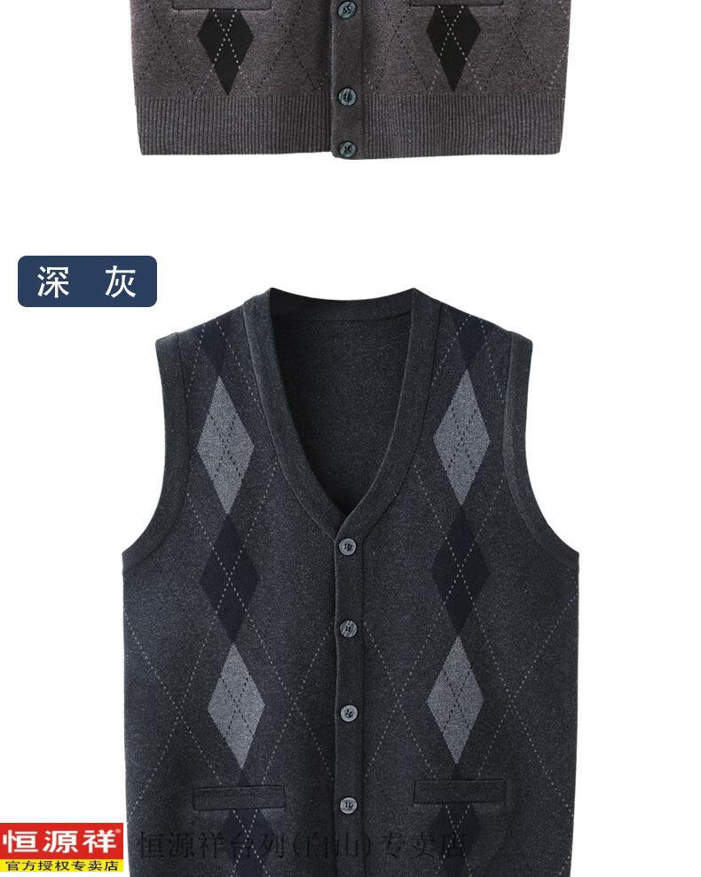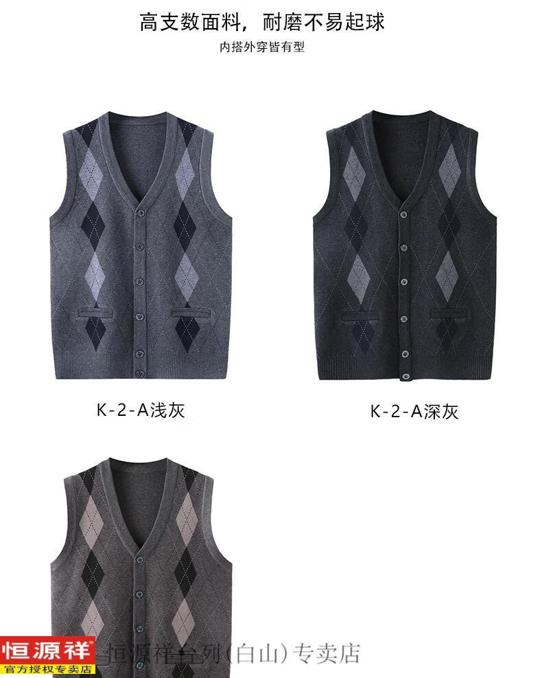 Hengyuanxiang autumn and winter knitted wool vest men's cardigan middle-aged dad vest middle-aged and elderly vest grandpa sweater K-2-A light gray 3XL recommended 160-185Jin Jin equals 0.5 kg