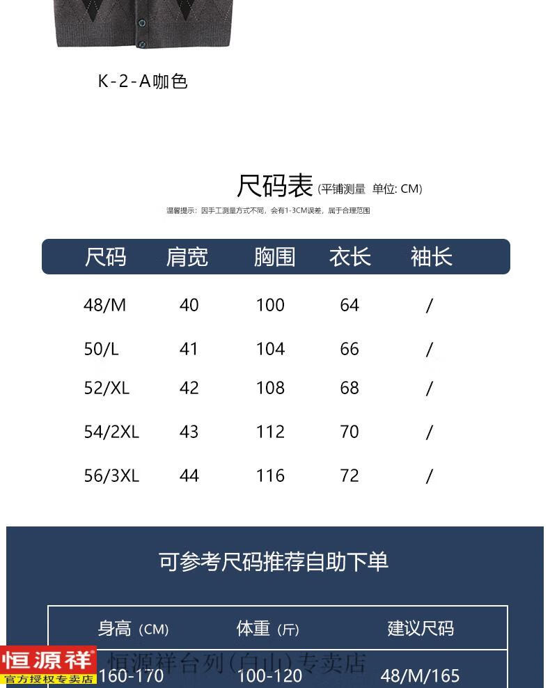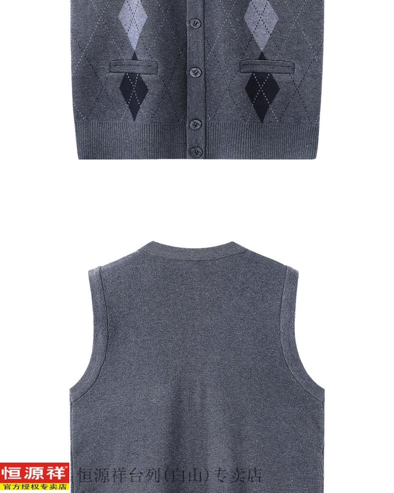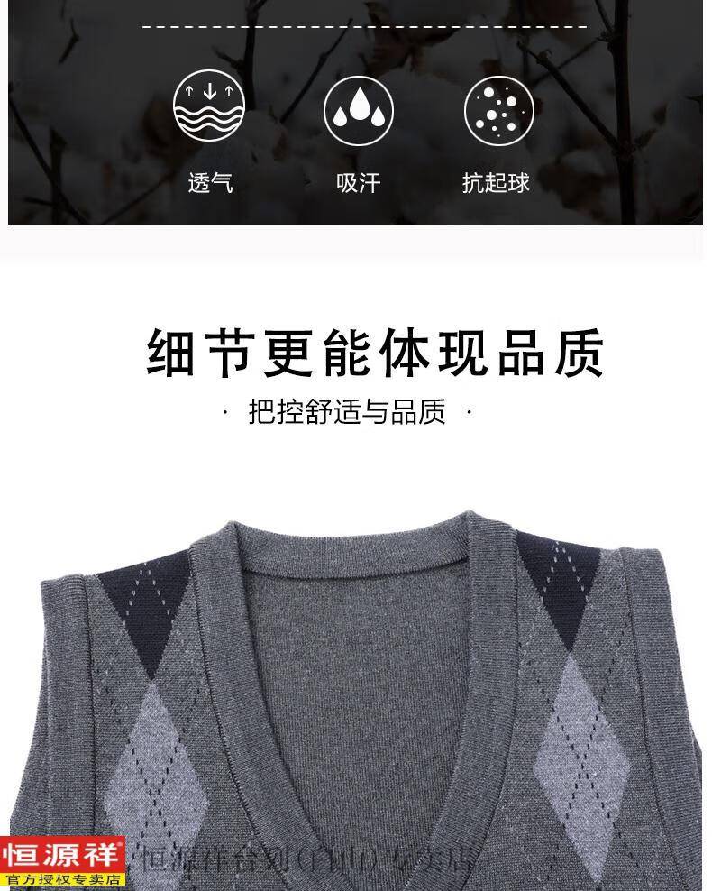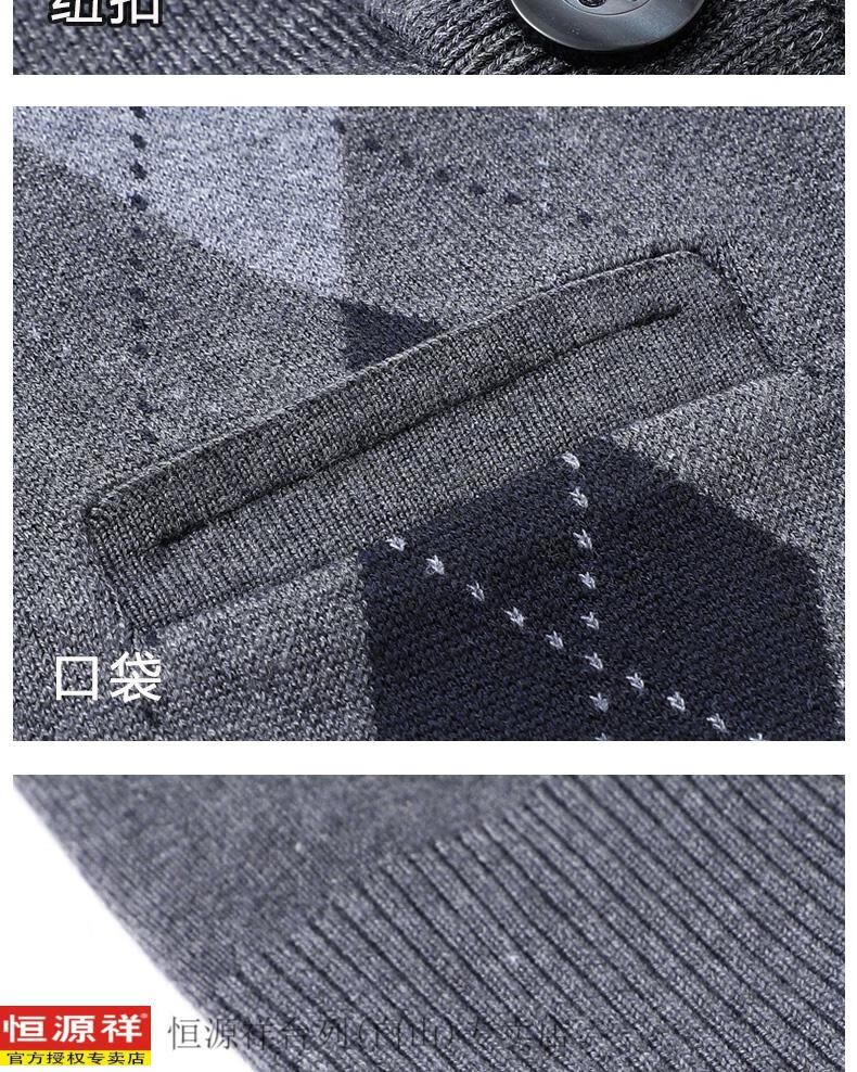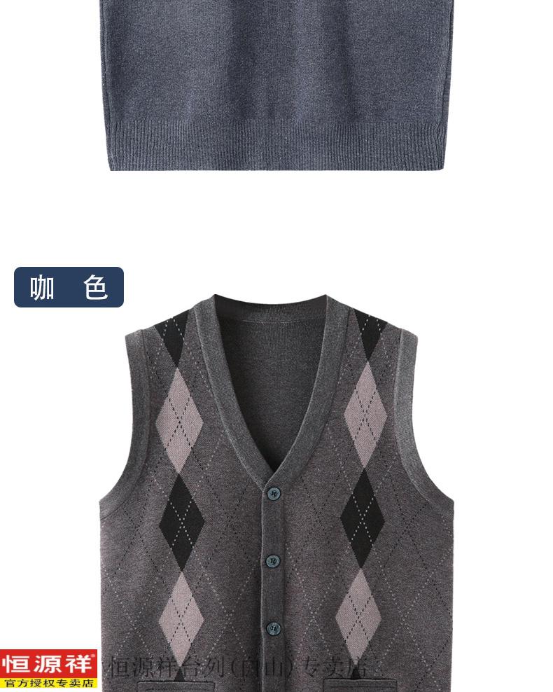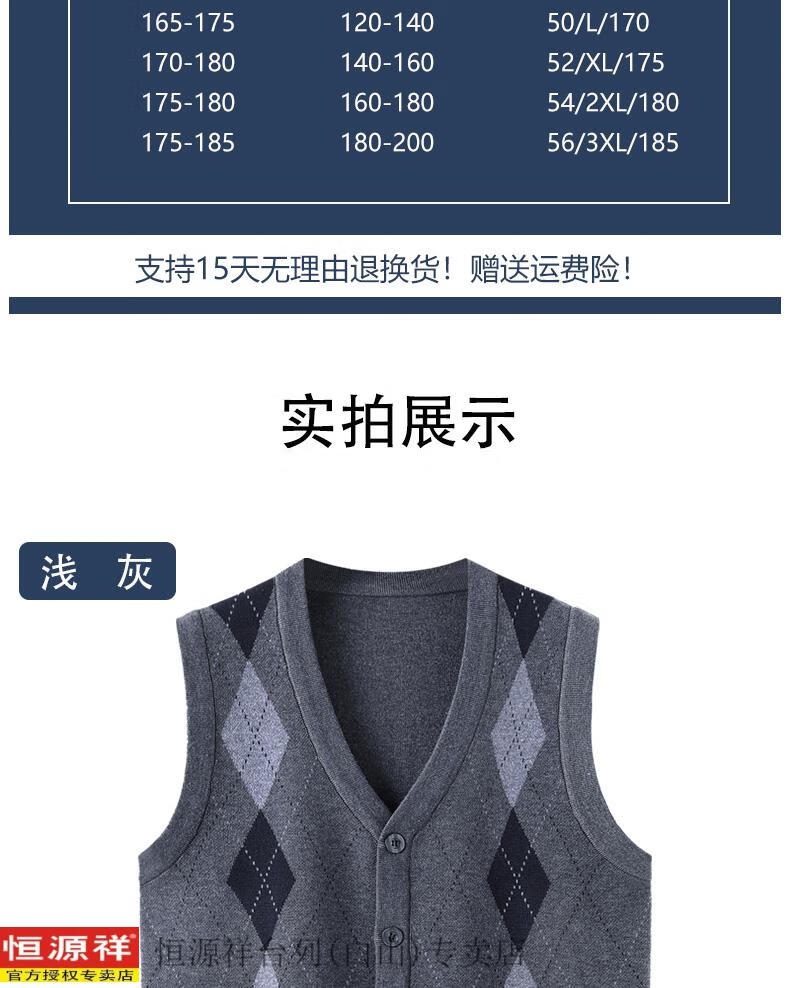 Hengyuanxiang autumn and winter knitted wool vest men's cardigan middle-aged dad vest middle-aged and elderly vest grandpa sweater K-2-A light gray 3XL recommended 160-185Jin Jin equals 0.5 kg