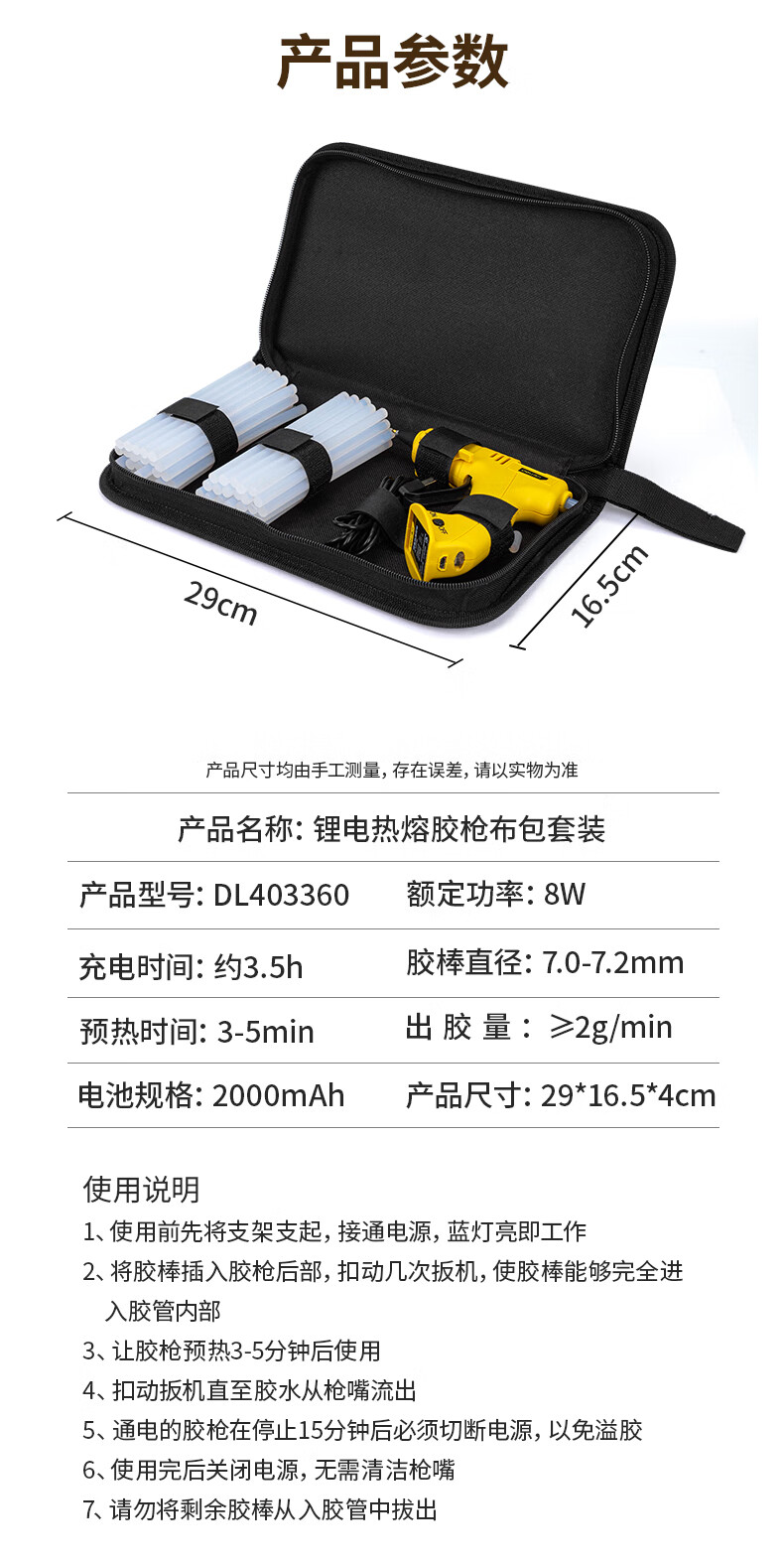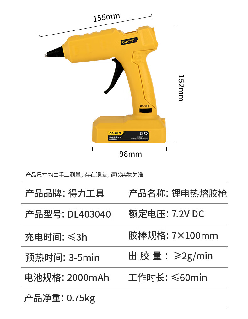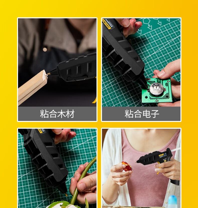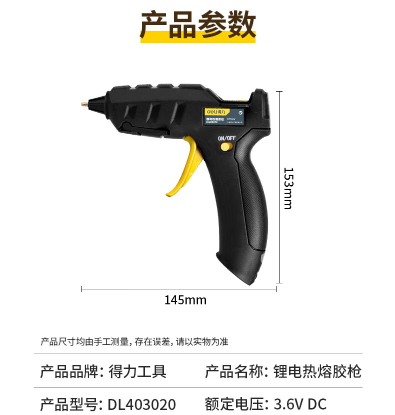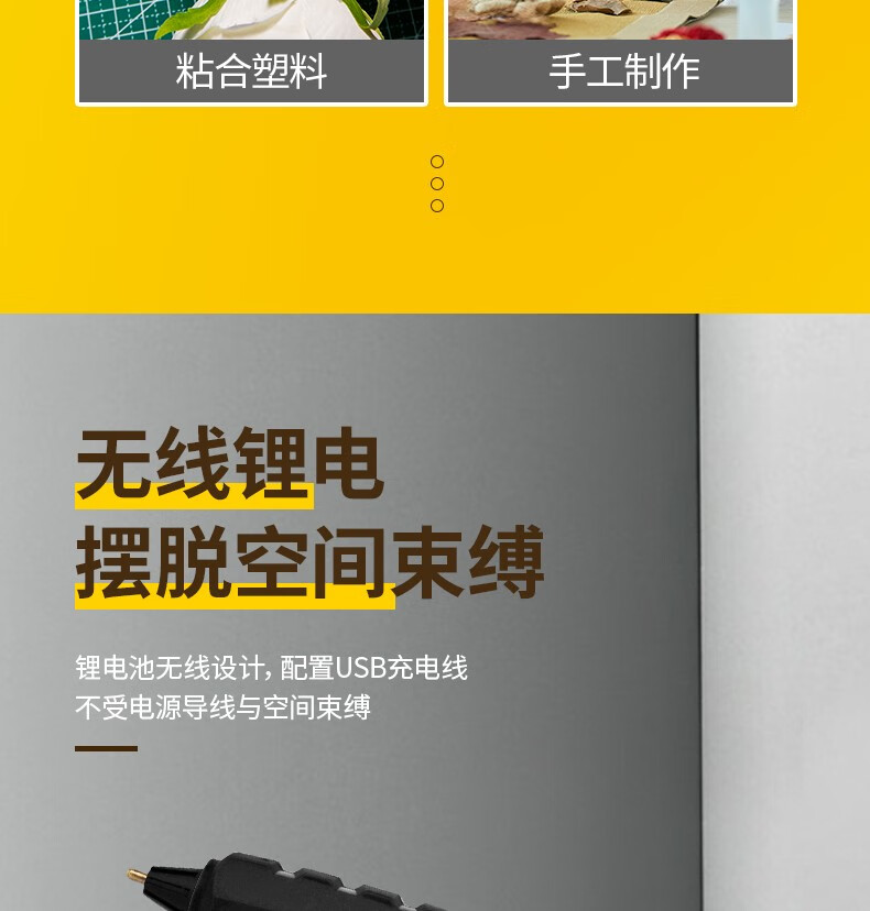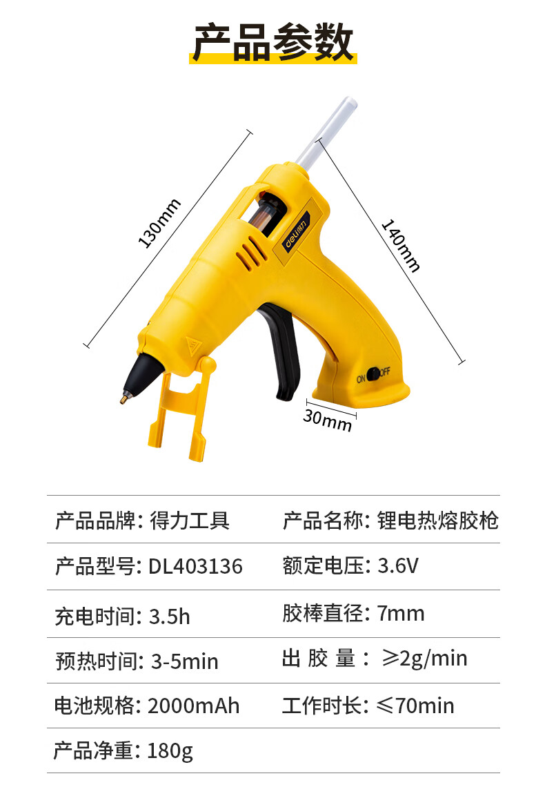 Deli hot melt glue gun lithium battery USB rechargeable wireless household children's handmade DIY handmade hot melt glue gun 3.6V 2000mAh lithium electric hot melt glue gun (yellow)
