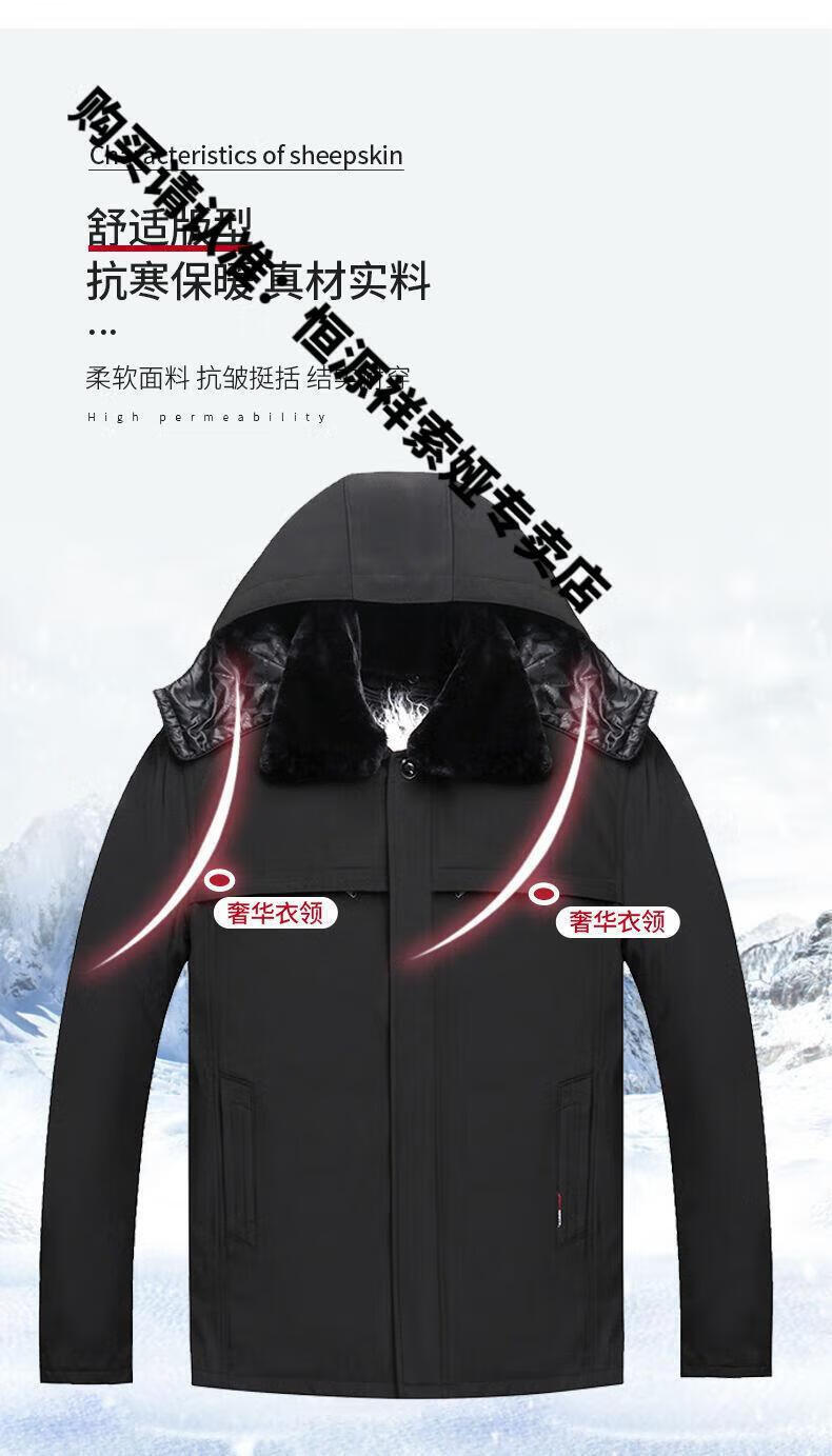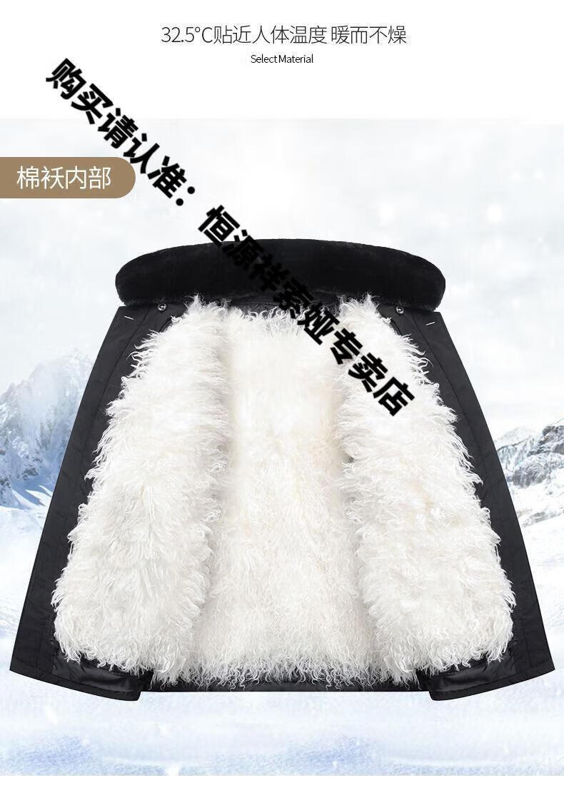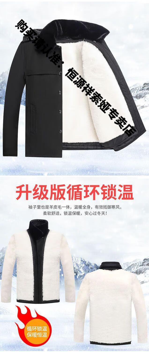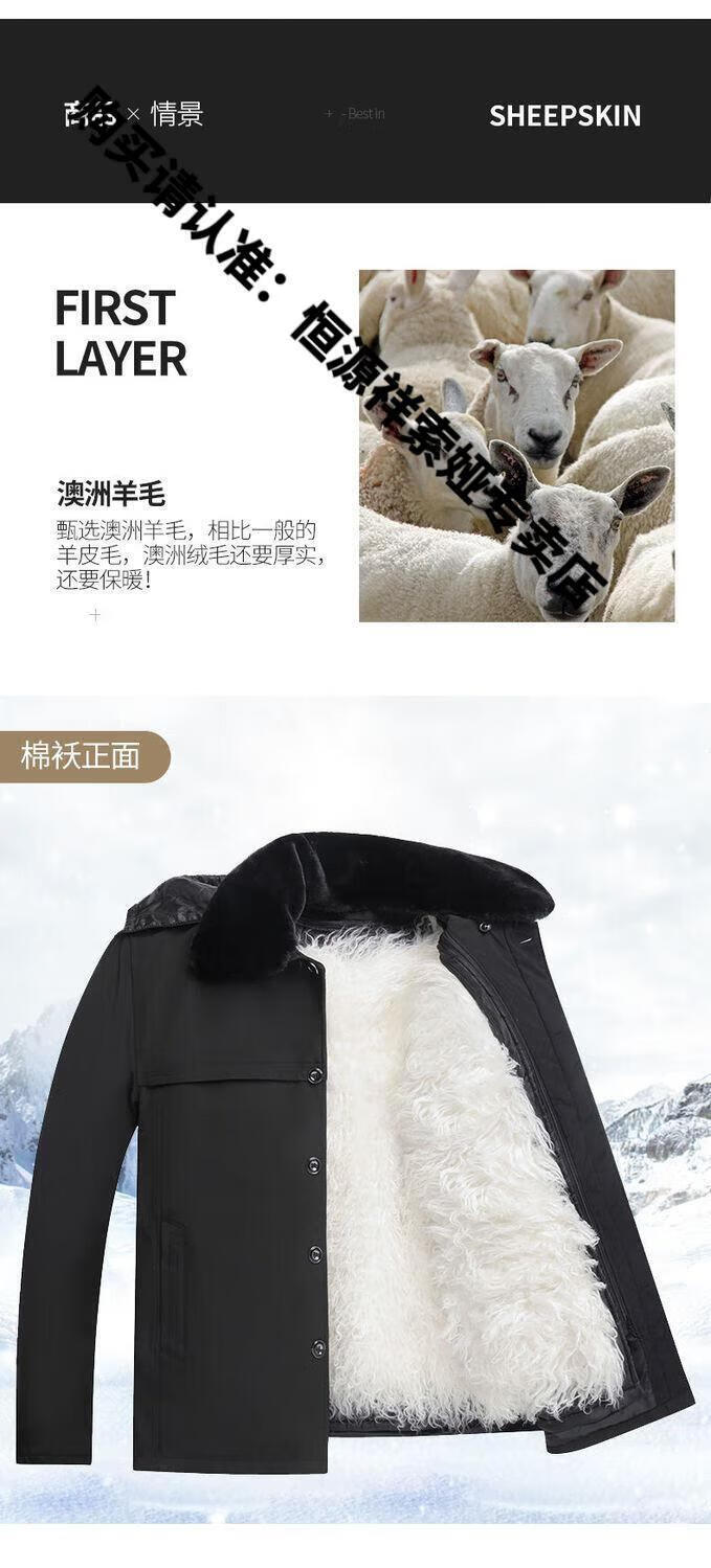 Hengyuanxiang middle-aged and elderly fur integrated wool cotton jacket plus velvet thickened warm cotton jacket for men and fathers sheepskin coat nikon long wool liner wool liner plus cotton sleeves 2XL 100-135Jin Jin equals 0.5kg light luxury high-end cotton clothing