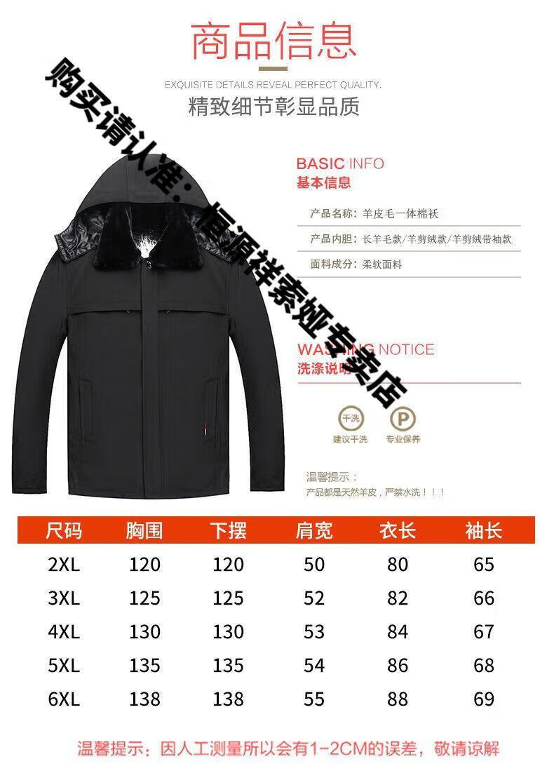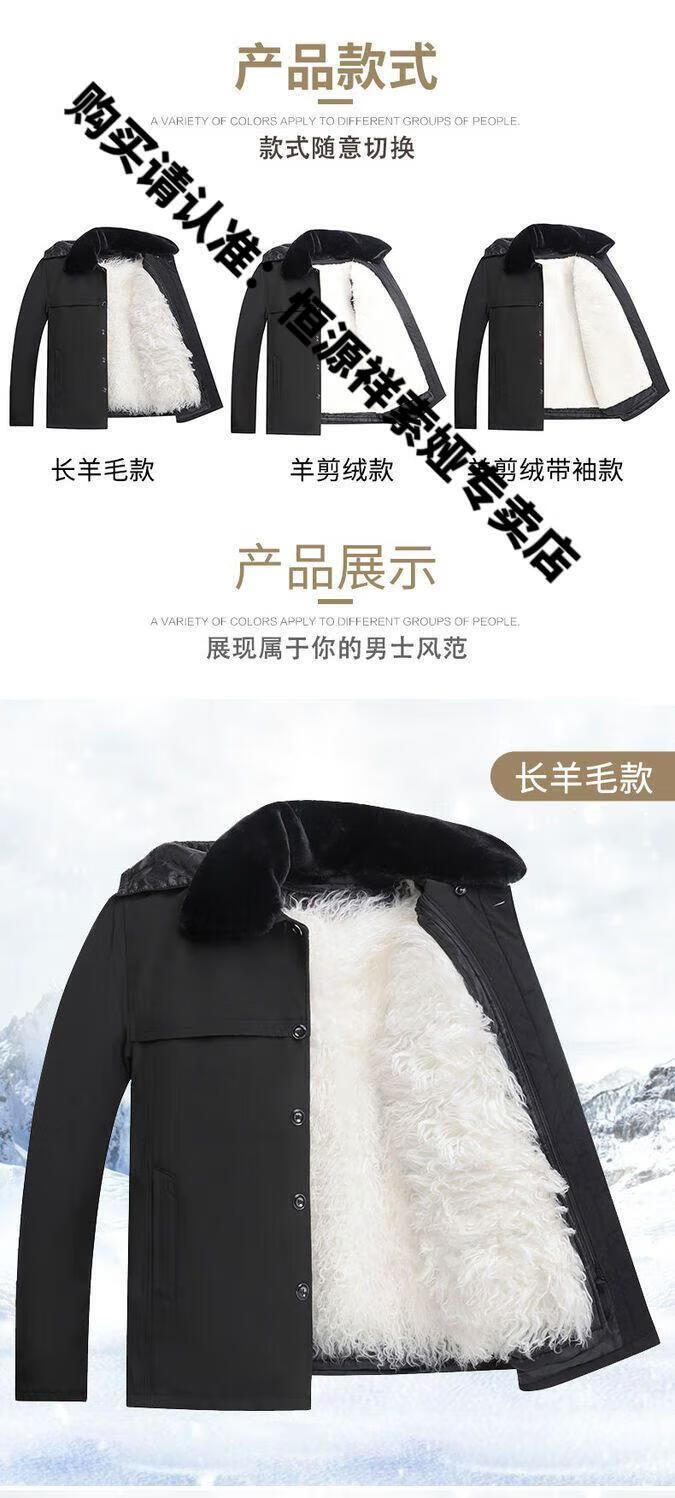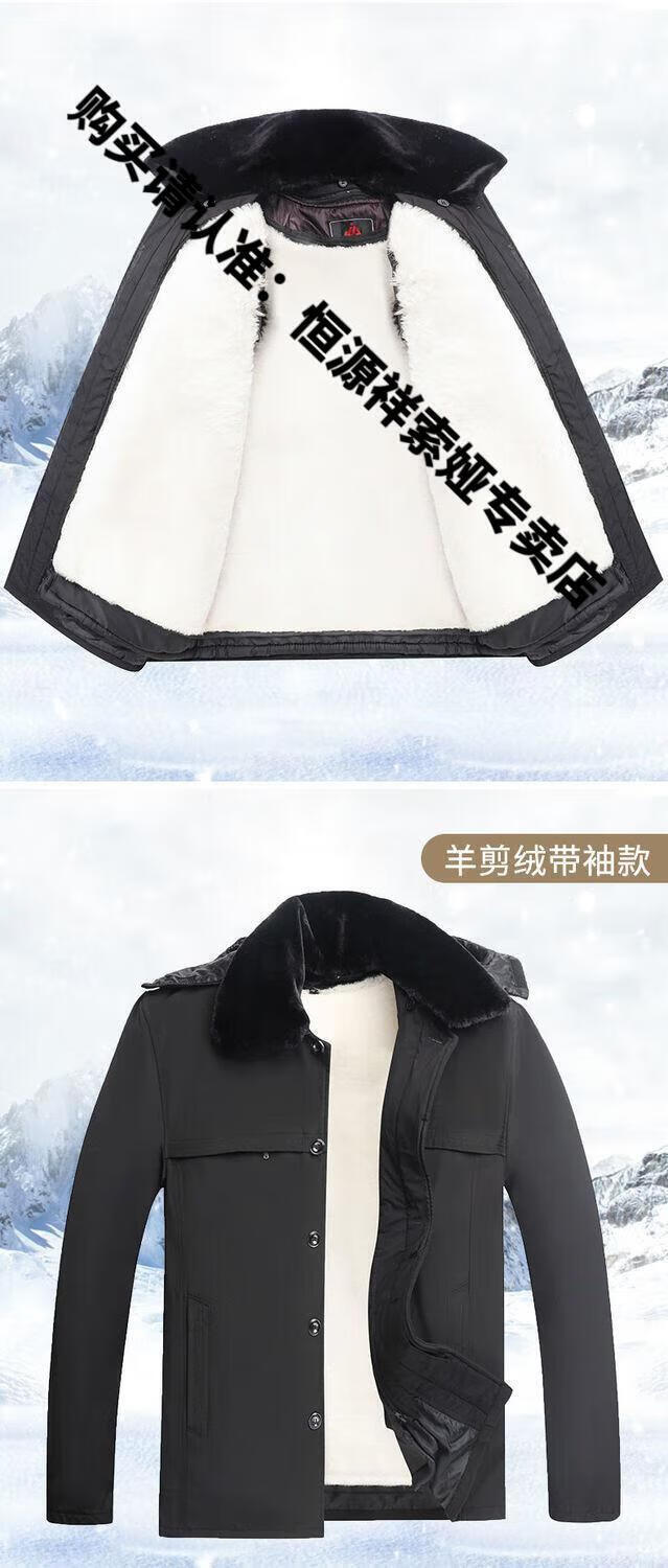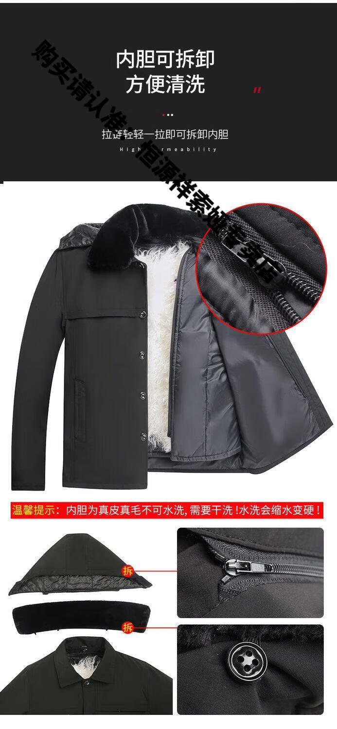 Hengyuanxiang middle-aged and elderly fur integrated wool cotton jacket plus velvet thickened warm cotton jacket for men and fathers sheepskin coat nikon long wool liner wool liner plus cotton sleeves 2XL 100-135Jin Jin equals 0.5kg light luxury high-end cotton clothing