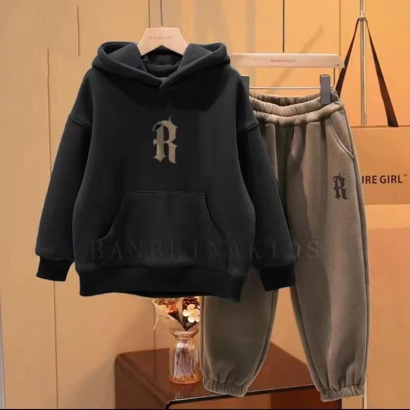 Disney (Disney) Boys Winter Wear Suit 2025 New Medium and Large Children's Autumn and Winter Western Style Children's Boys' Velvet Thickened Sweater Two-piece Set Dark Gray Velvet Two-piece Set 150