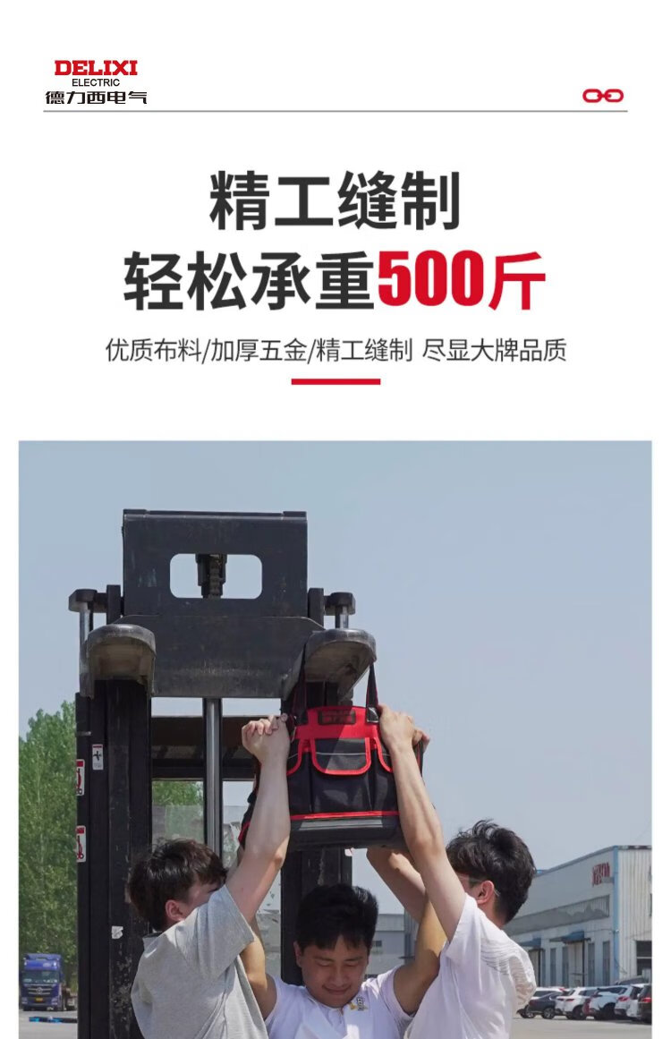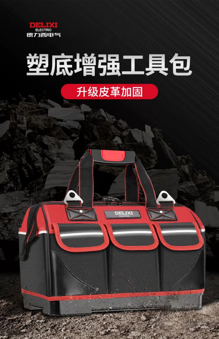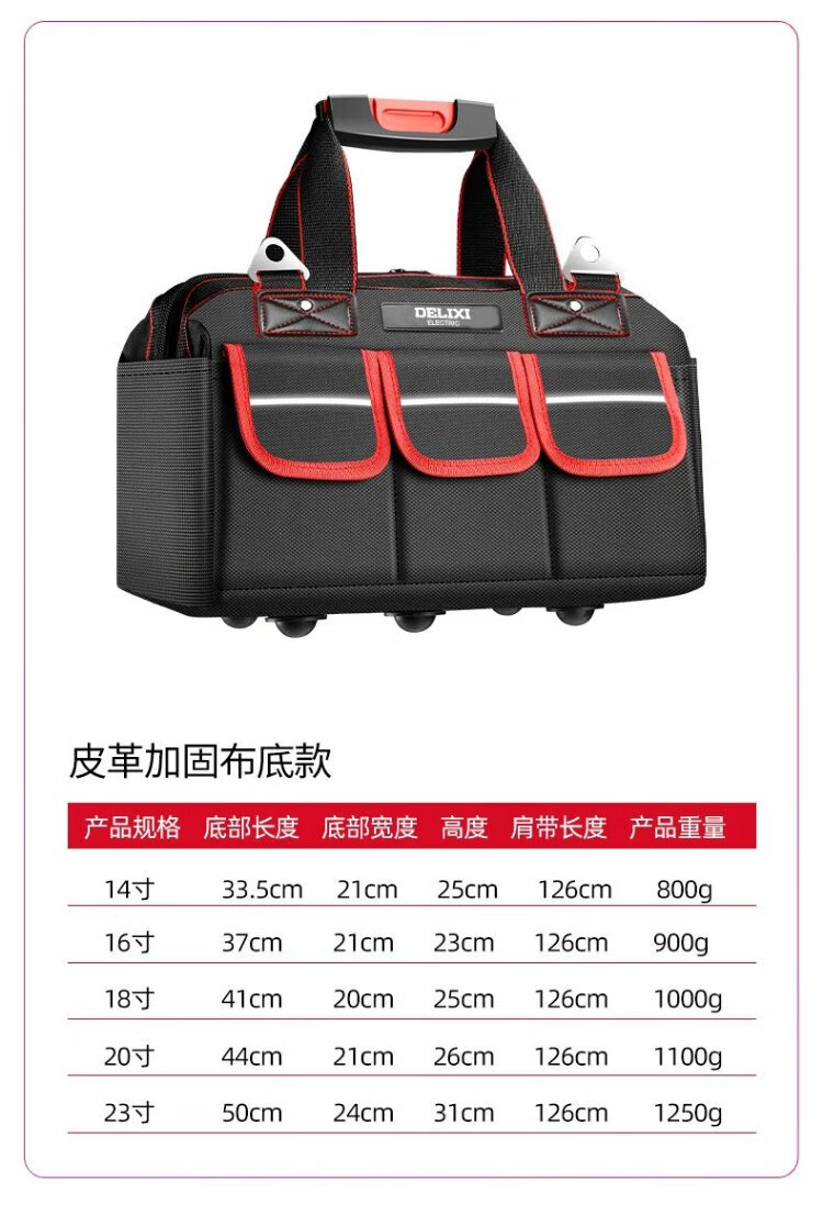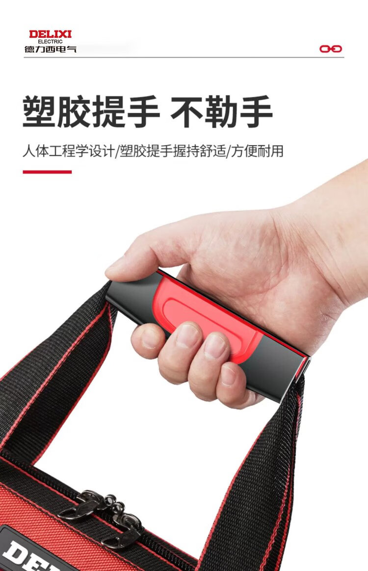 Delixi tool bag is strong and durable, multi-functional repair canvas tool bag for electricians, thickened large storage bag, 18 inches, classic double-layer thickened fabric