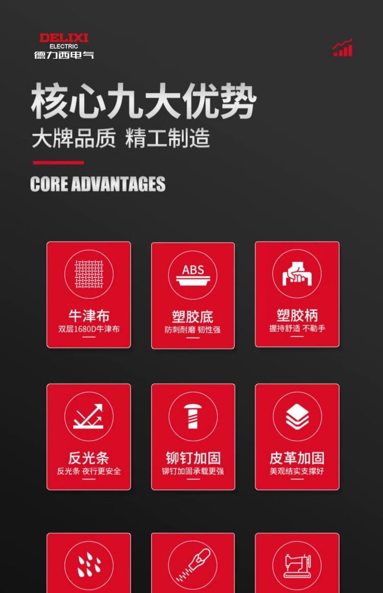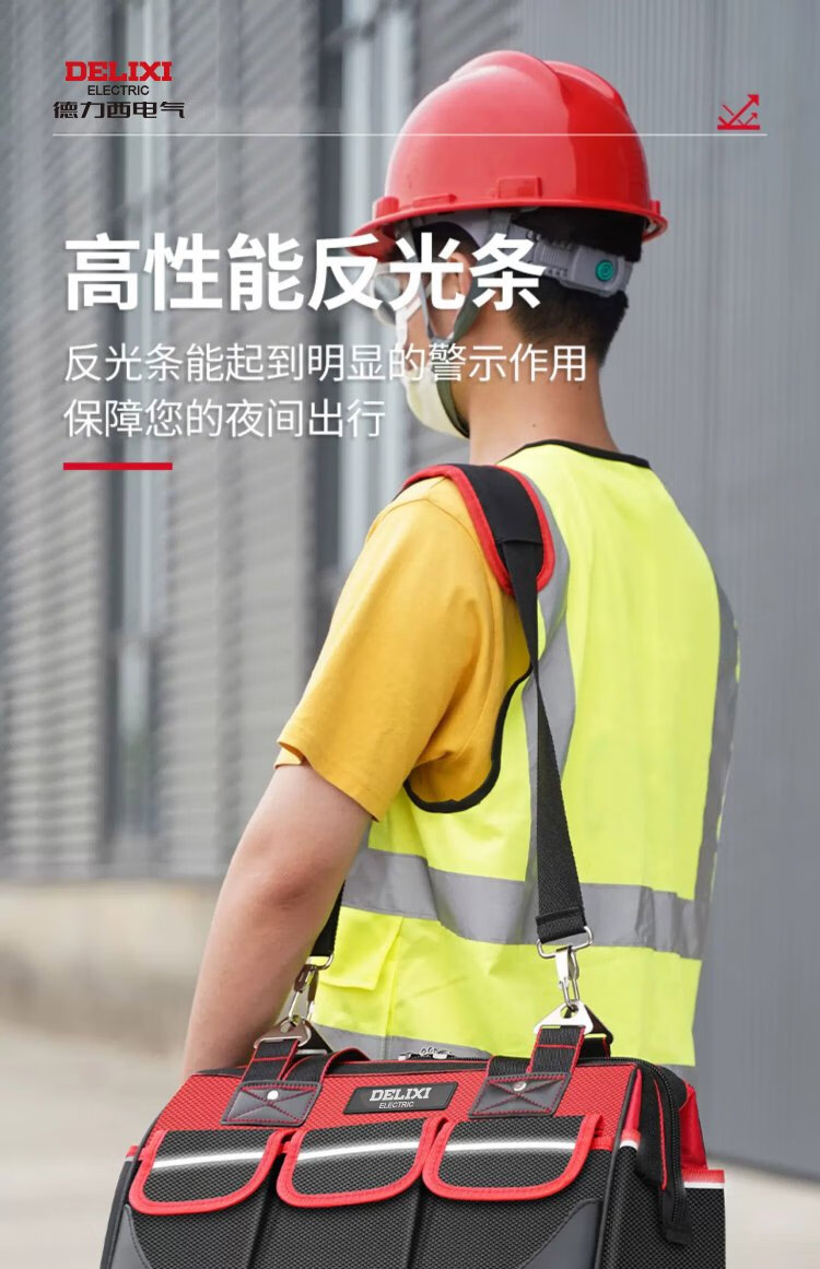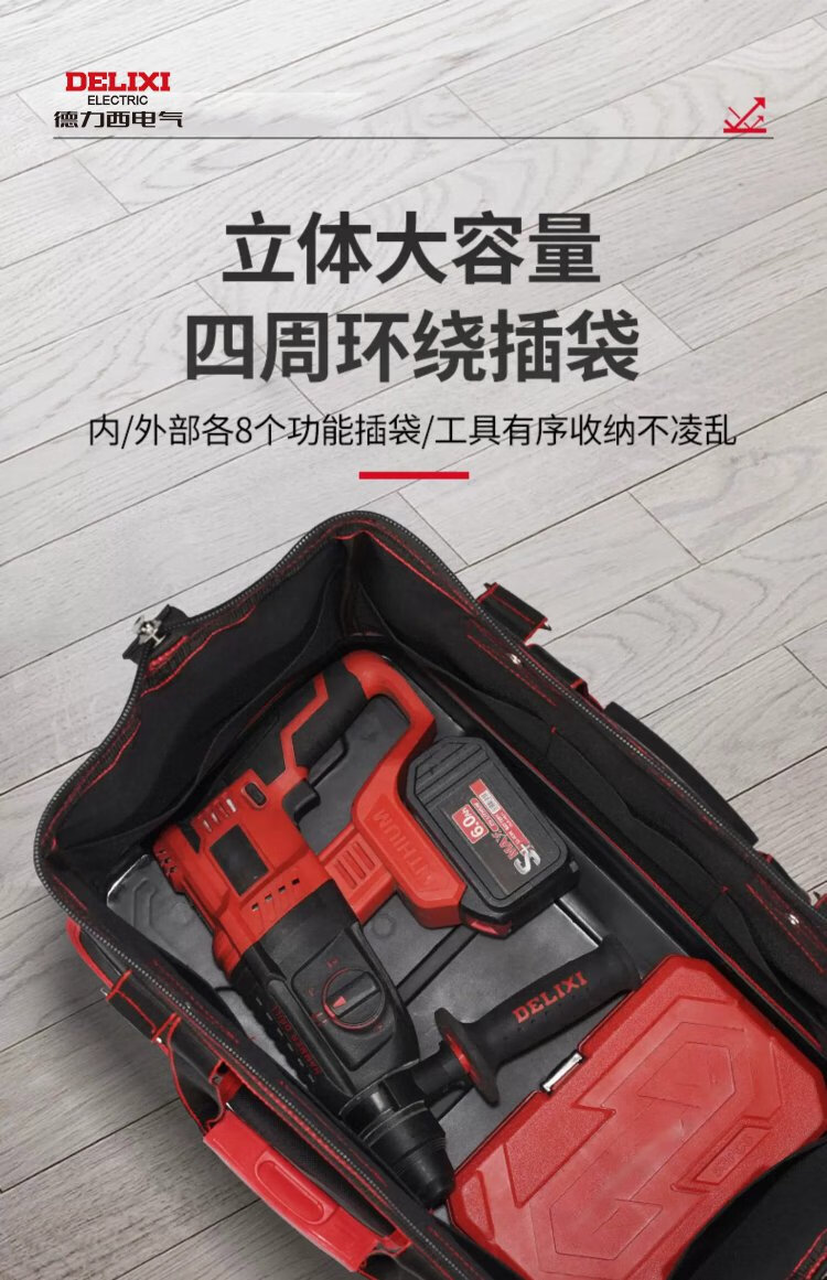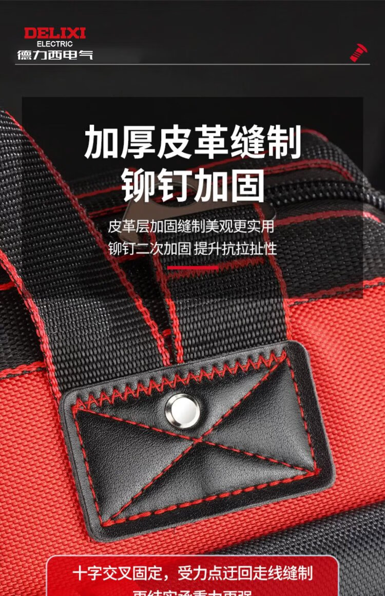 Delixi tool bag is strong and durable, multi-functional repair canvas tool bag for electricians, thickened large storage bag, 18 inches, classic double-layer thickened fabric