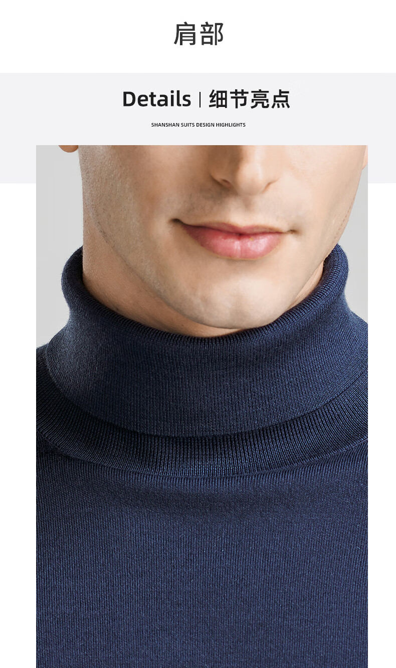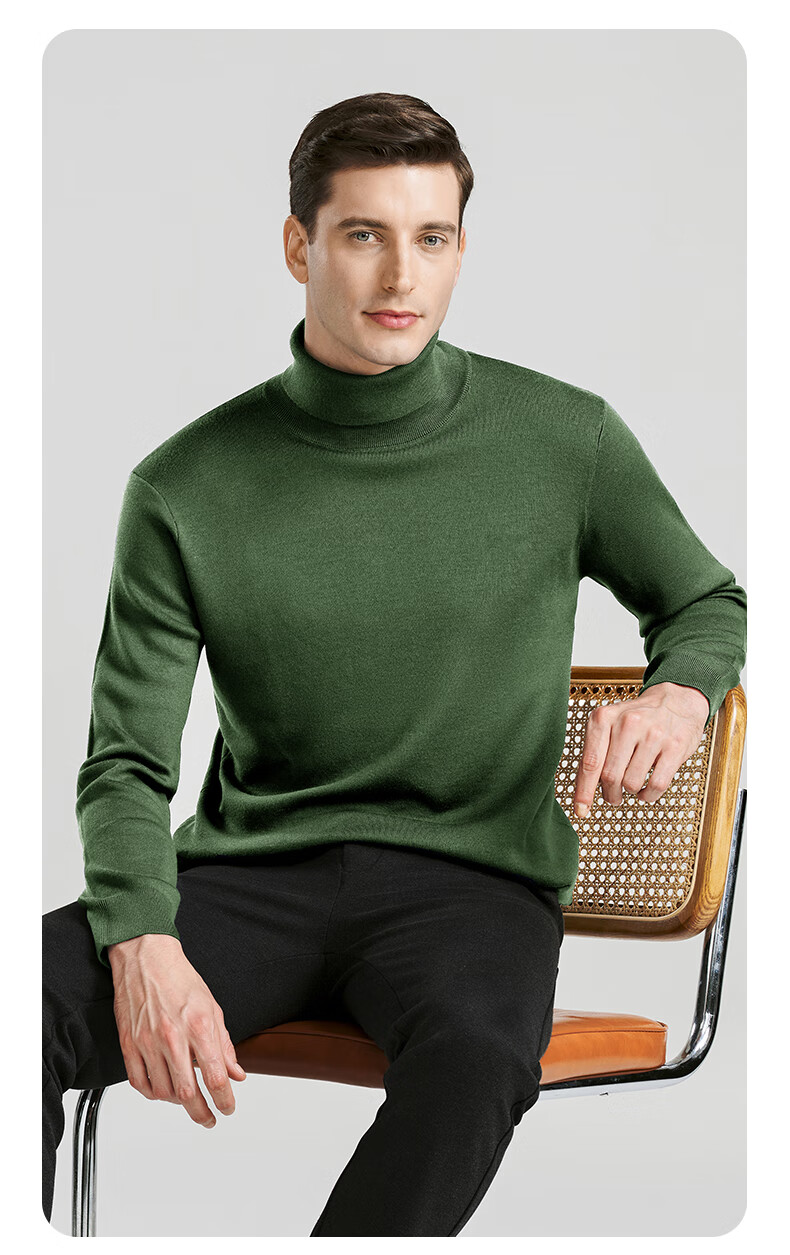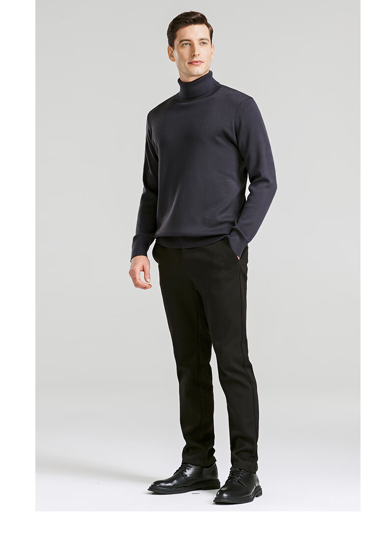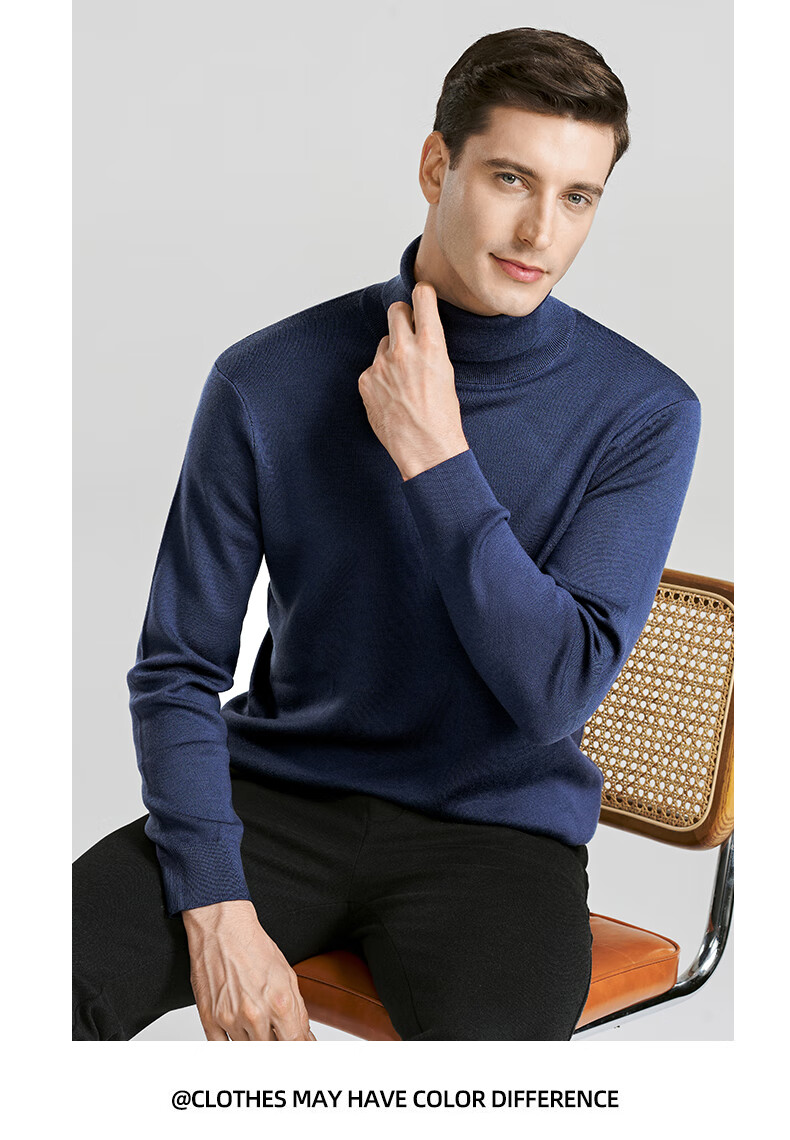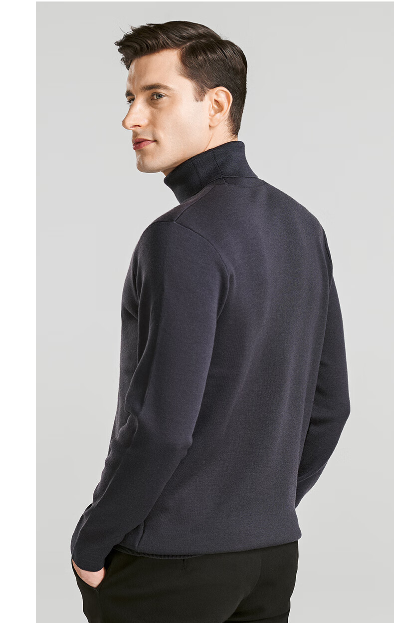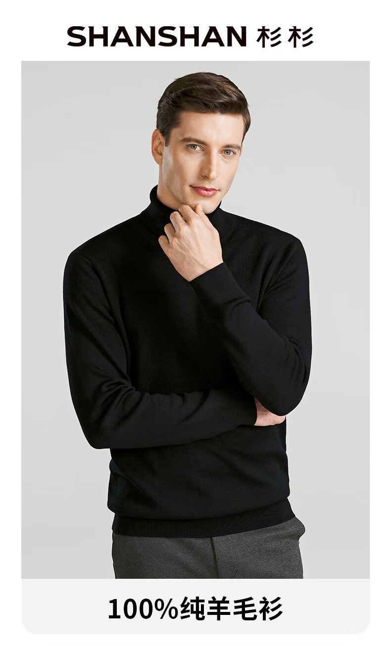 SHANSHAN Shanshan cardigan men's autumn and winter 100% pure sheep wool sweater for young and middle-aged men thickened warm turtleneck sweater black L /175