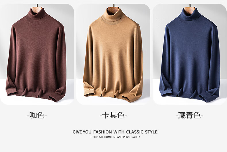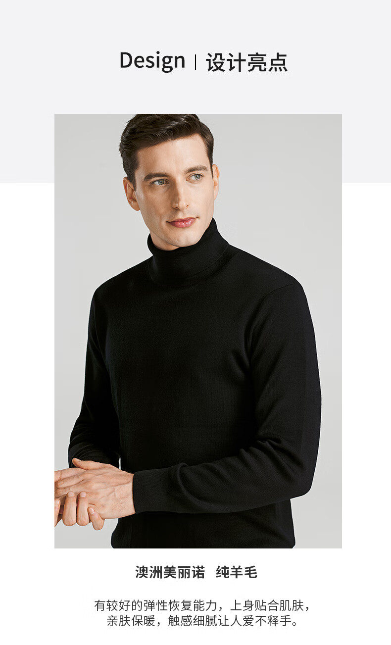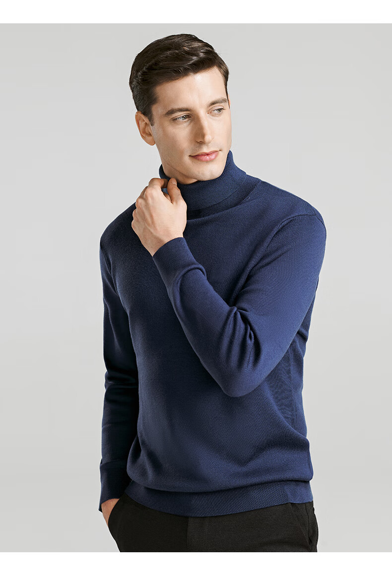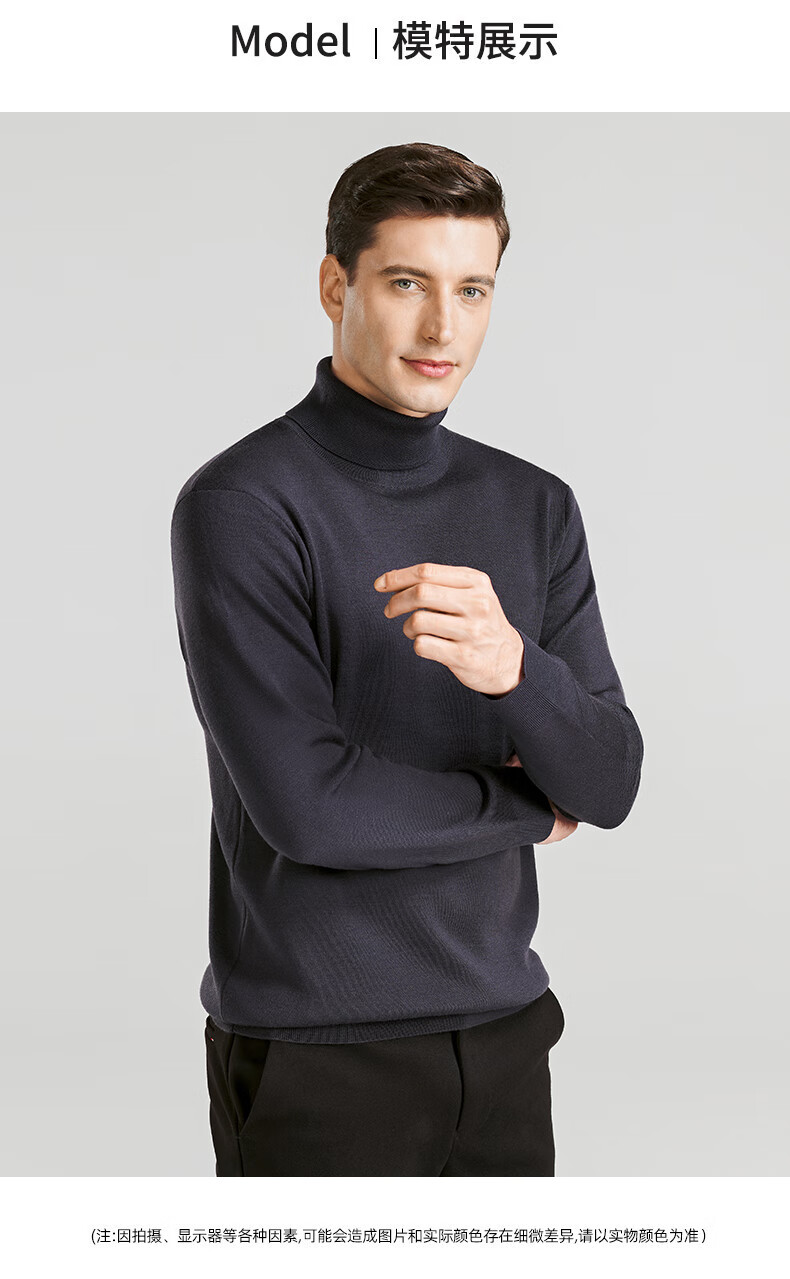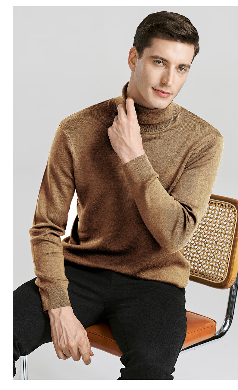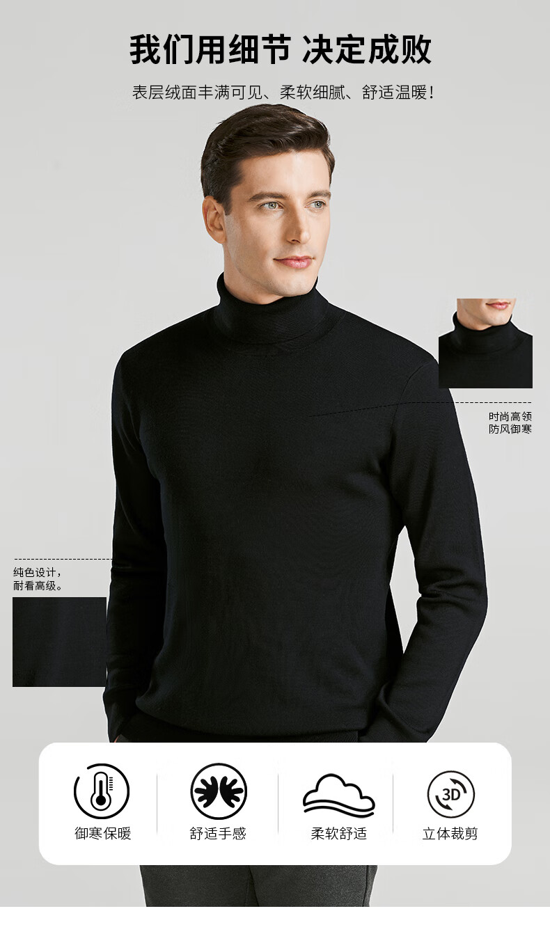 SHANSHAN Shanshan cardigan men's autumn and winter 100% pure sheep wool sweater for young and middle-aged men thickened warm turtleneck sweater black L /175