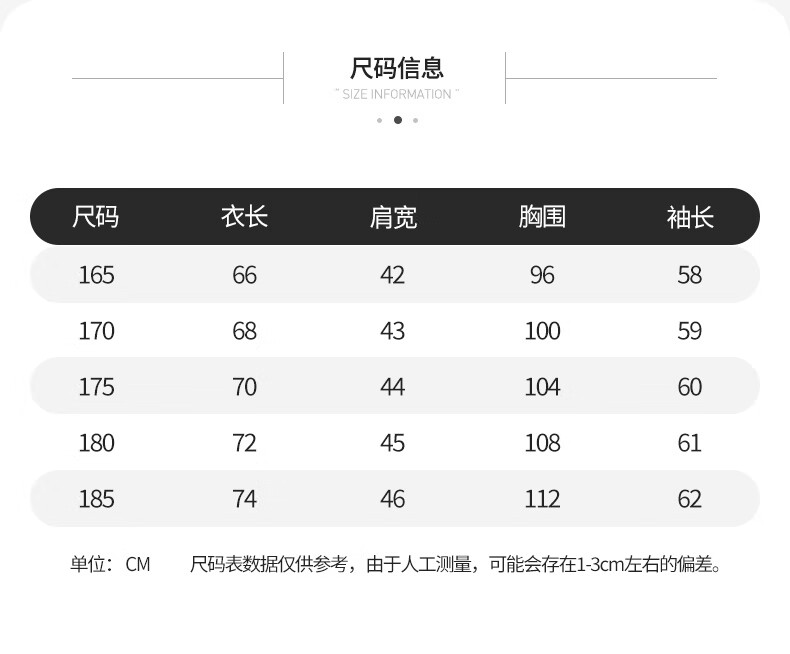 China (cm) 165 / 88-90 170 / 96-98 175 / 108-110 180 / 118-122 185 / 126-130