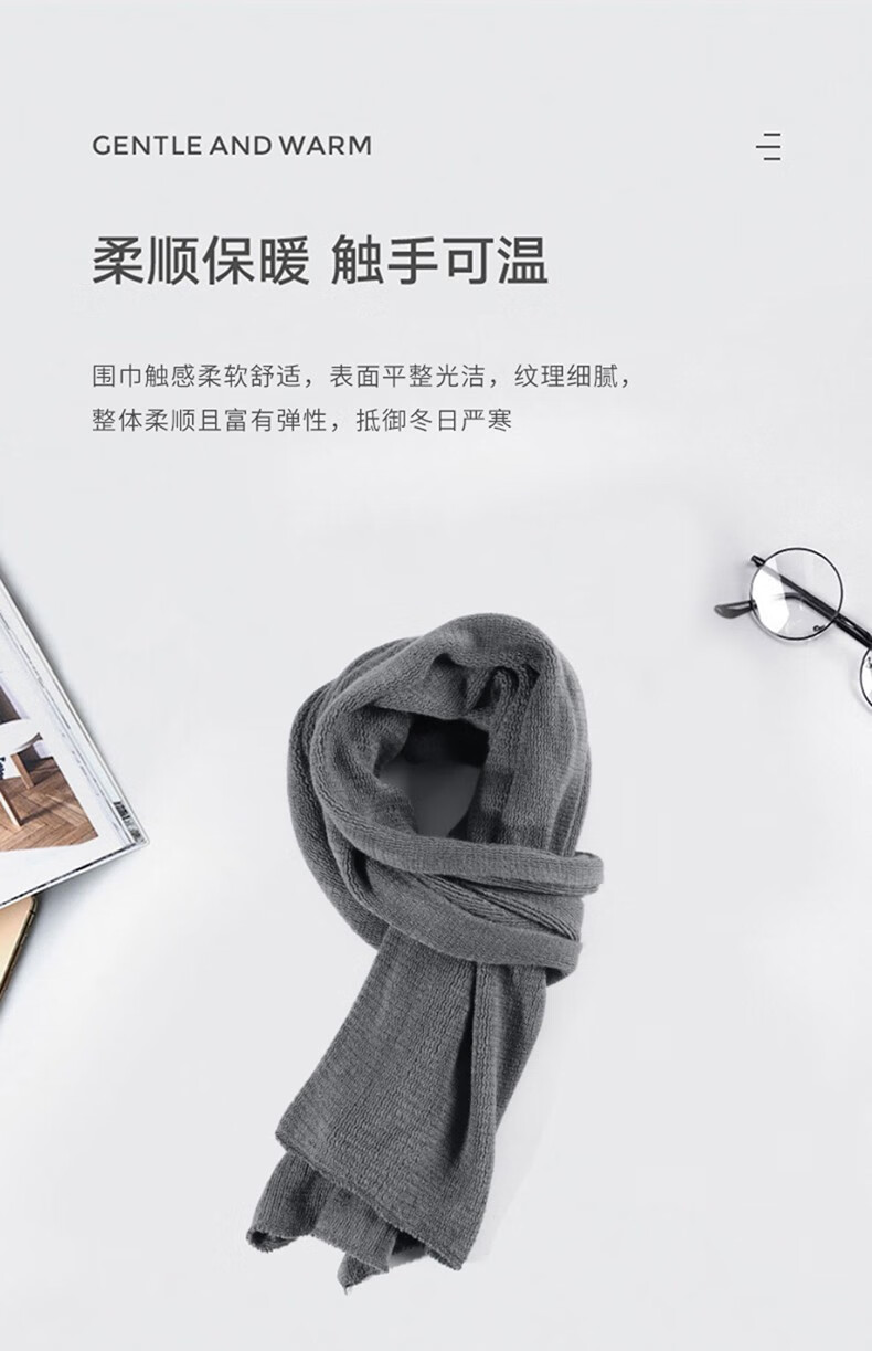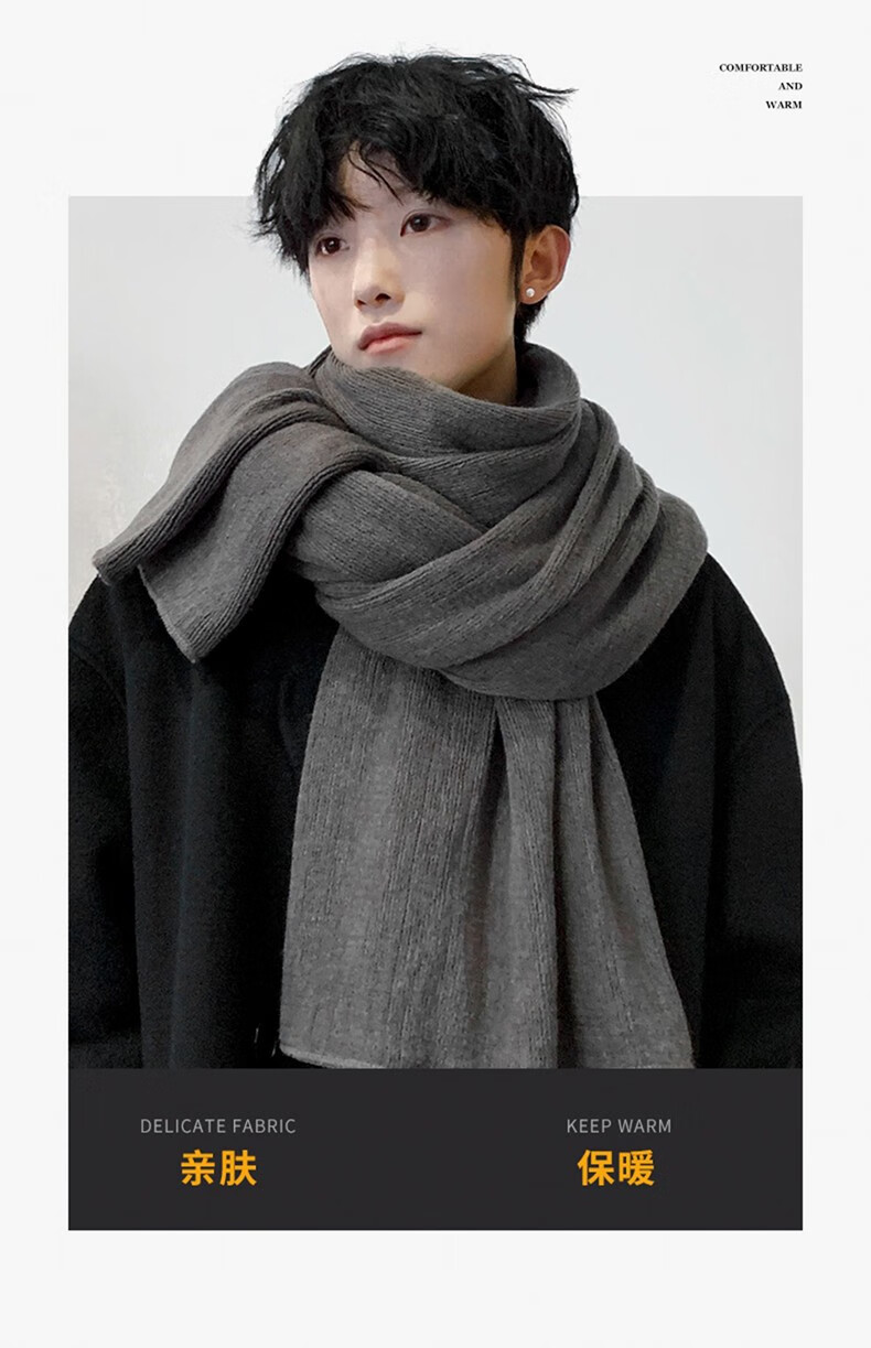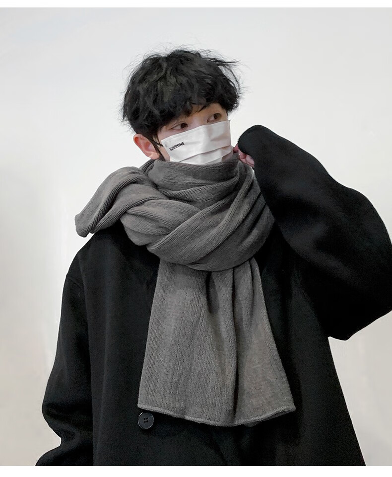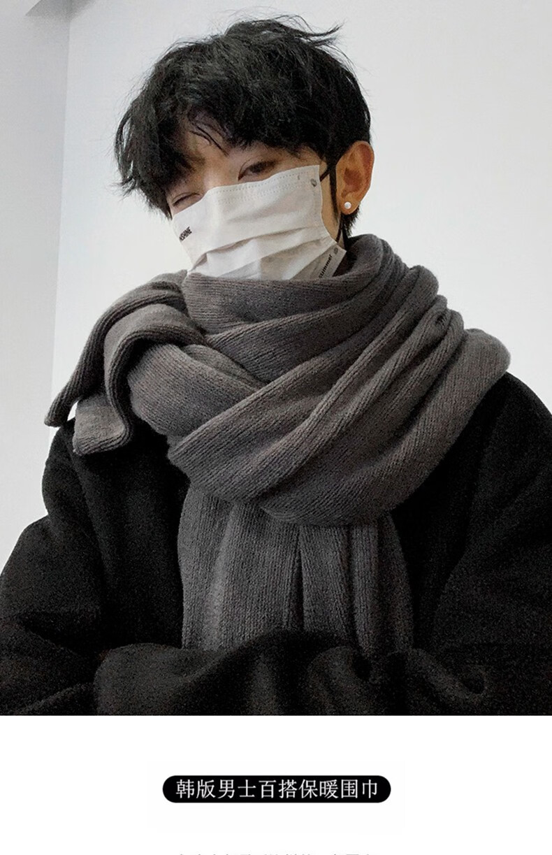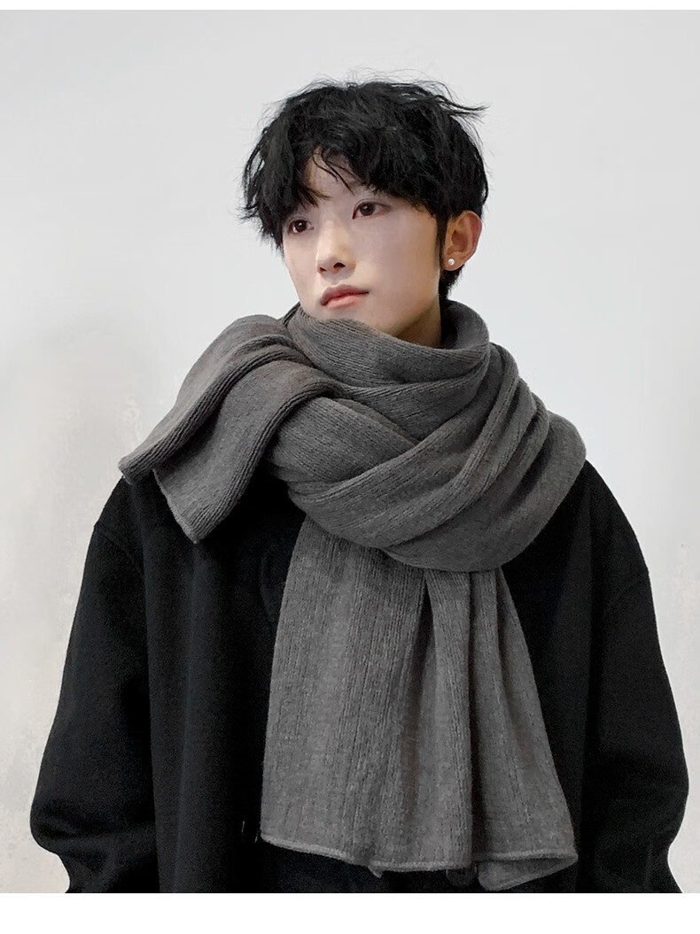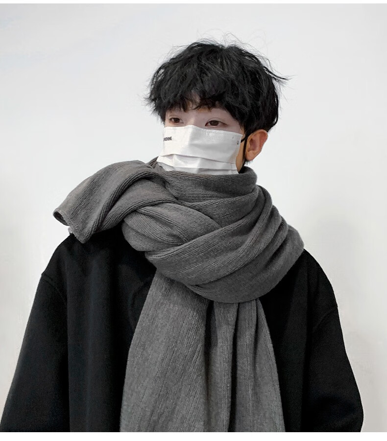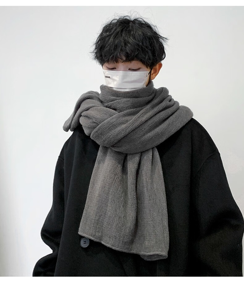 Memaru scarf men's autumn and winter Korean version solid color knitted wool thickened warm student couple scarf men's versatile shawl trend dark gray
