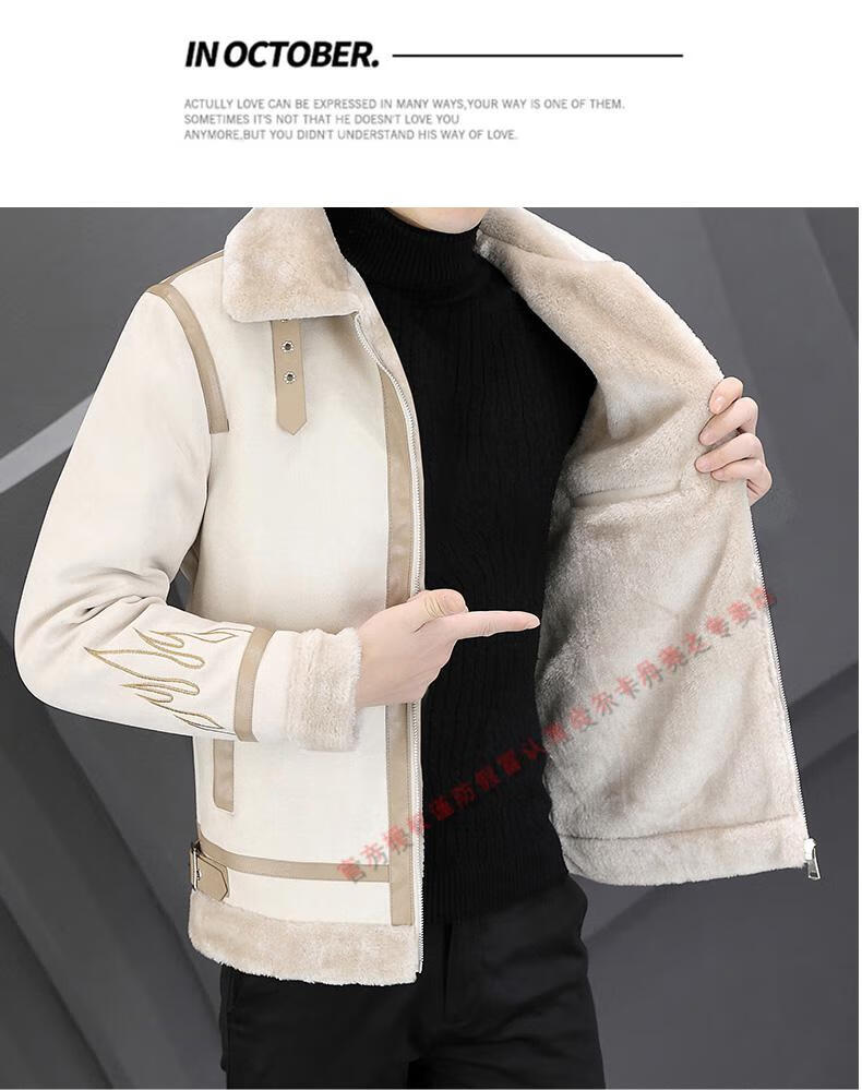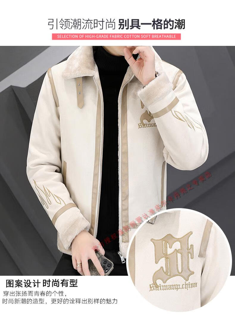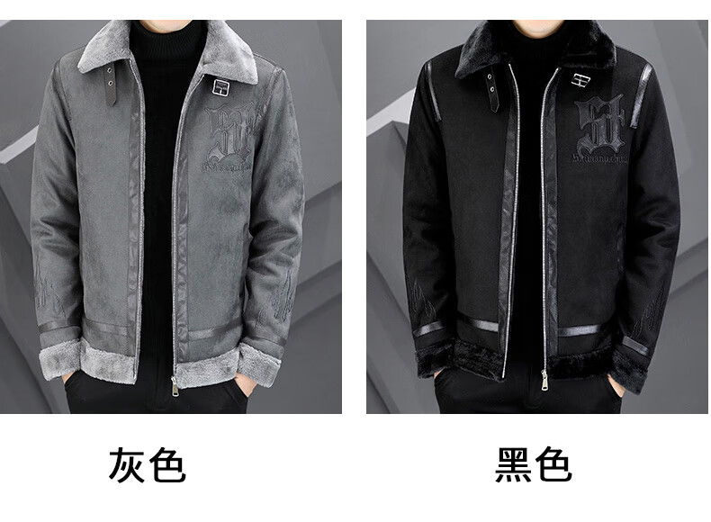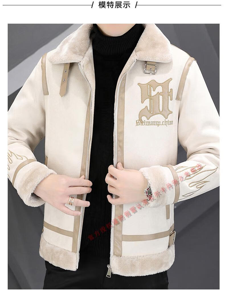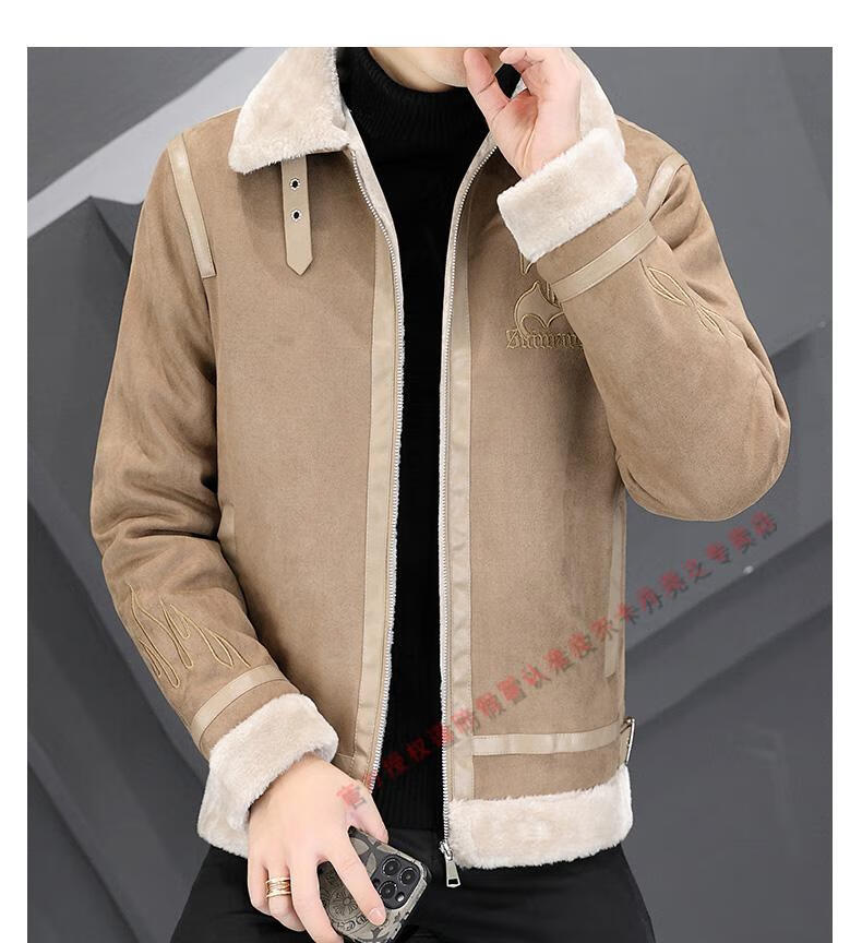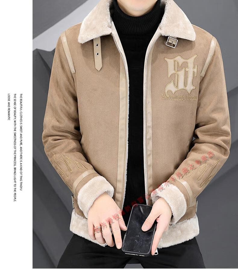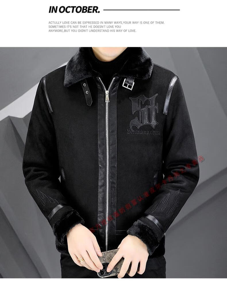 Pierre Cardin woolen jacket men's jacket 2025 winter new velvet thickened short youth fur one-piece men's jacket black 3XL