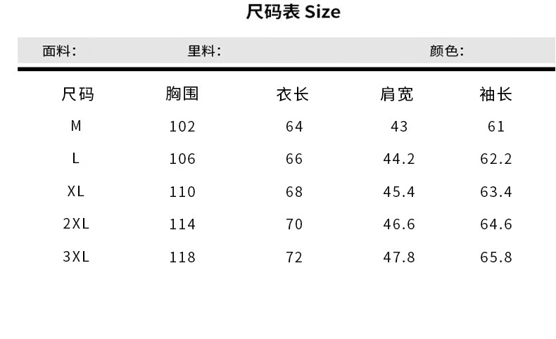 China (cm) 165 / 88-90 170 / 96-98 175 / 108-110 180 / 118-122 185 / 126-130