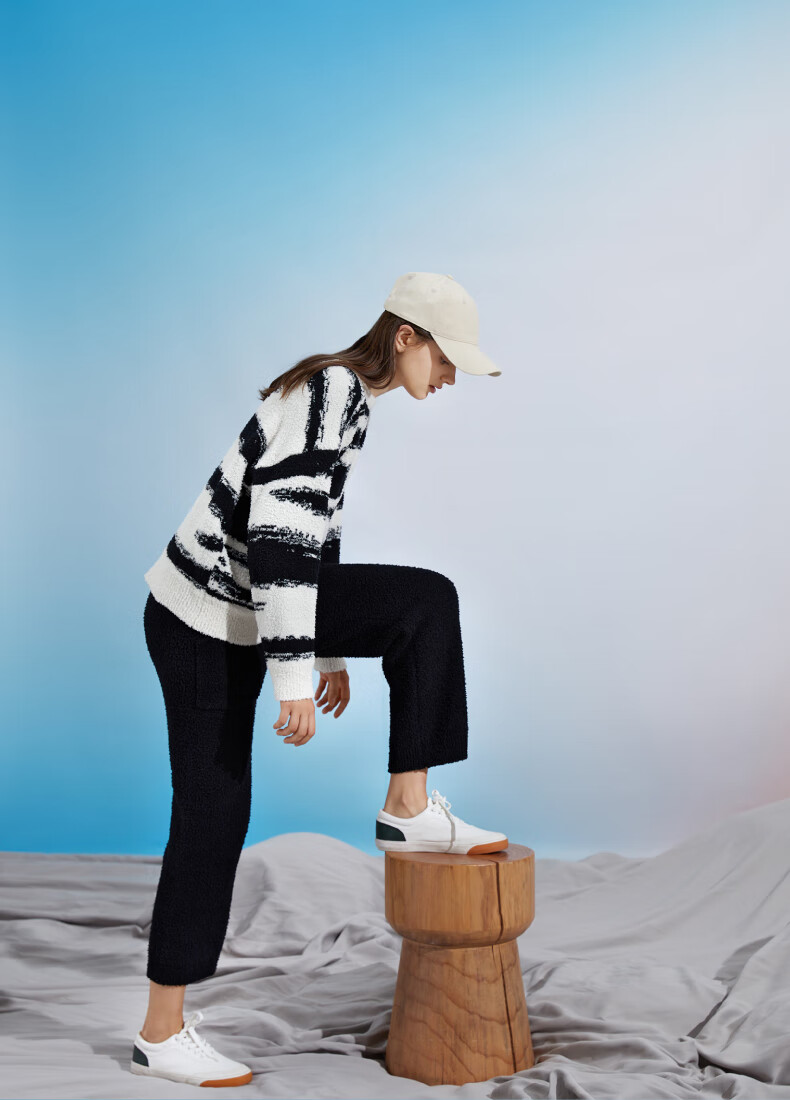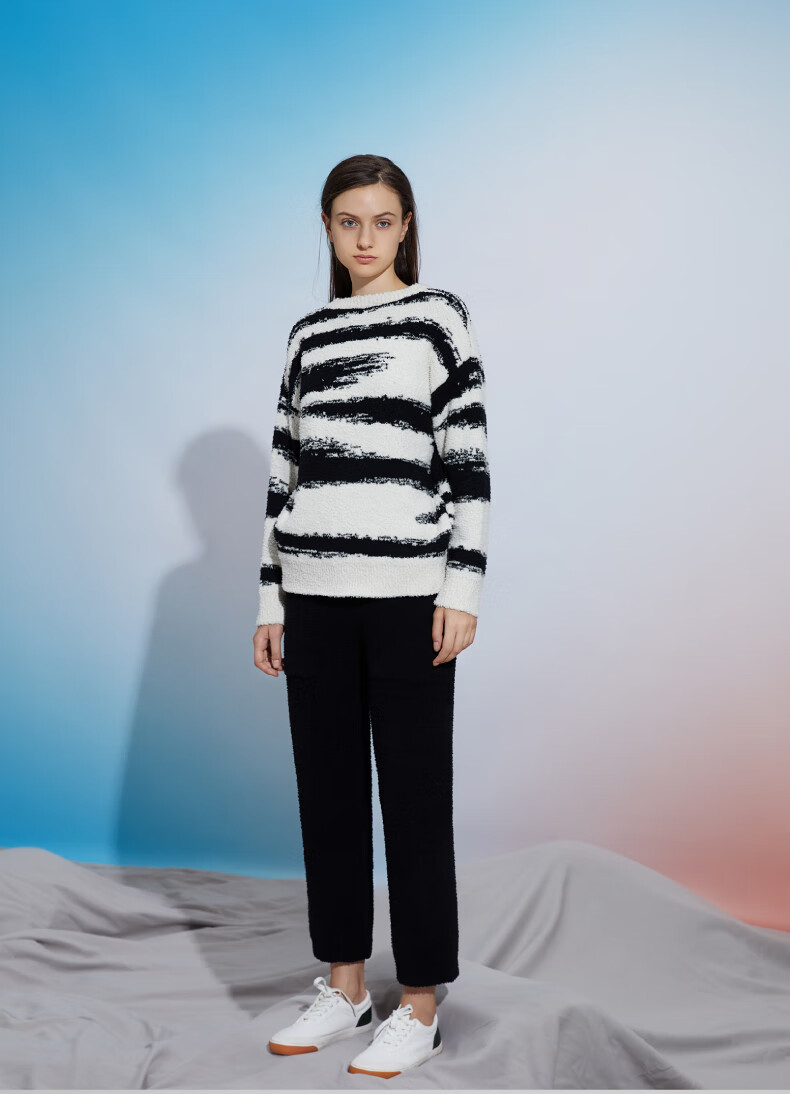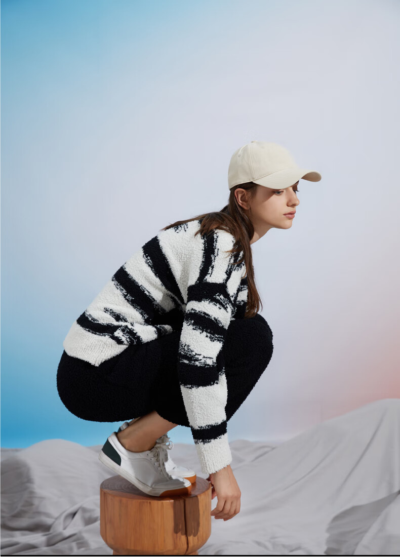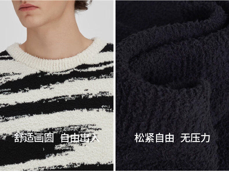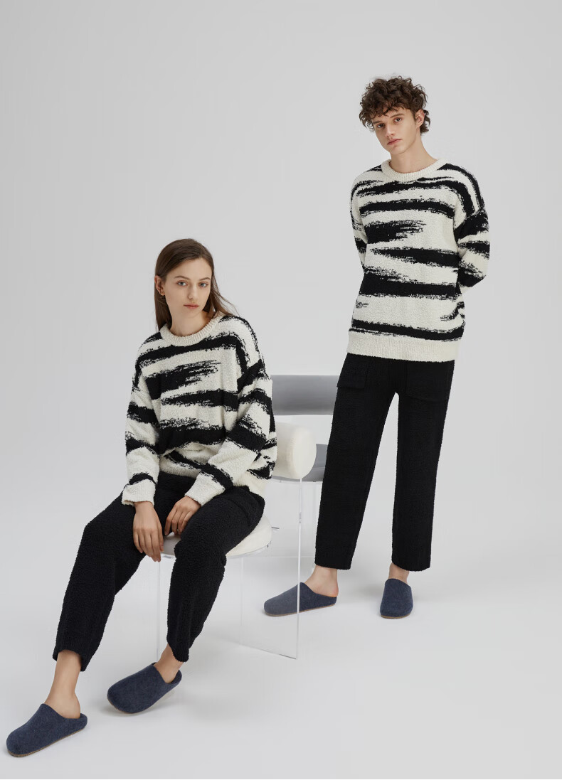 Chundu Soft Half Velvet Couple Pajamas Women's Winter Thickened Coral Velvet Long Sleeve Home Clothes Men's Winter Suit Can Be Weared Outside Black and White Stripes/Black (Male) M (Suitable for M-L sizes)