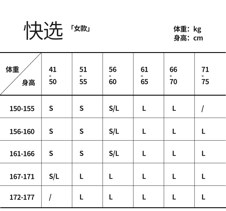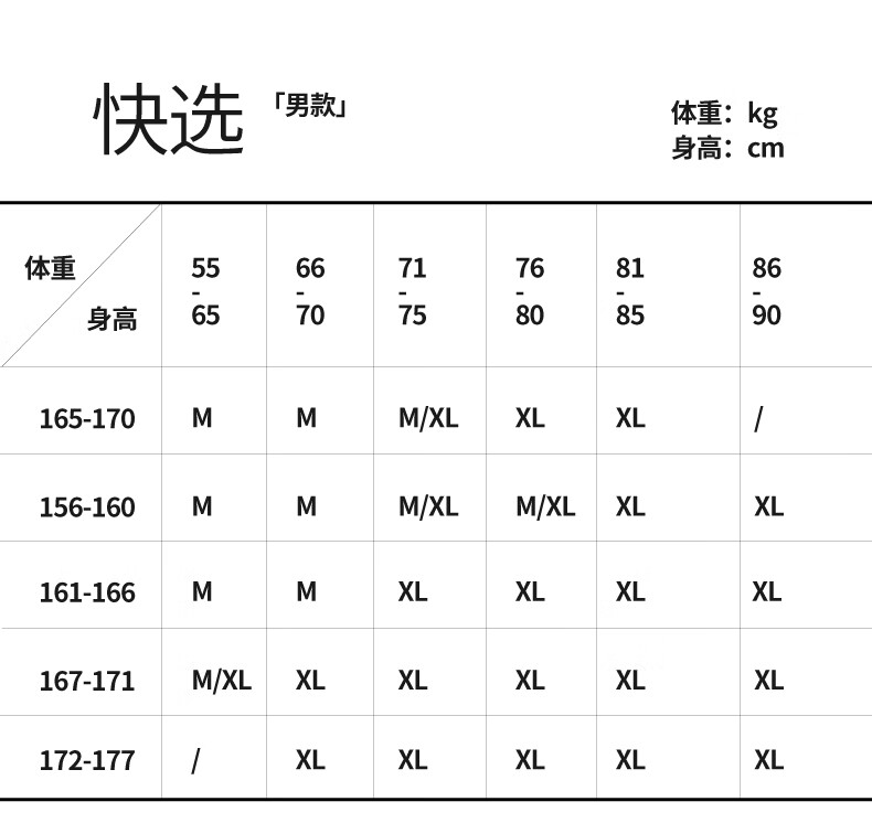 China (cm) 160-165/84-86 165-170 / 88-90 167-172 / 92-96 168-173 / 98-102 170-176 / 106-110