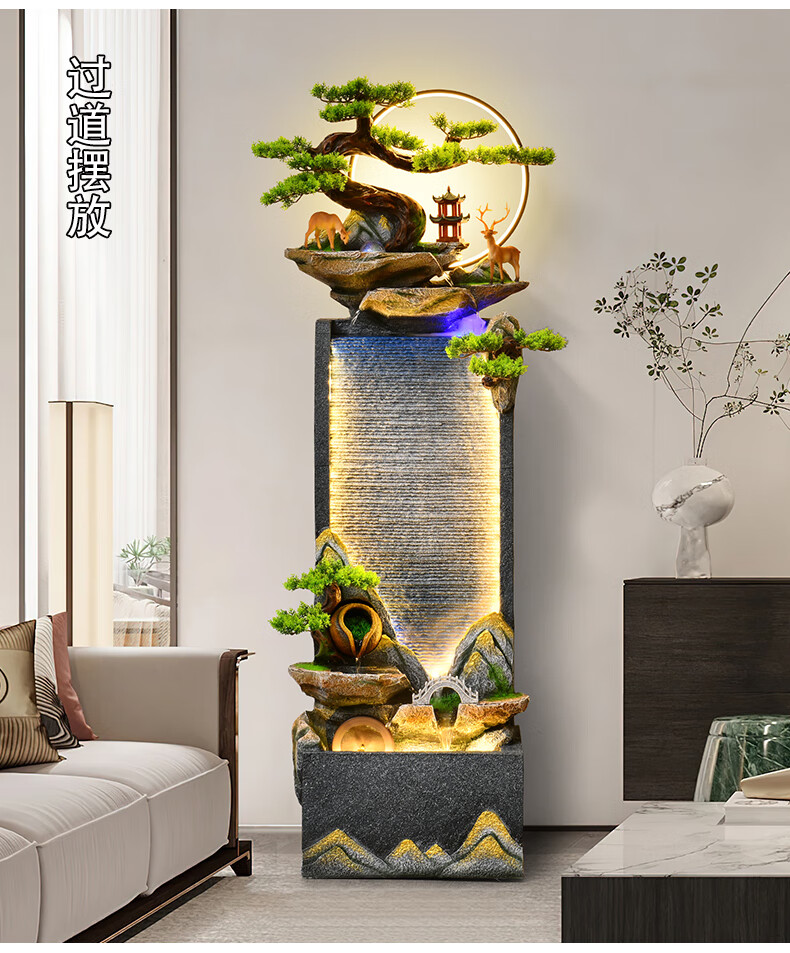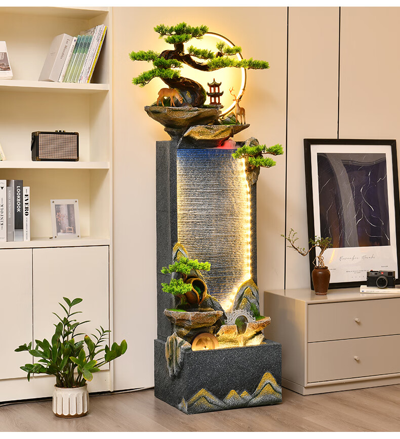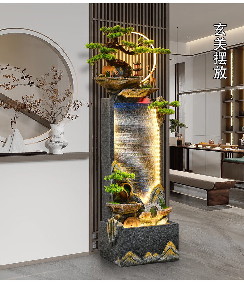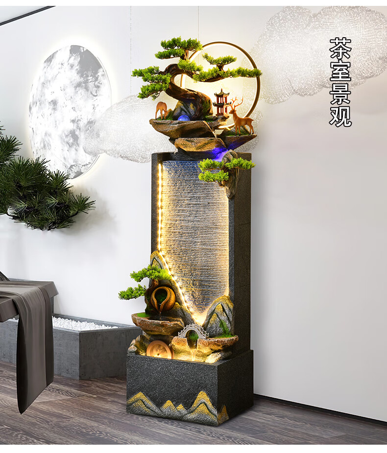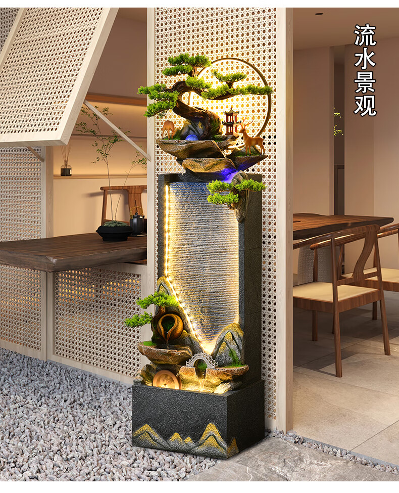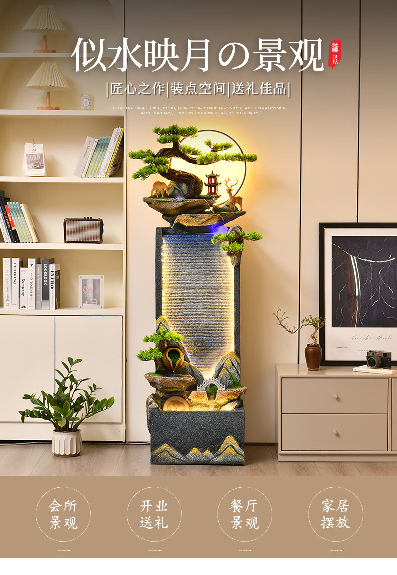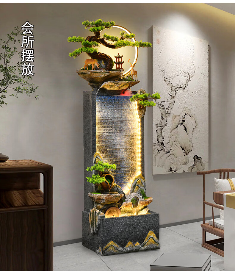 善水源高山流水摆件循环水幕墙客厅落地办公室玄关招财风水轮高端开业 善水源-似水映月-小号