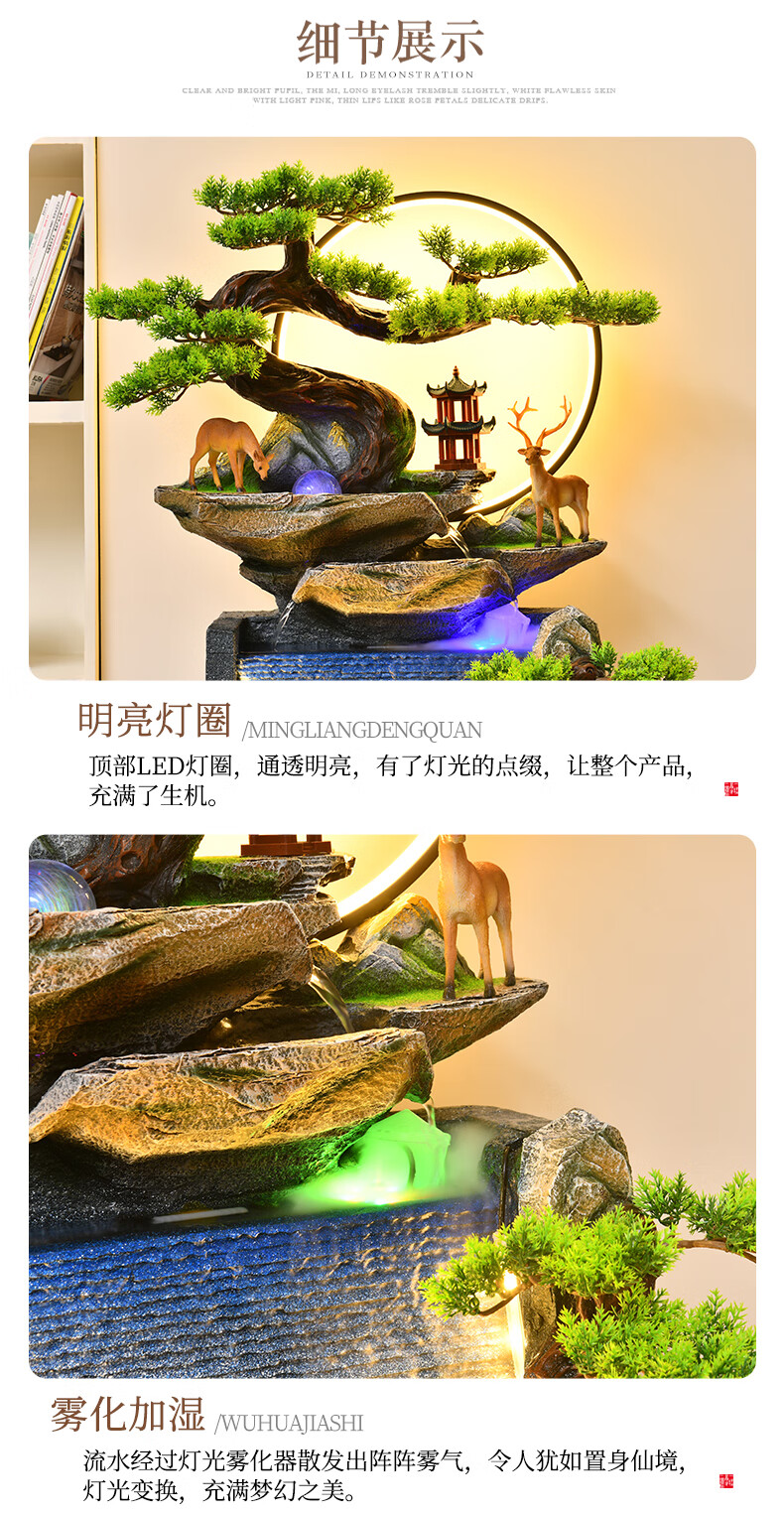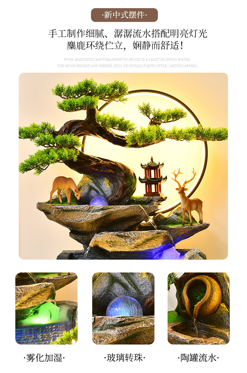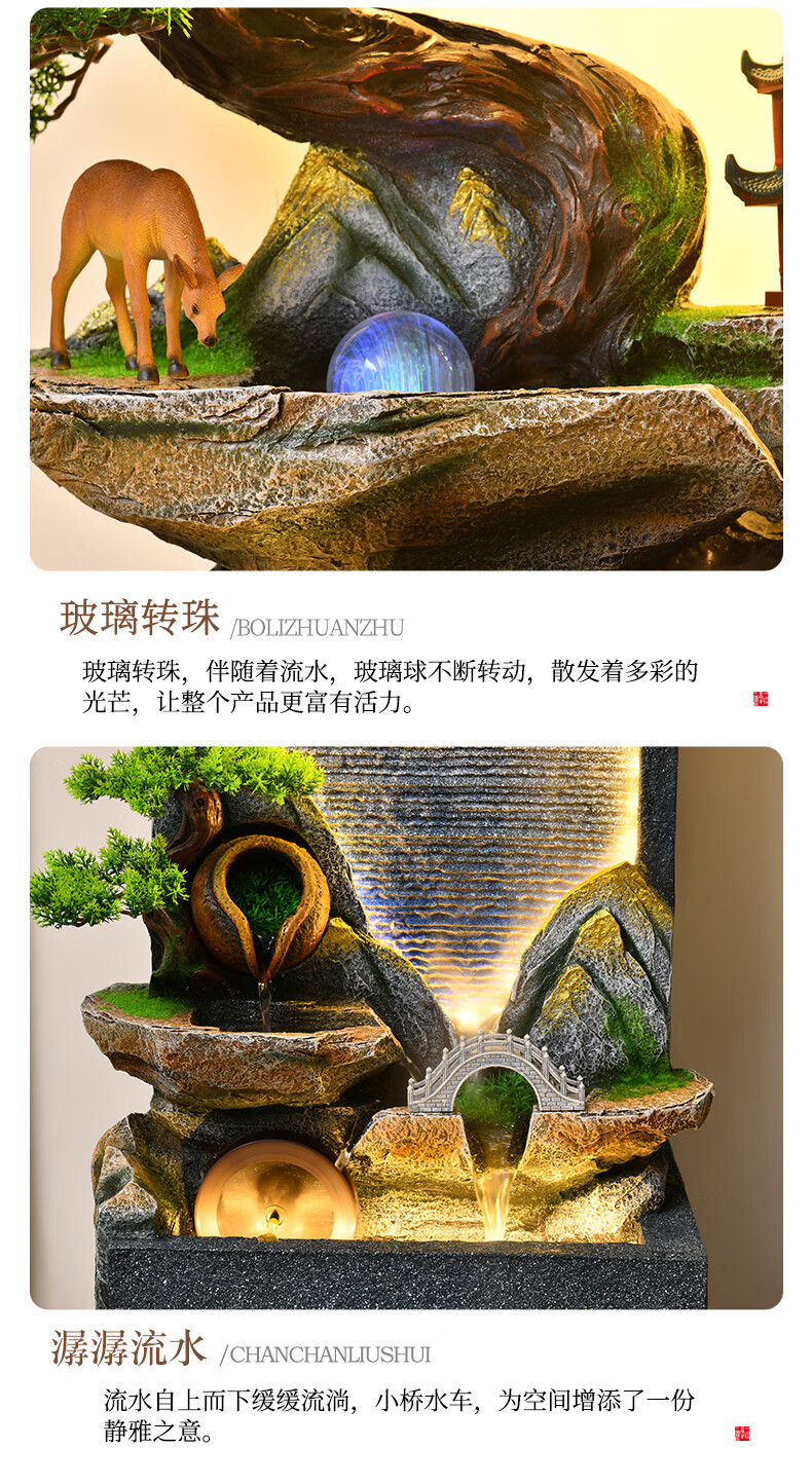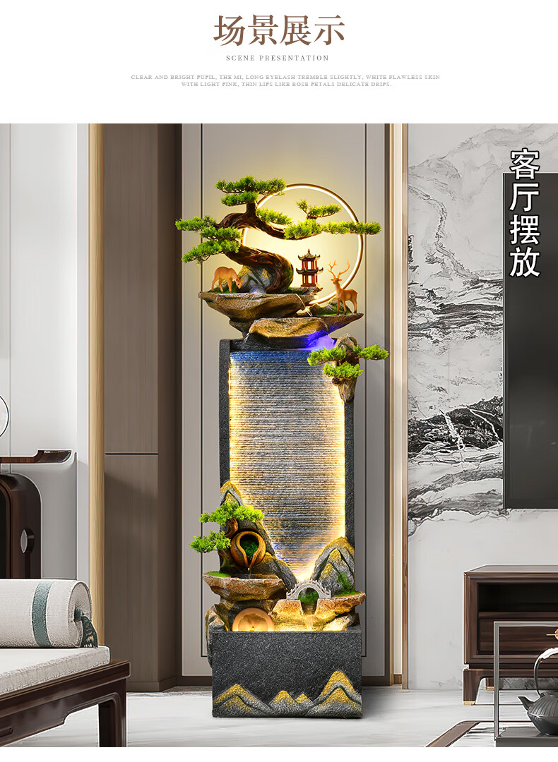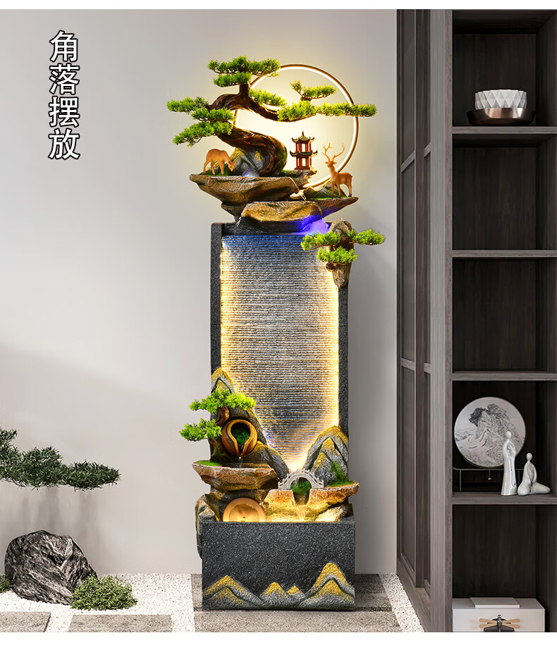 善水源高山流水摆件循环水幕墙客厅落地办公室玄关招财风水轮高端开业 善水源-似水映月-小号