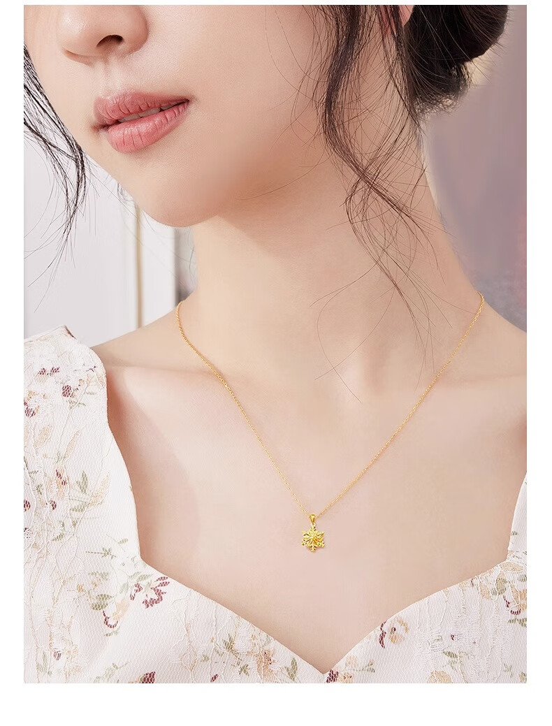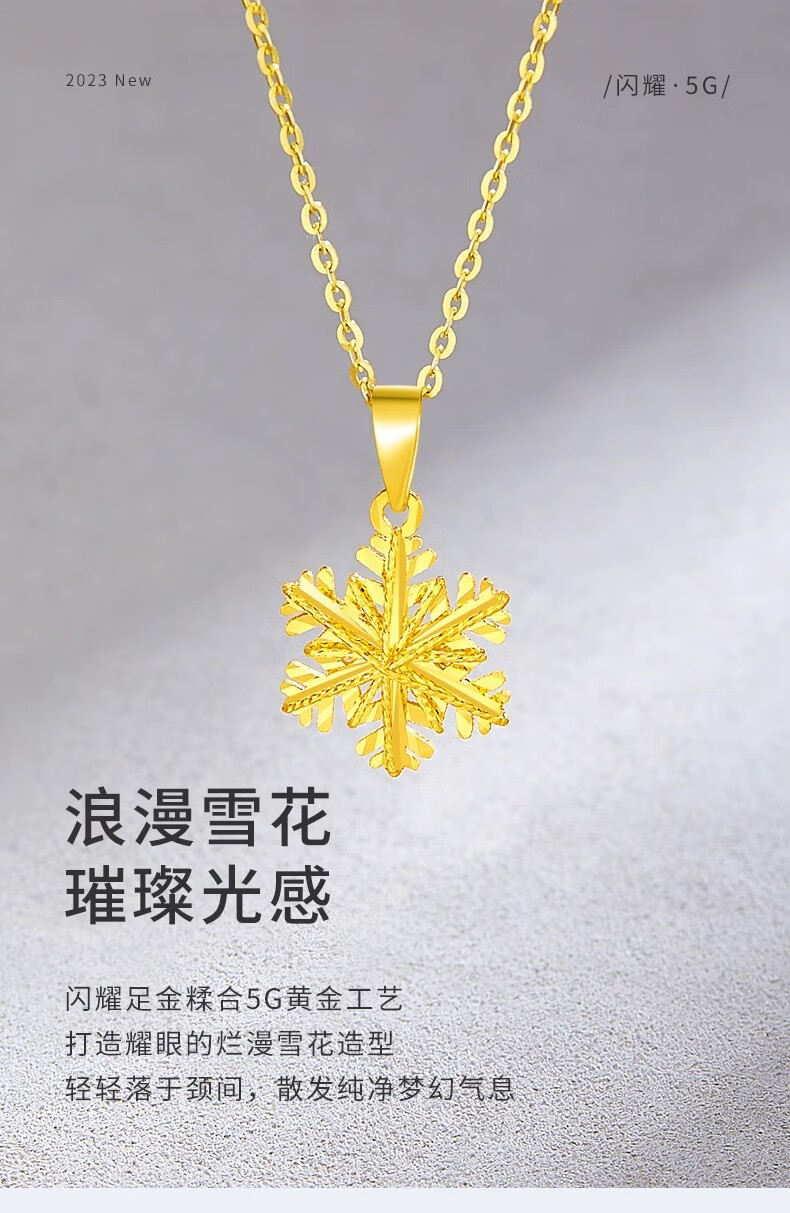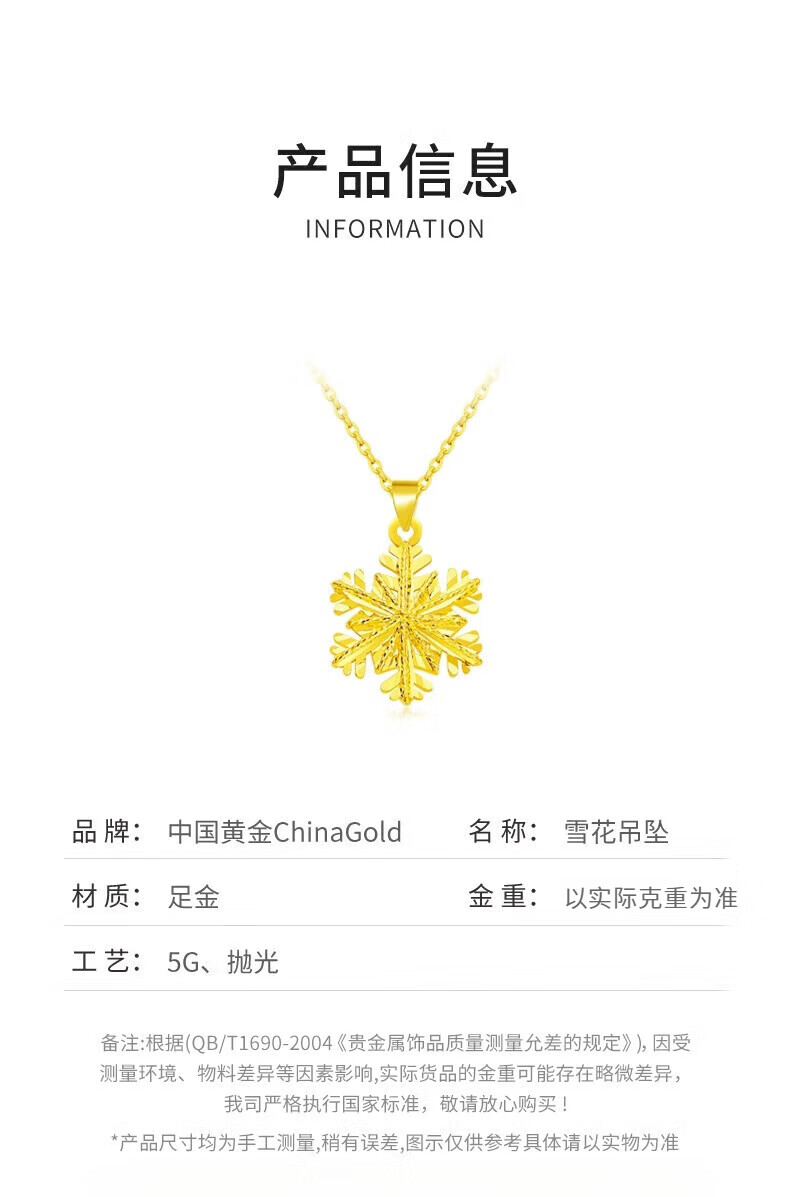 China Gold (CHINA GOLD) Gold Necklace Women's Pure Gold Snowflake Pendant Pure Gold Jewelry Valentine's Day Practical Birthday Gift for Girlfriend and Wife Send Girlfriend*Snowflake Pendant About 0.95g Free Silver Chain