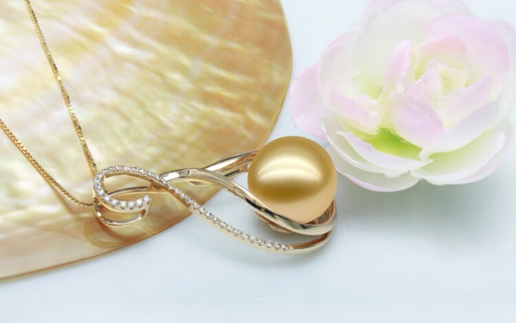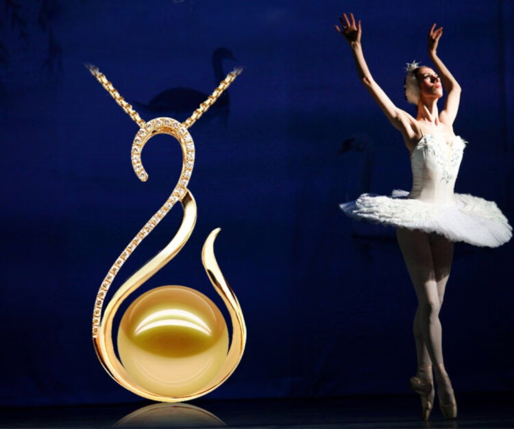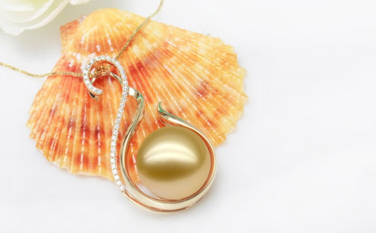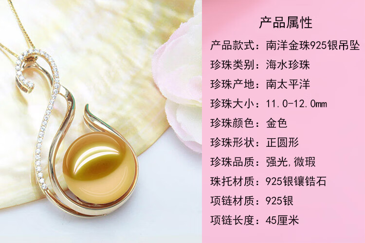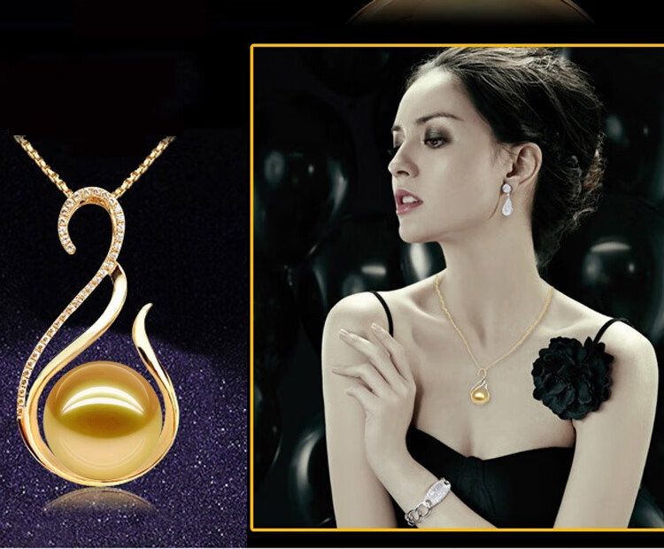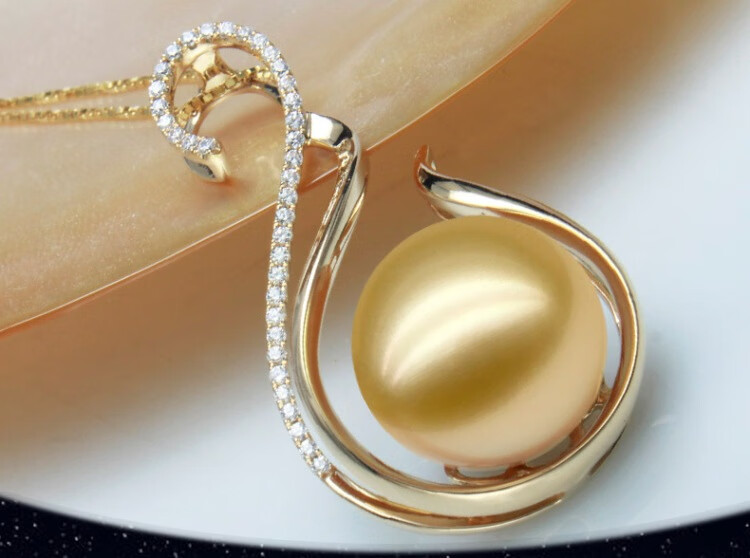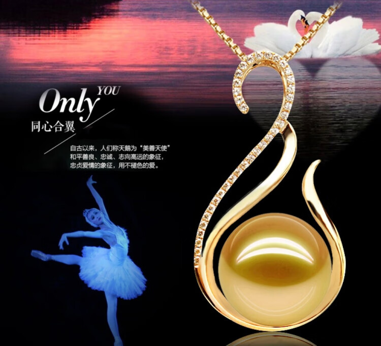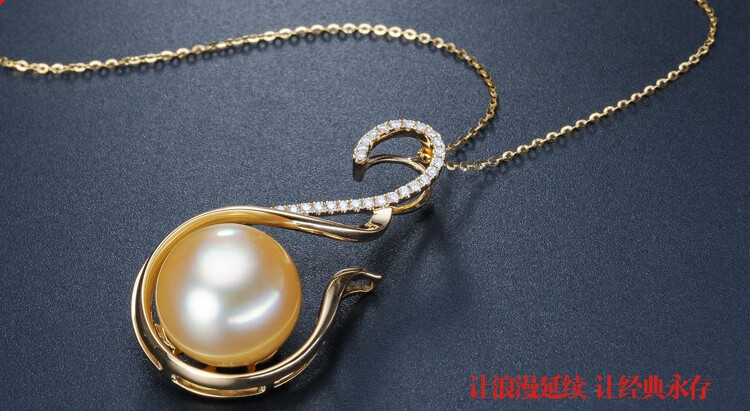 Drops of water form pearls. Nanyang Pearl Family 11-12mm Nanyang gold bead pendant 925 silver swan style is beautiful and decent gift.